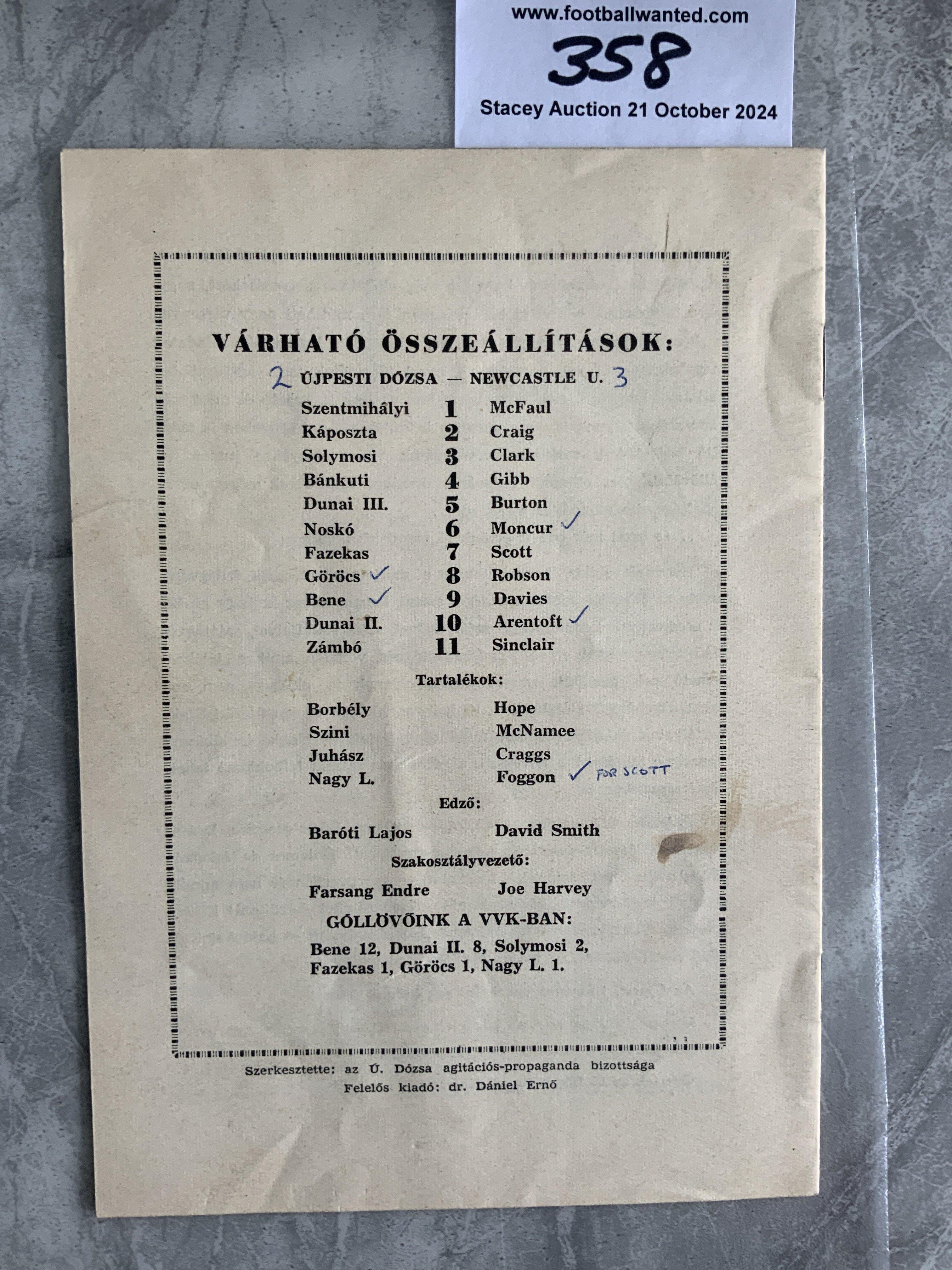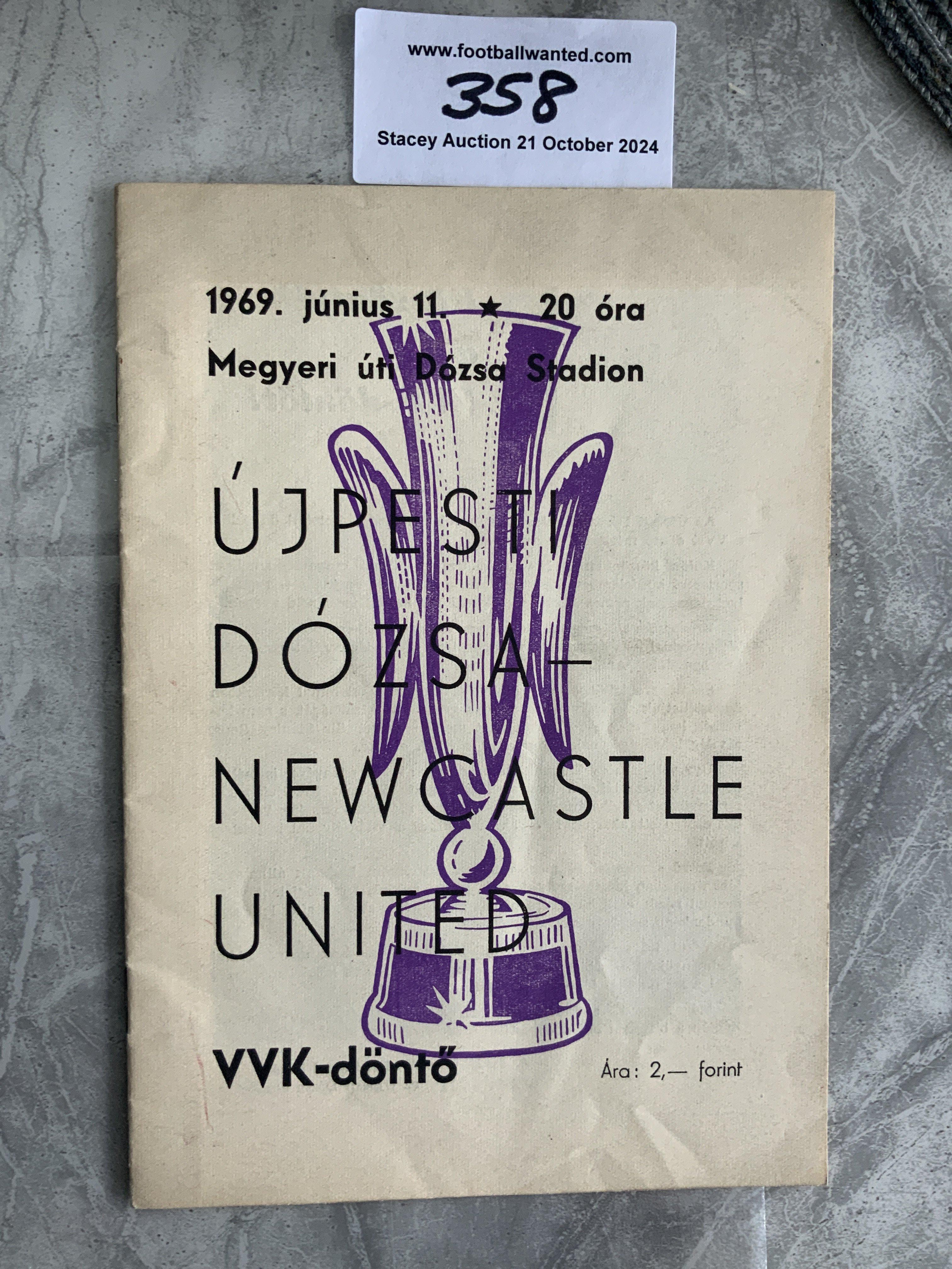 1969 Fairs Cup Final Football Programme: Ujpest Dozsa v Newcastle United in very good condition. Team page on the back has score, a few ticks and a team change.