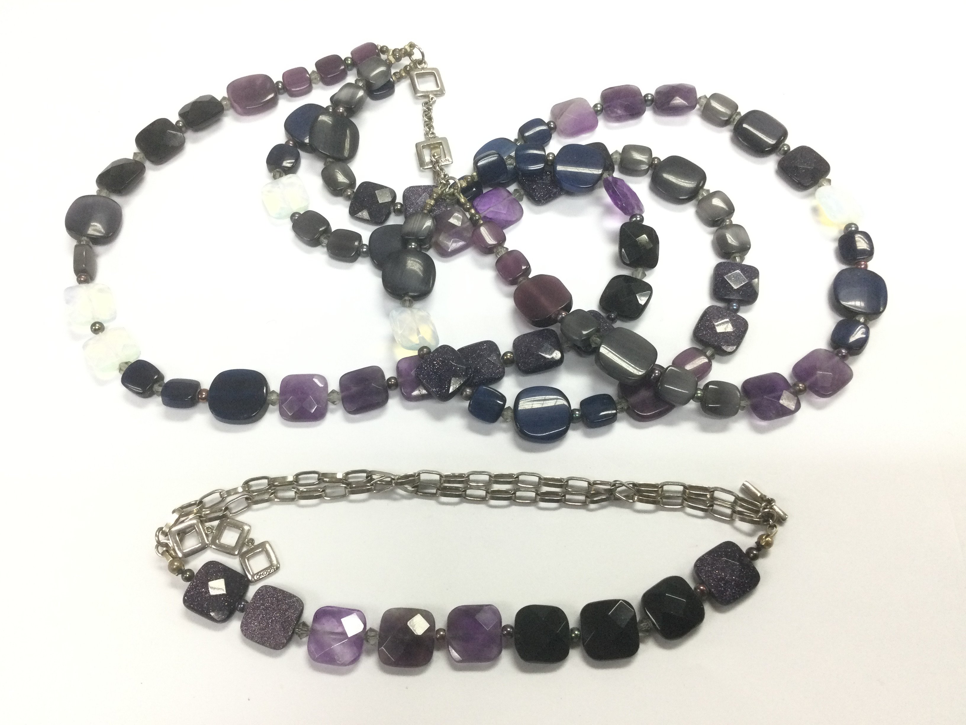 A Tateossian designer necklace and matching bracelet suspended on silver chains. Shipping category A.