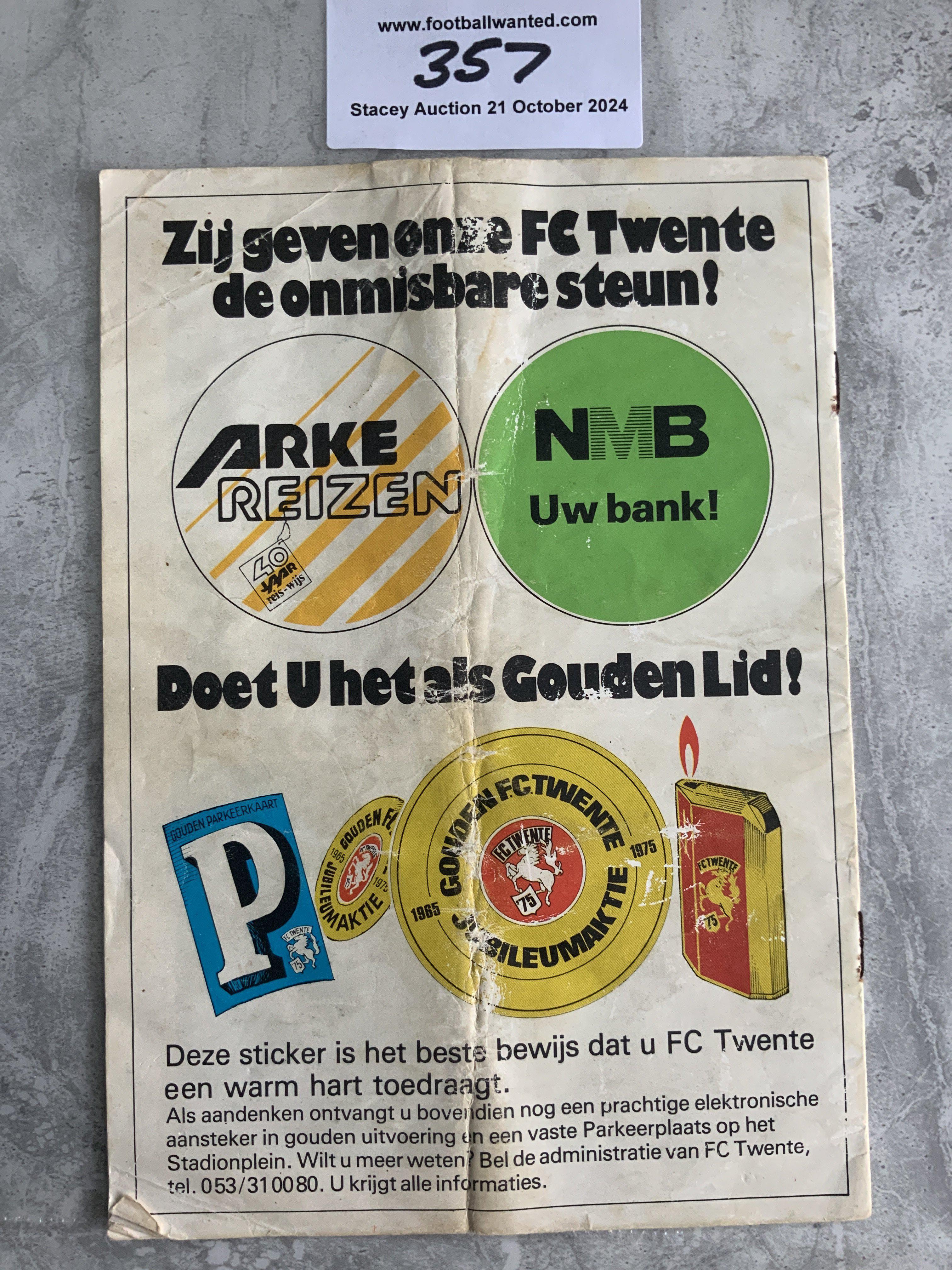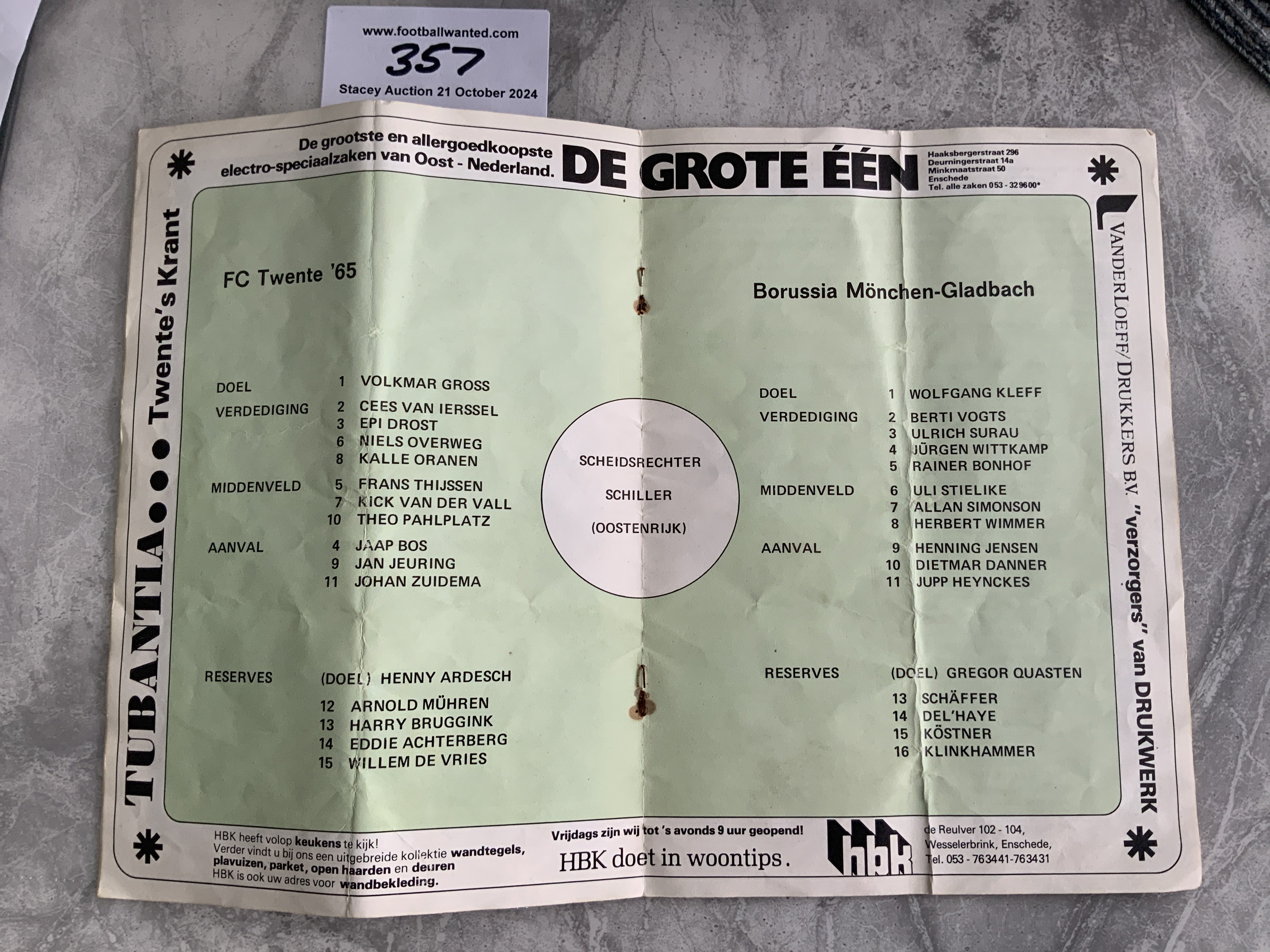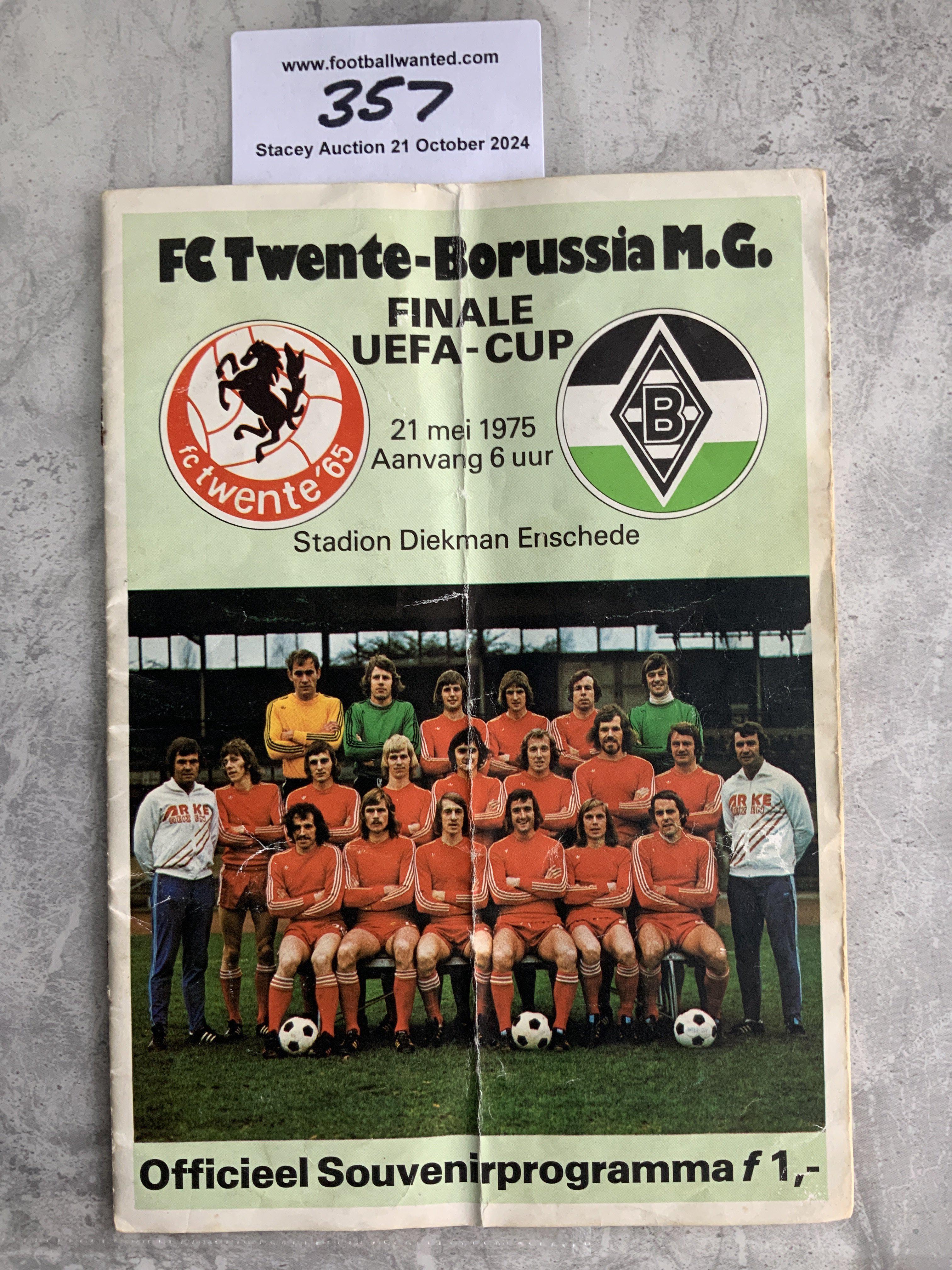 1975 UEFA Cup Final Football Programme: Very hard to obtain FC Twente Borussia Munchen Gladbach. Heavy centre fold and rusty staples holding firm. No team changes.