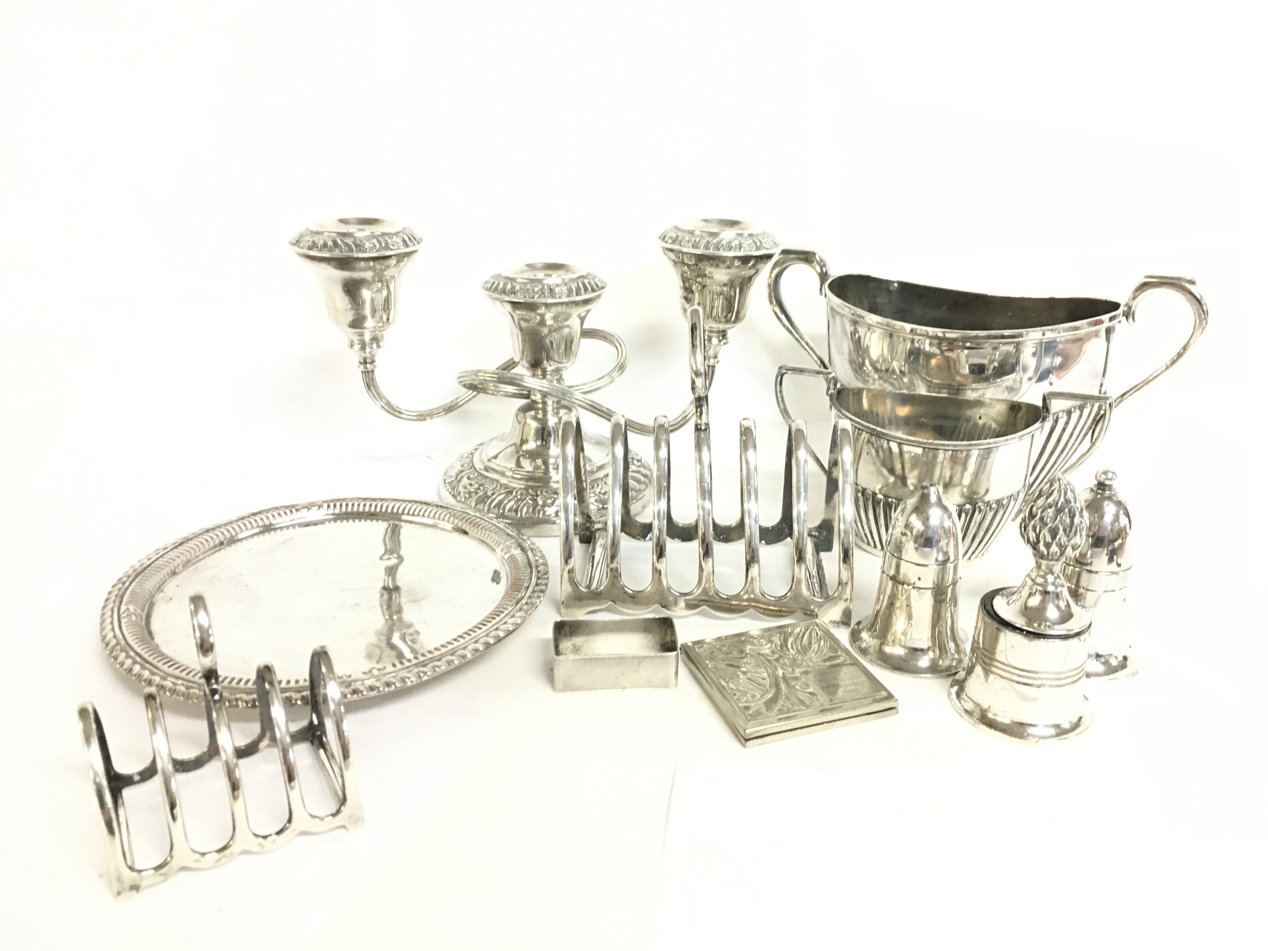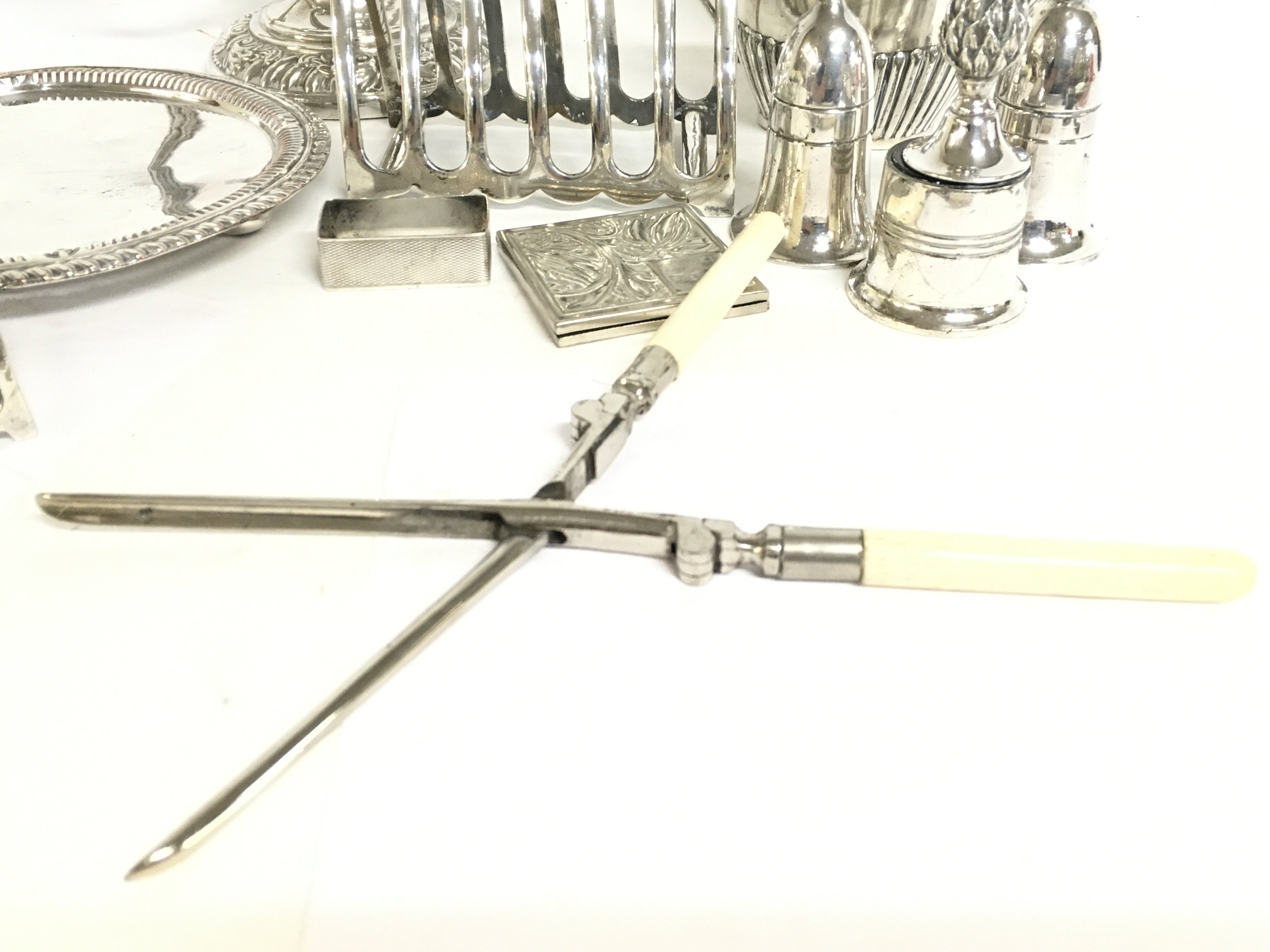 A collection of silver plate and silver napkin, postage category C