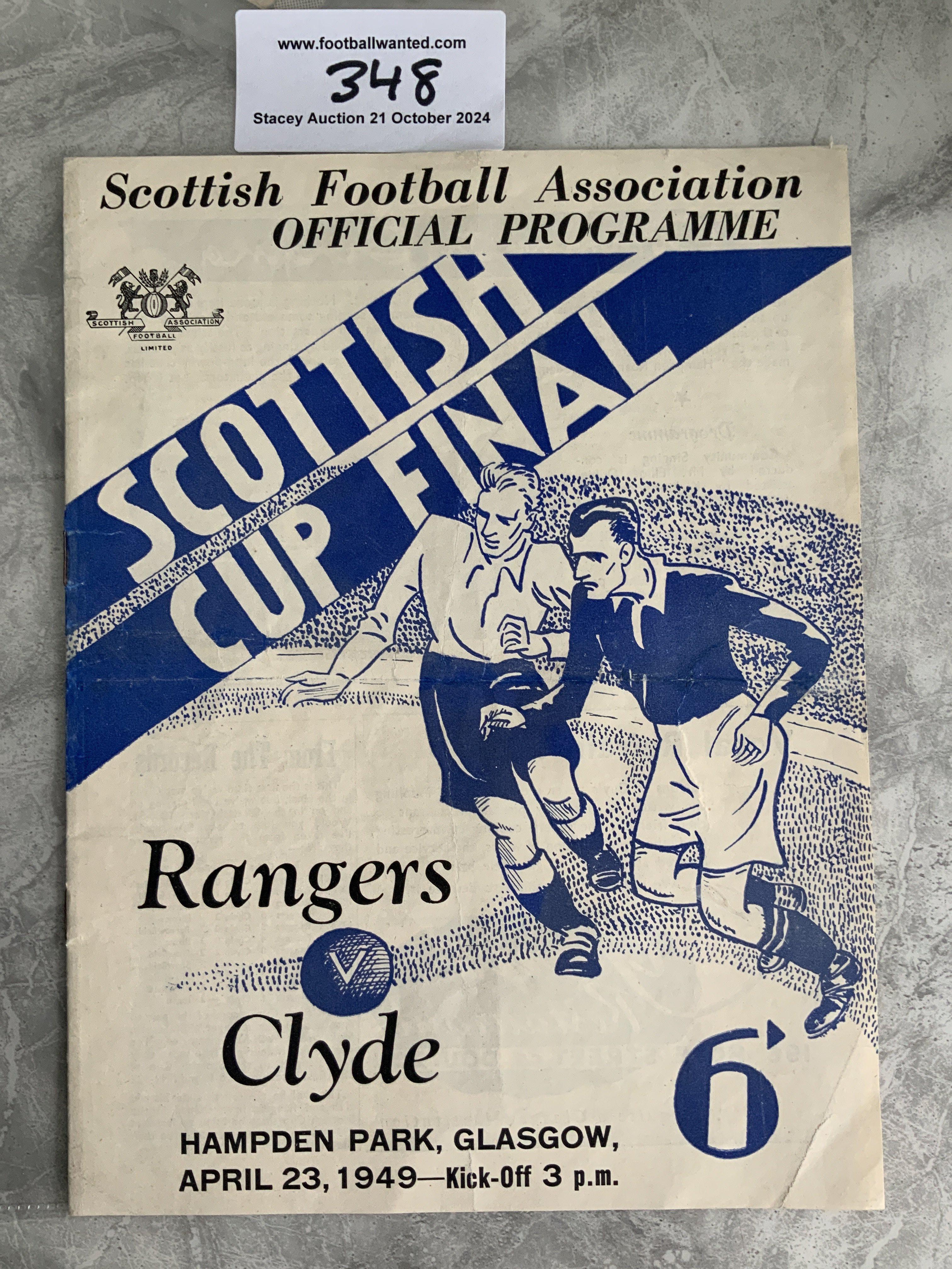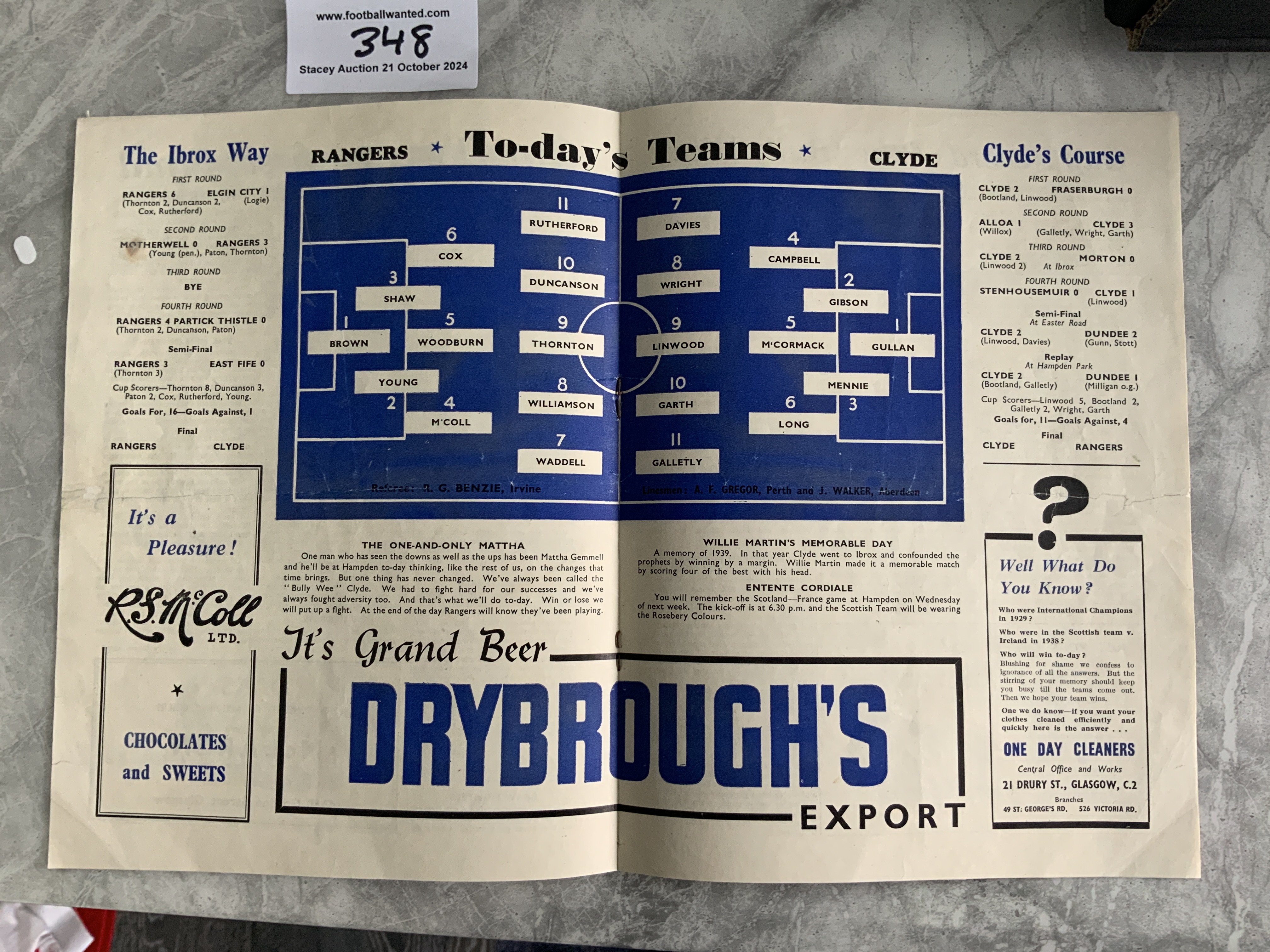 1949 Scottish Cup Final Football Programme: Rangers v Clyde played at Hampden Park. Excellent condition with no team changes.