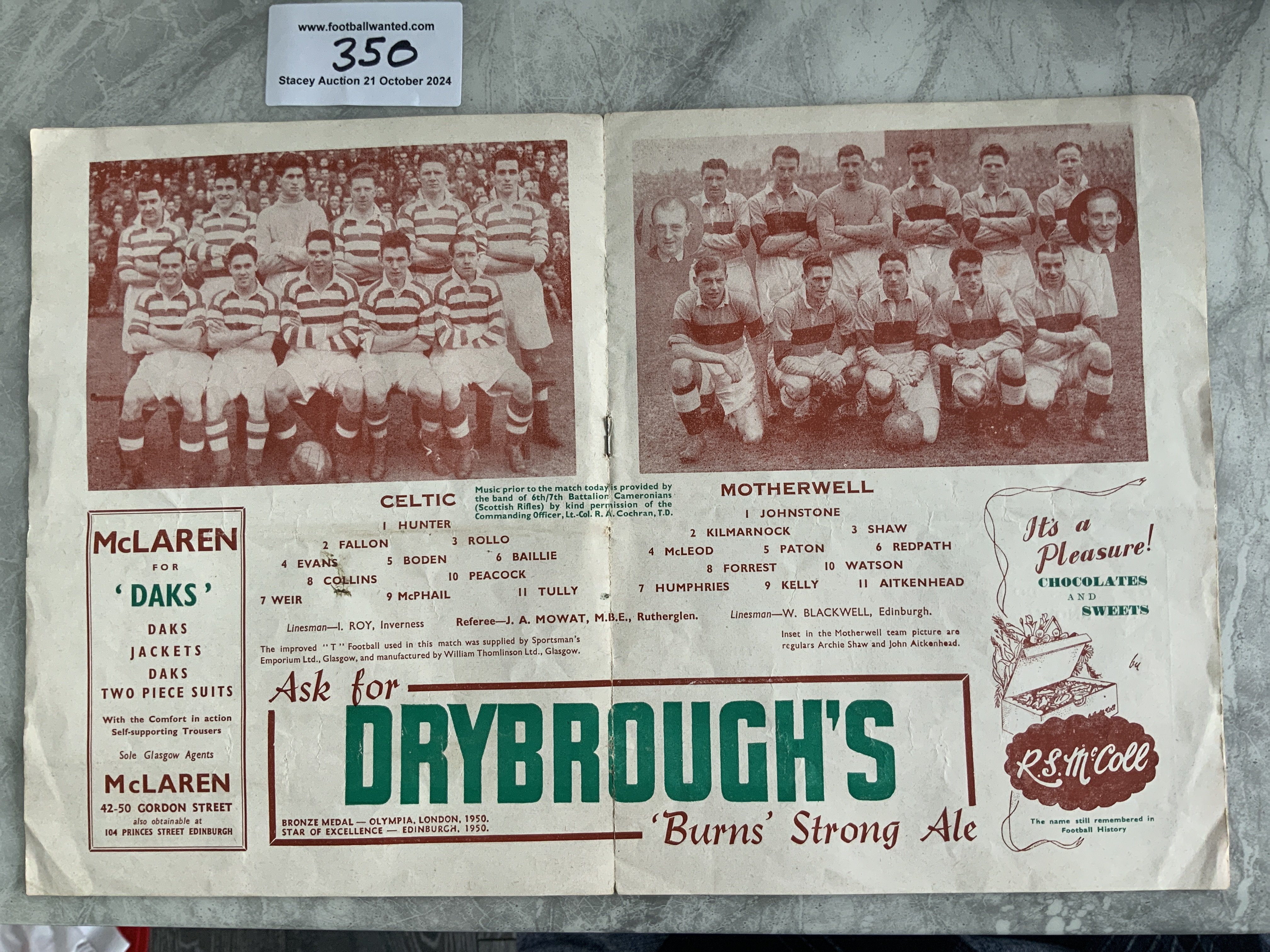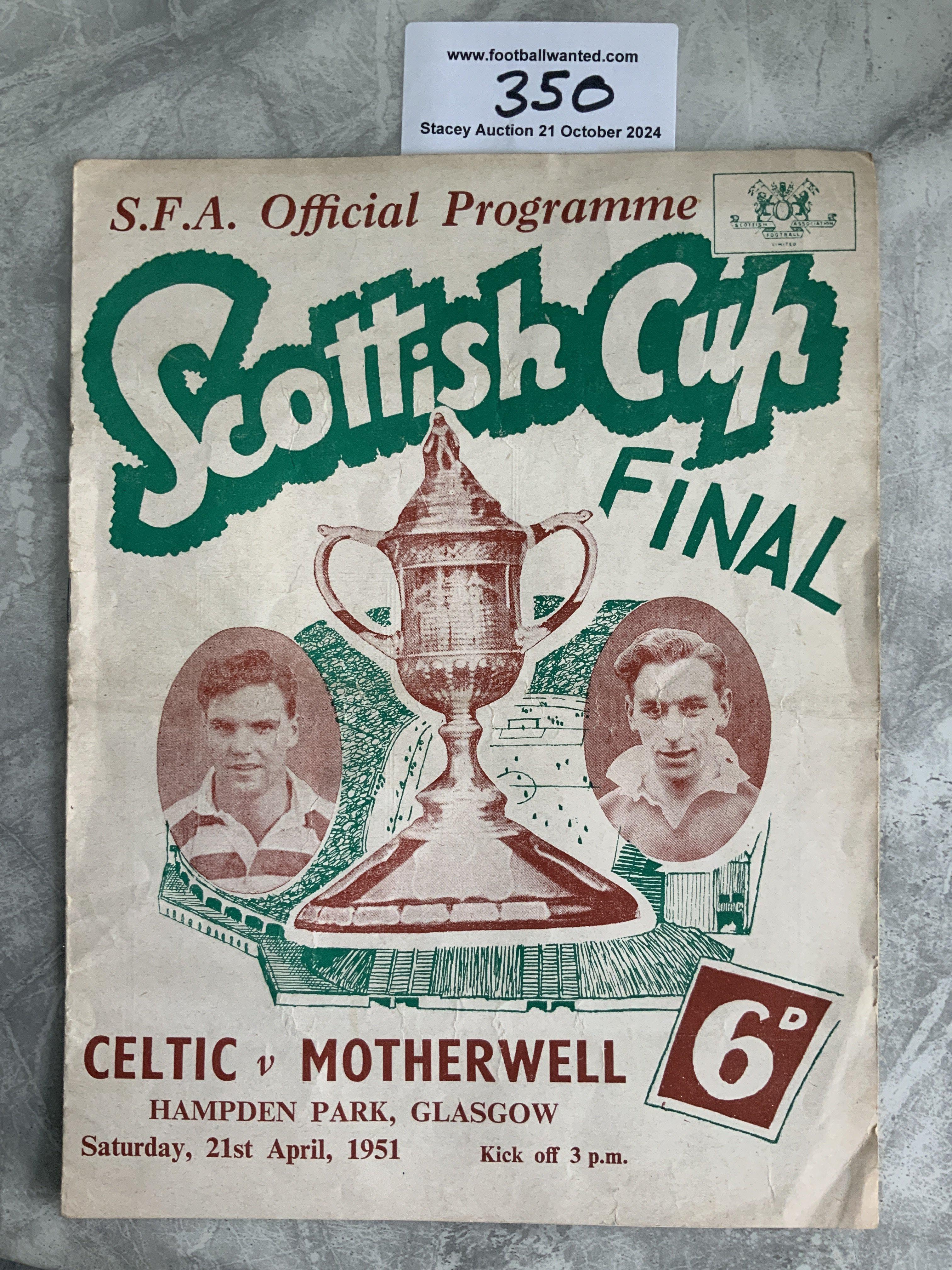 1951 Scottish Cup Final Football Programme: Celtic v Motherwell played at Hampden Park. Very good condition with no team changes.