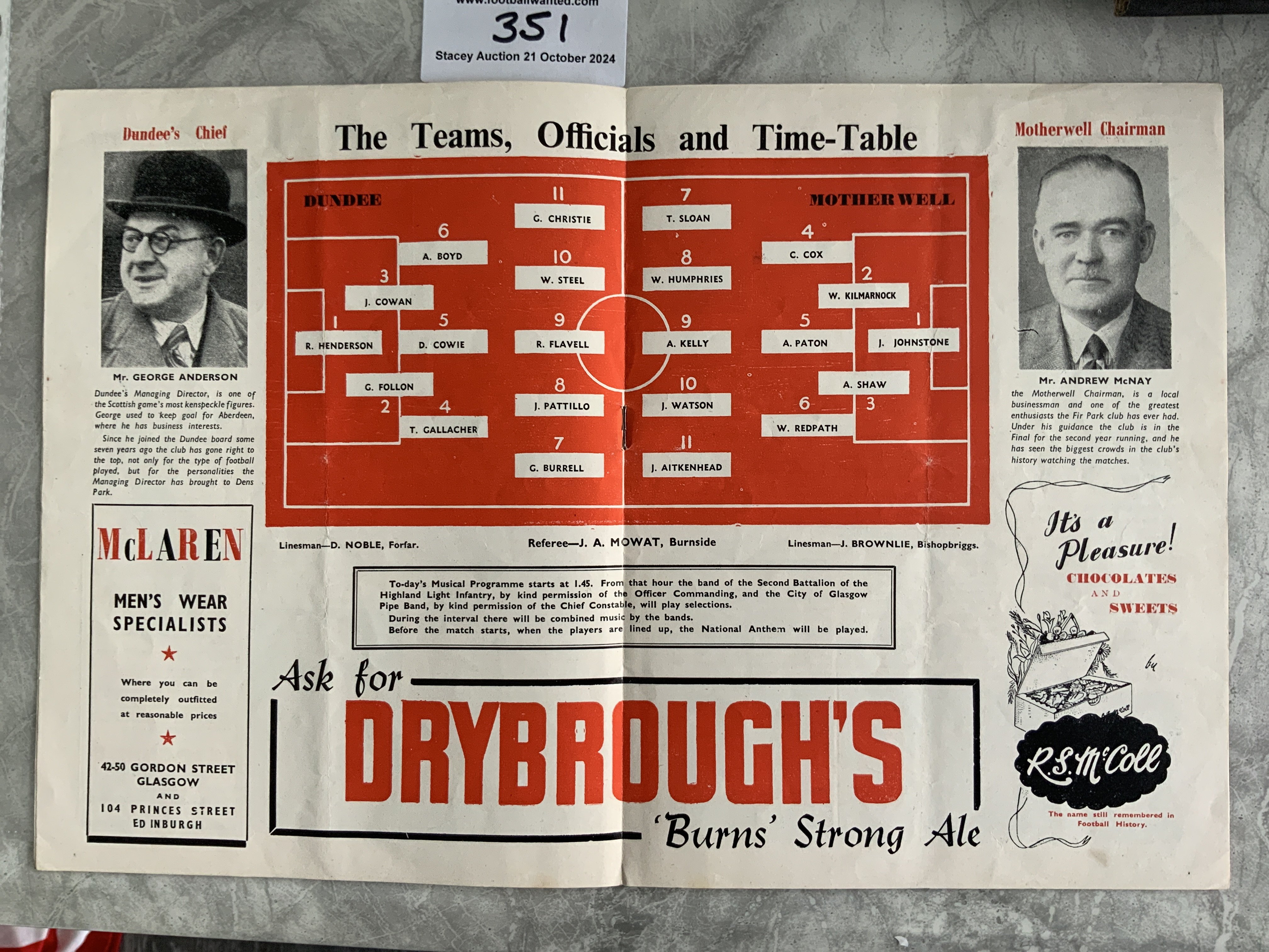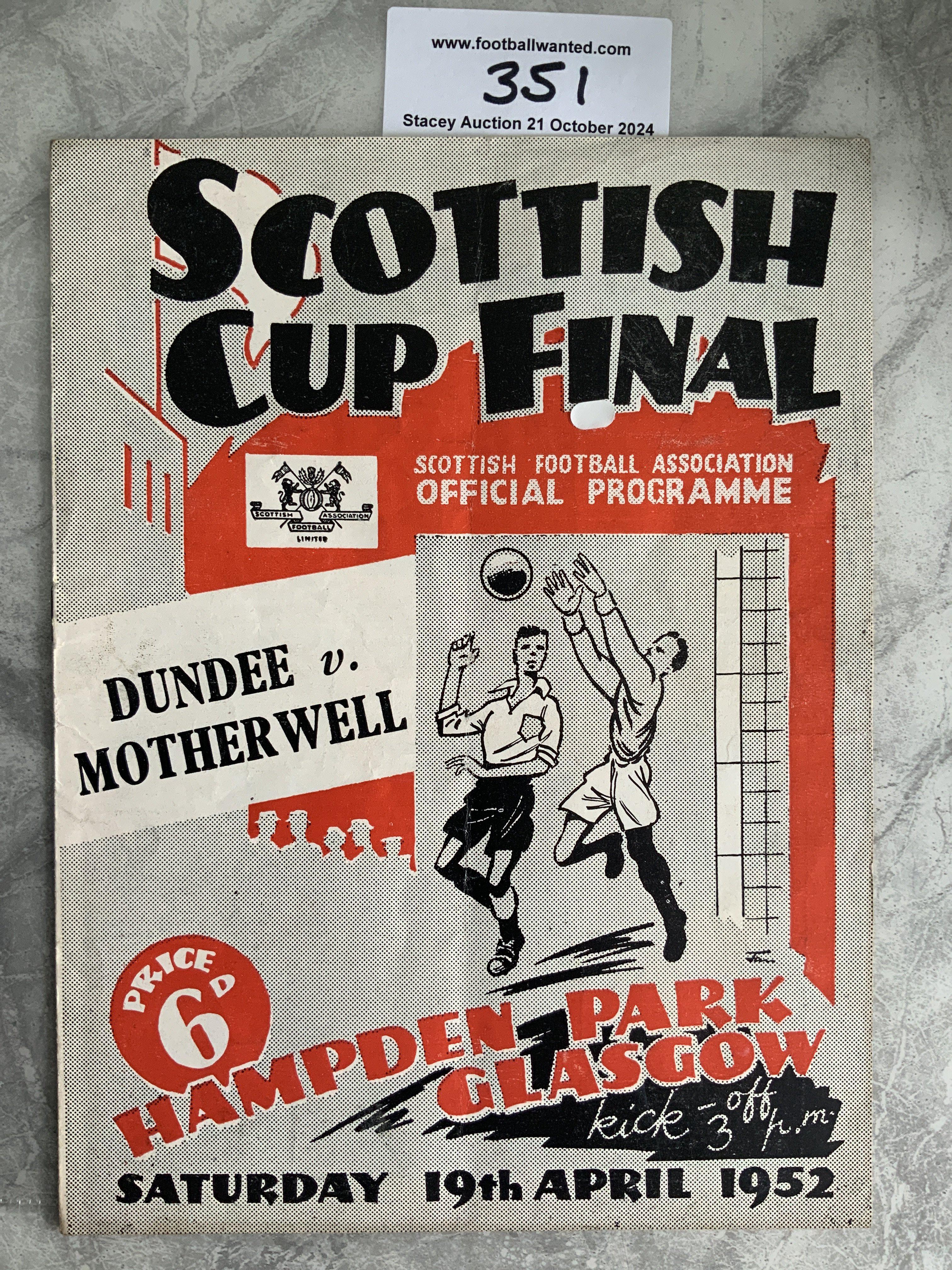 1952 Scottish Cup Final Football Programme: Dundee v Motherwell played at Hampden Park. Very good condition with no team changes.