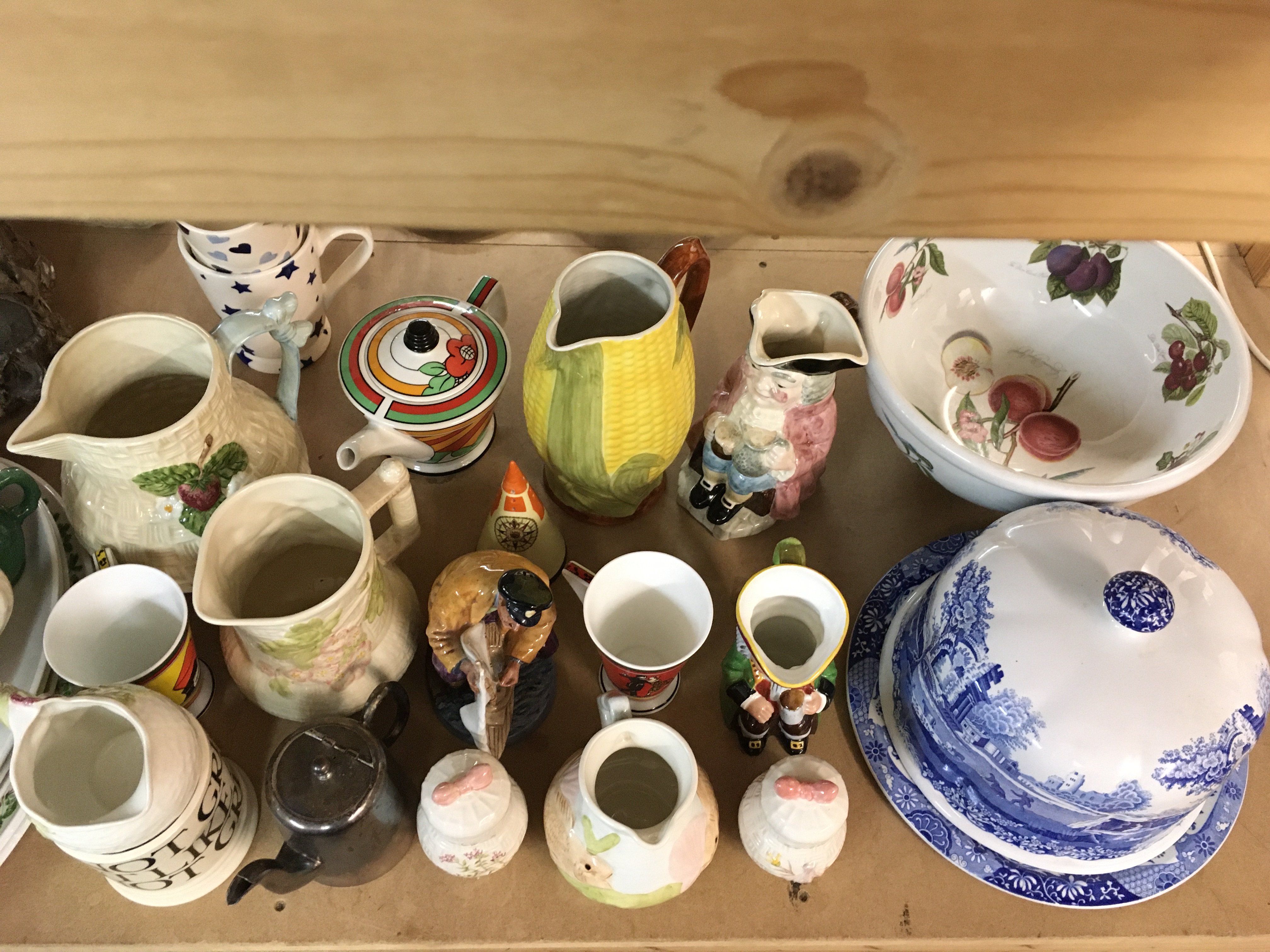 A collection of Portmeirion ceramic bowls, a Spode dish with cover, Emma Bridgewater mugs, a Royal Doulton figure and other ceramics. This lot cannot be posted