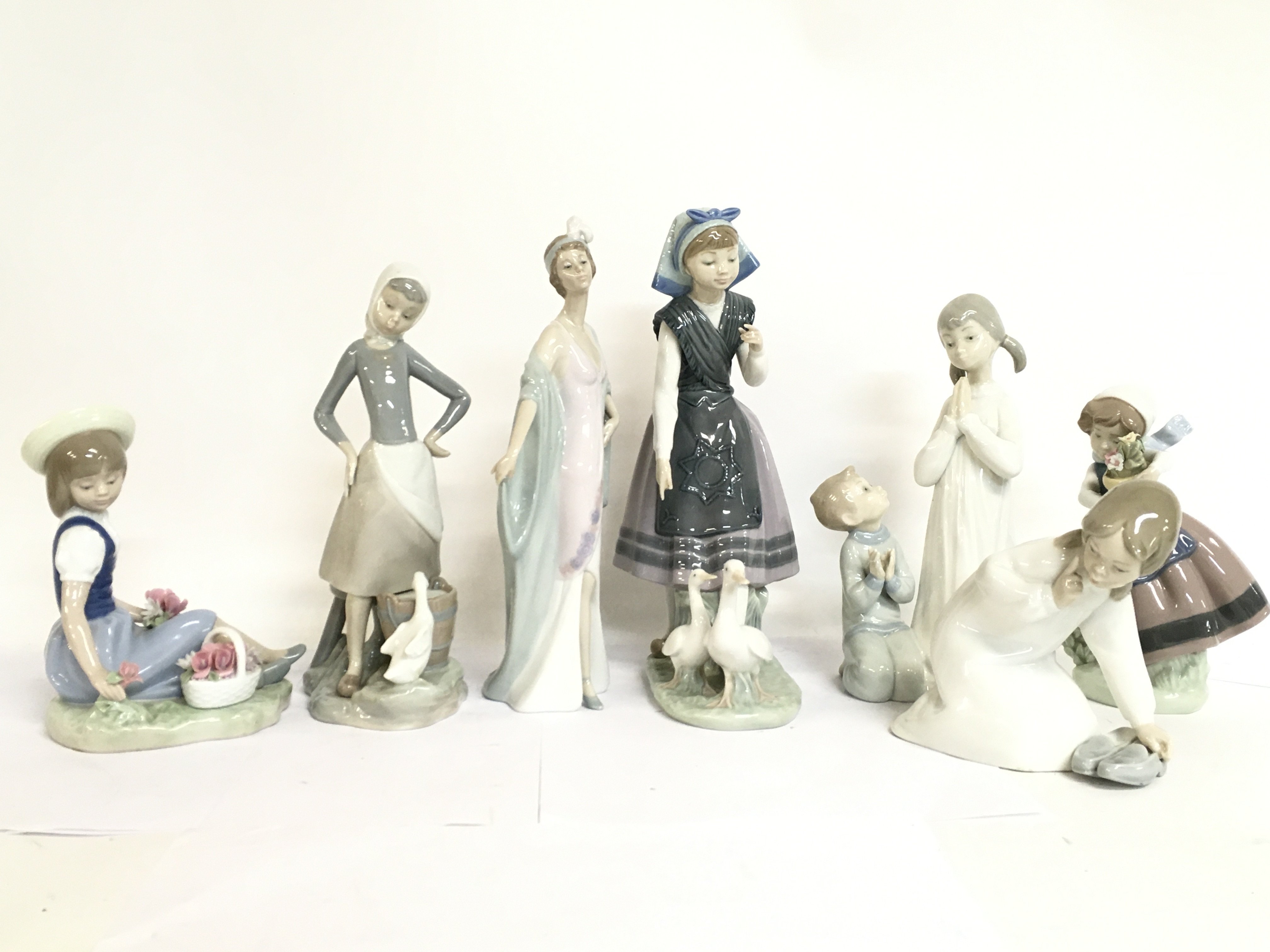 A collection of Lladro figures. 14 to 27cm tall. This lot cannot be posted