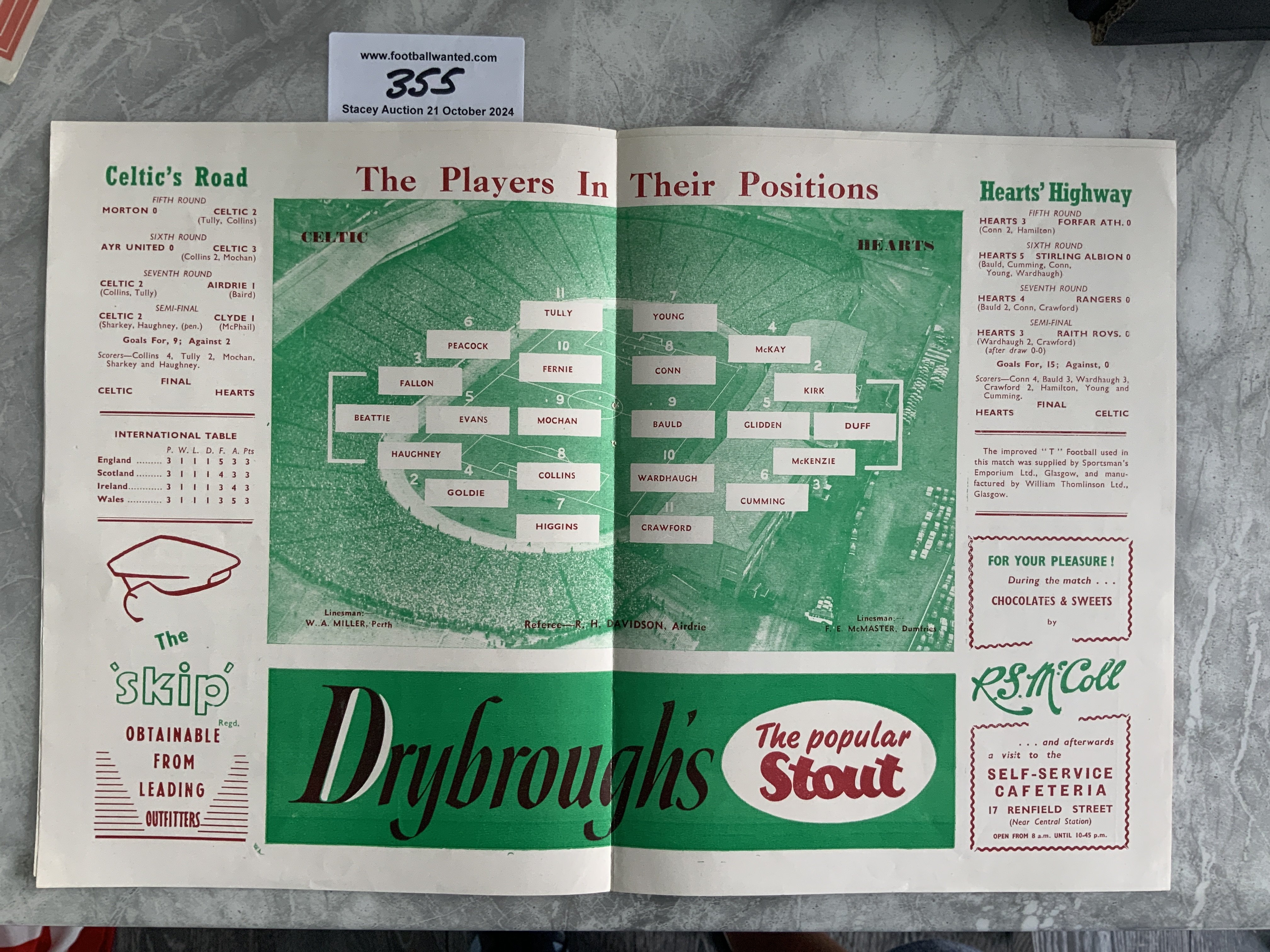 1956 Scottish Cup Final Football Programme: Celtic v Hearts played at Hampden Park. Excellent condition with no team changes.
