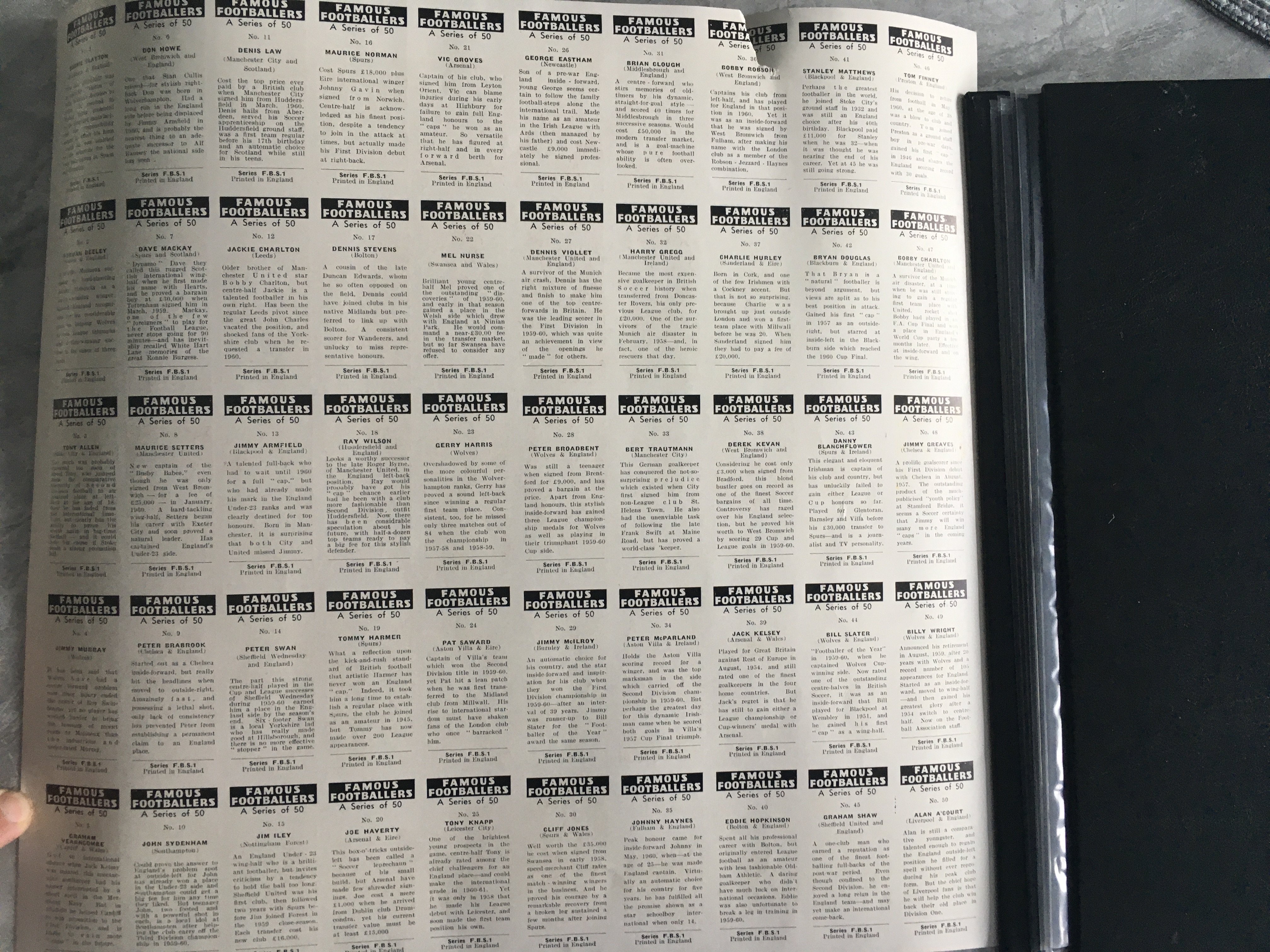 1961 Famous Footballers Uncut Complete Football Cards: From maker Primrose (FBSI) with all 50 cards uncut. There is a tear affecting one card which is Bobby Robson.