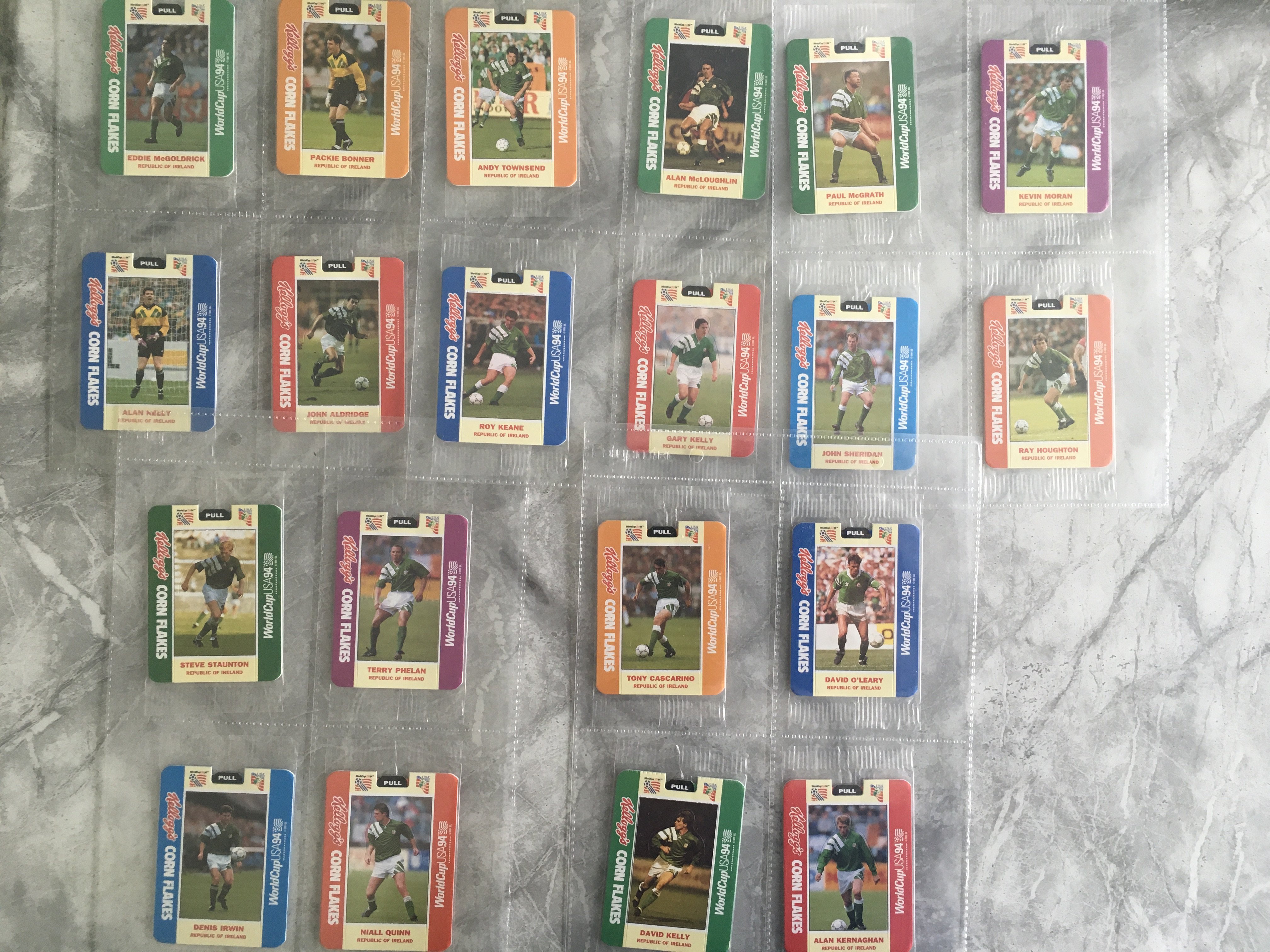 Kelloggs Ireland 1994 World Cup Football Cards: Unopened packs of the cards which have pull out information. Complete set of 20 still in wrappers.
