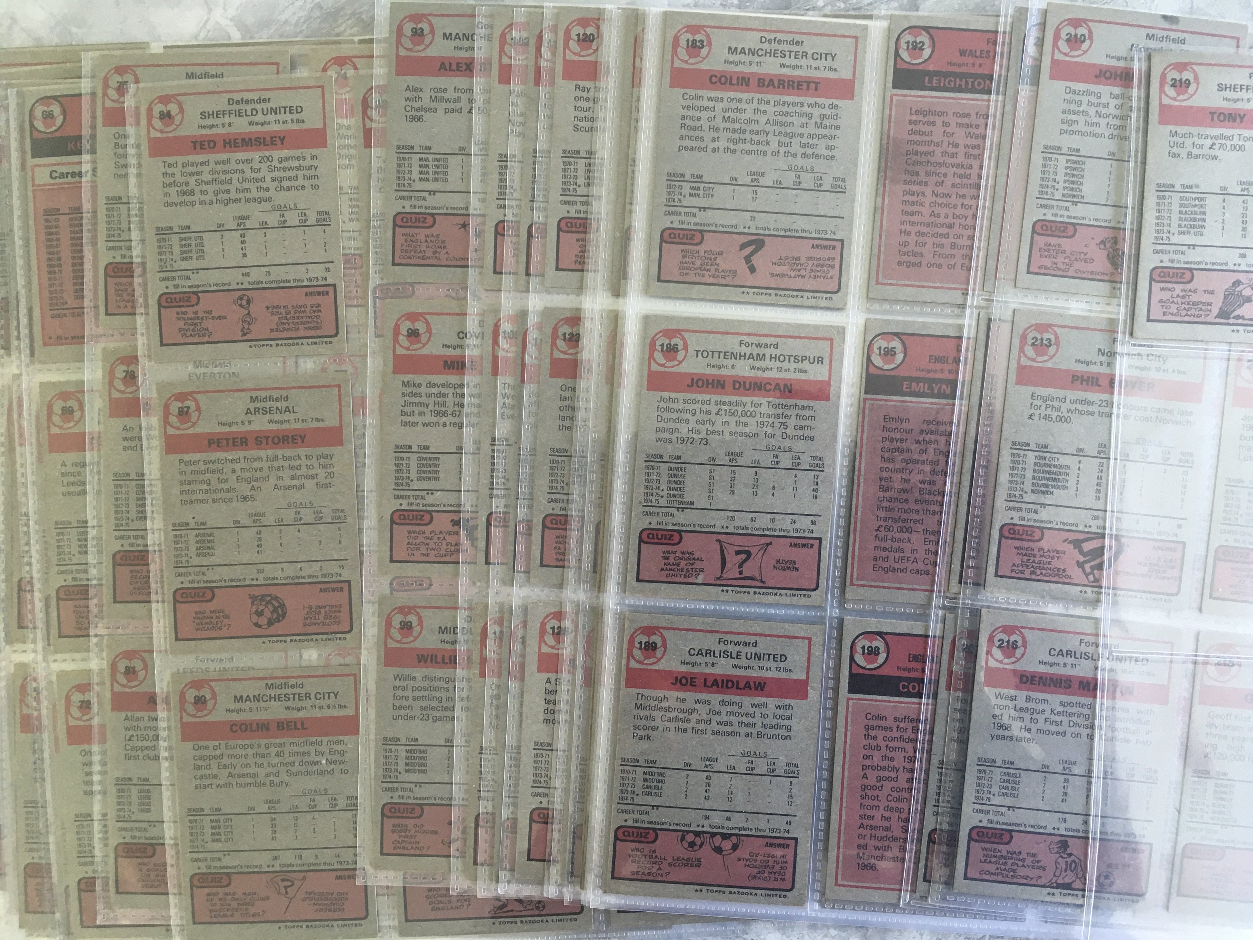 Topps 1975 Complete Set Of Football Cards: All 220 red back cards in excellent condition except for number 32, check list included which is marked.