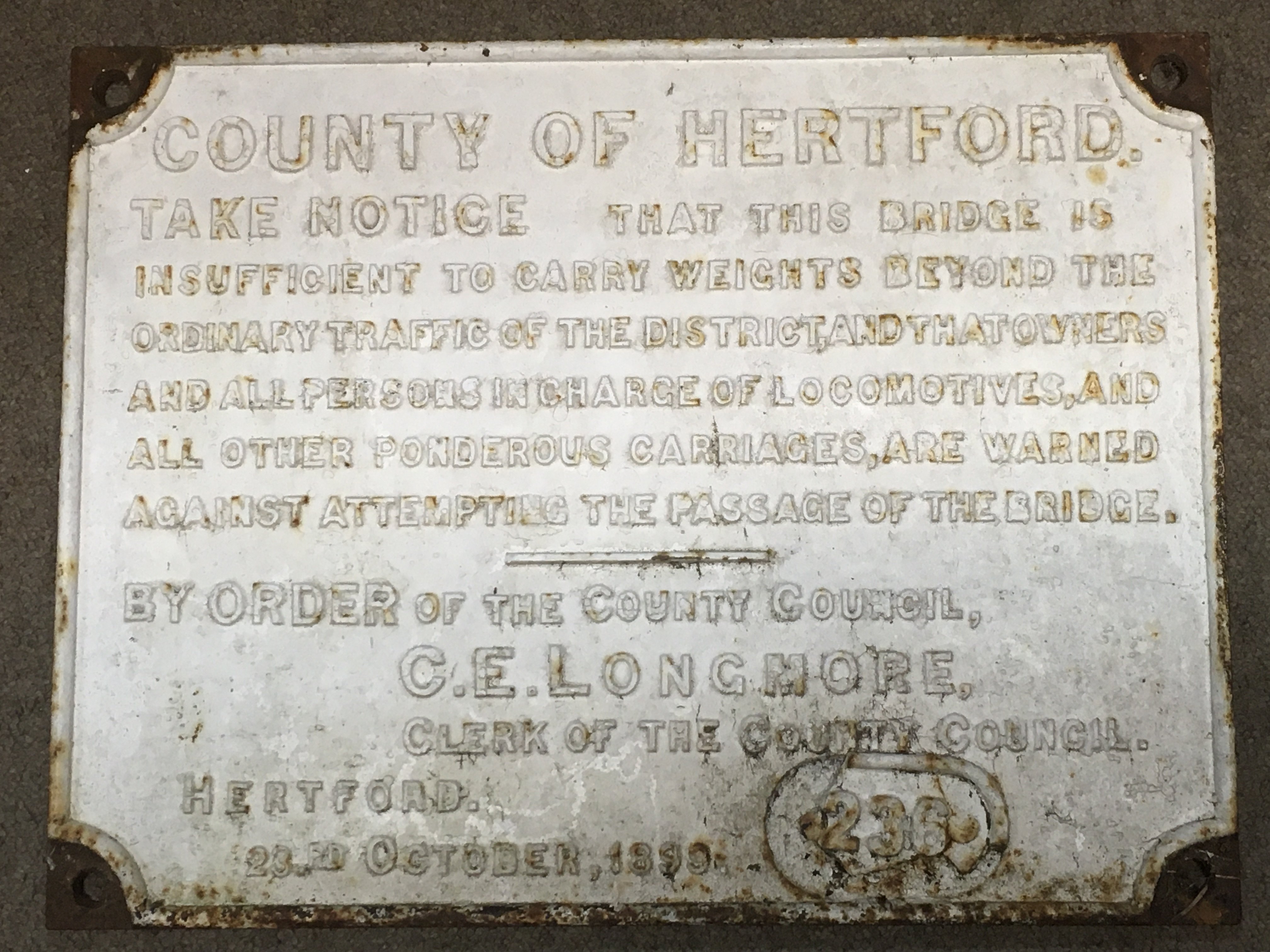 A Victorian County of Hertford cast iron railway panel, dimensions 53x40cm. This lot cannot be posted