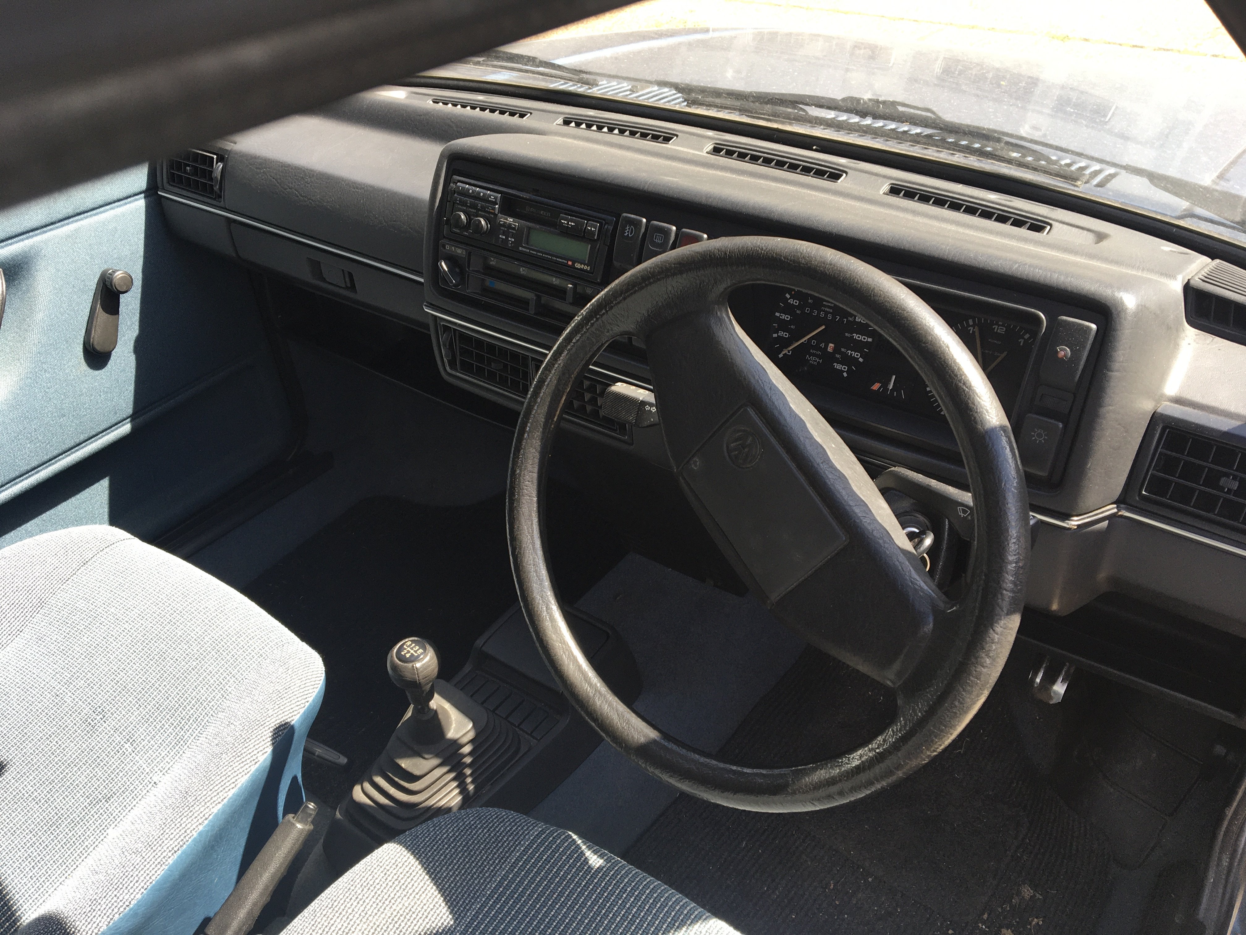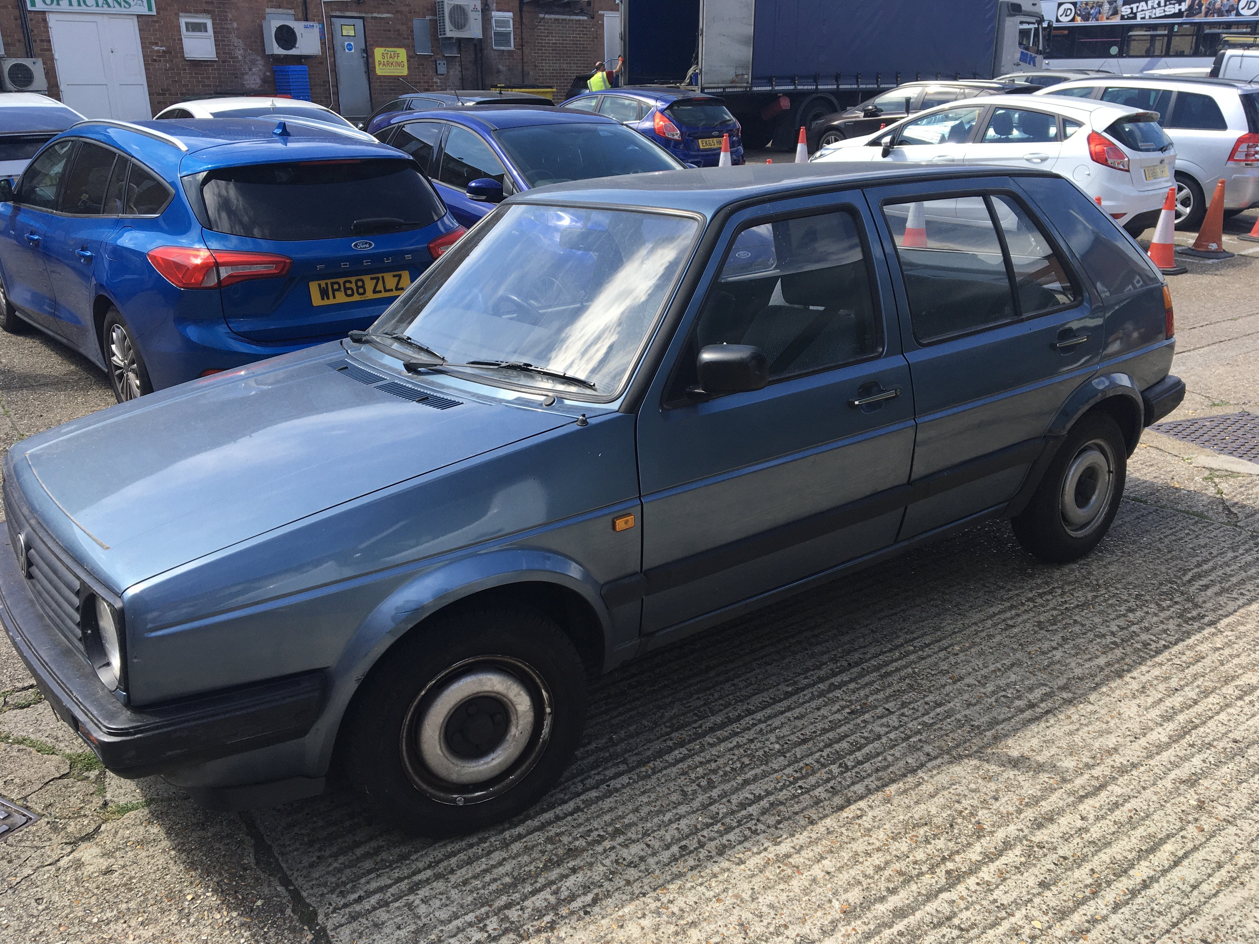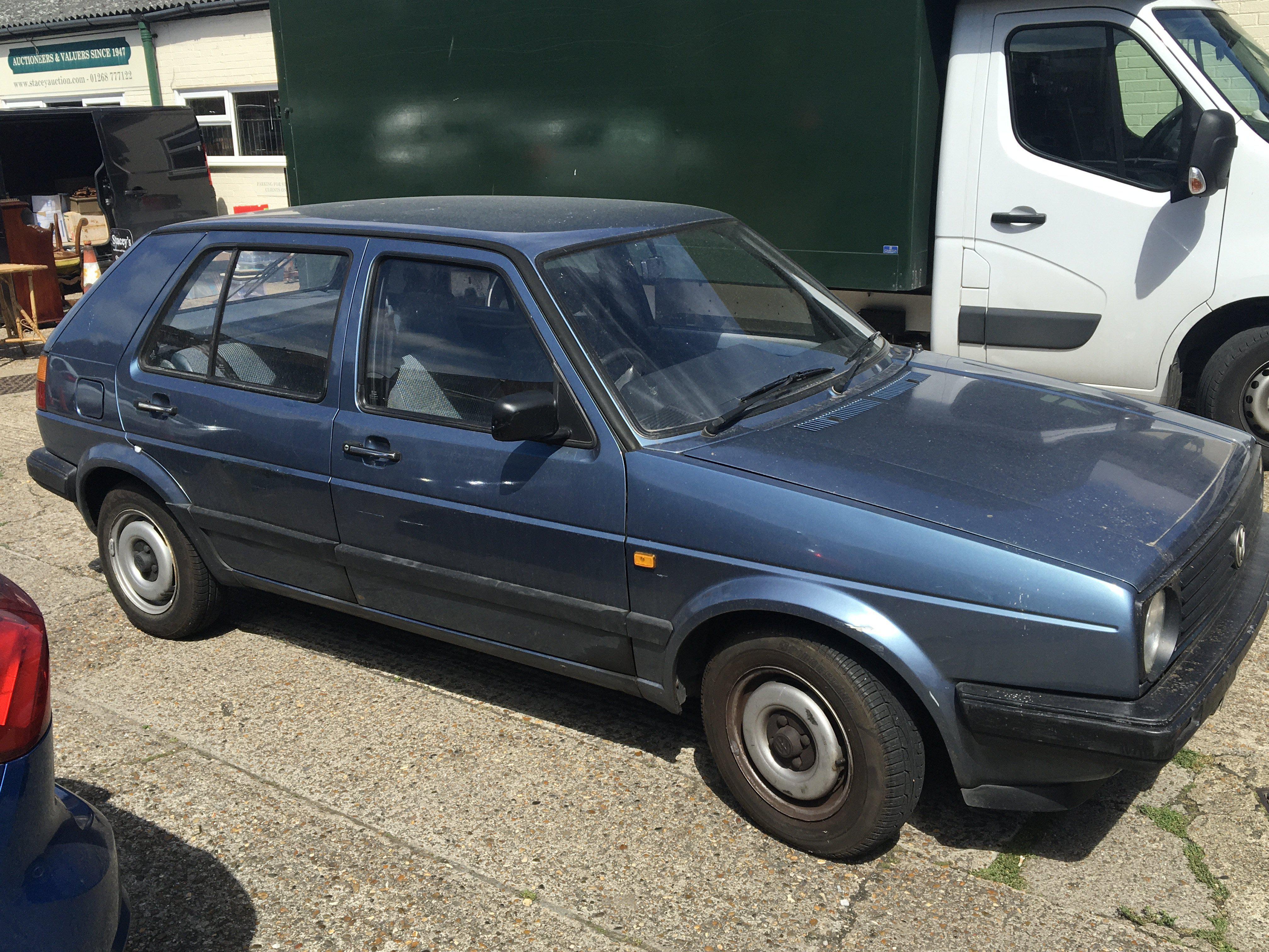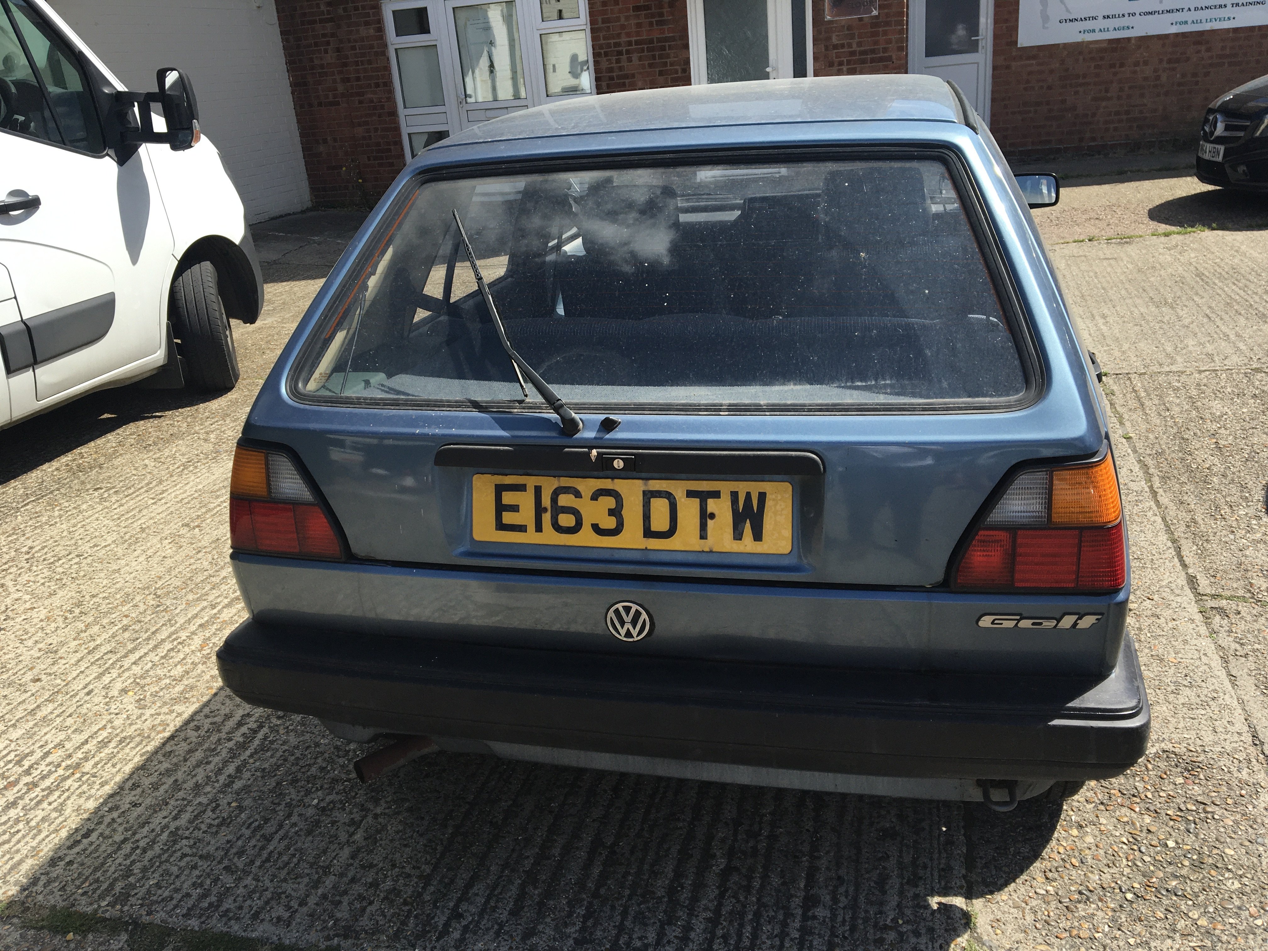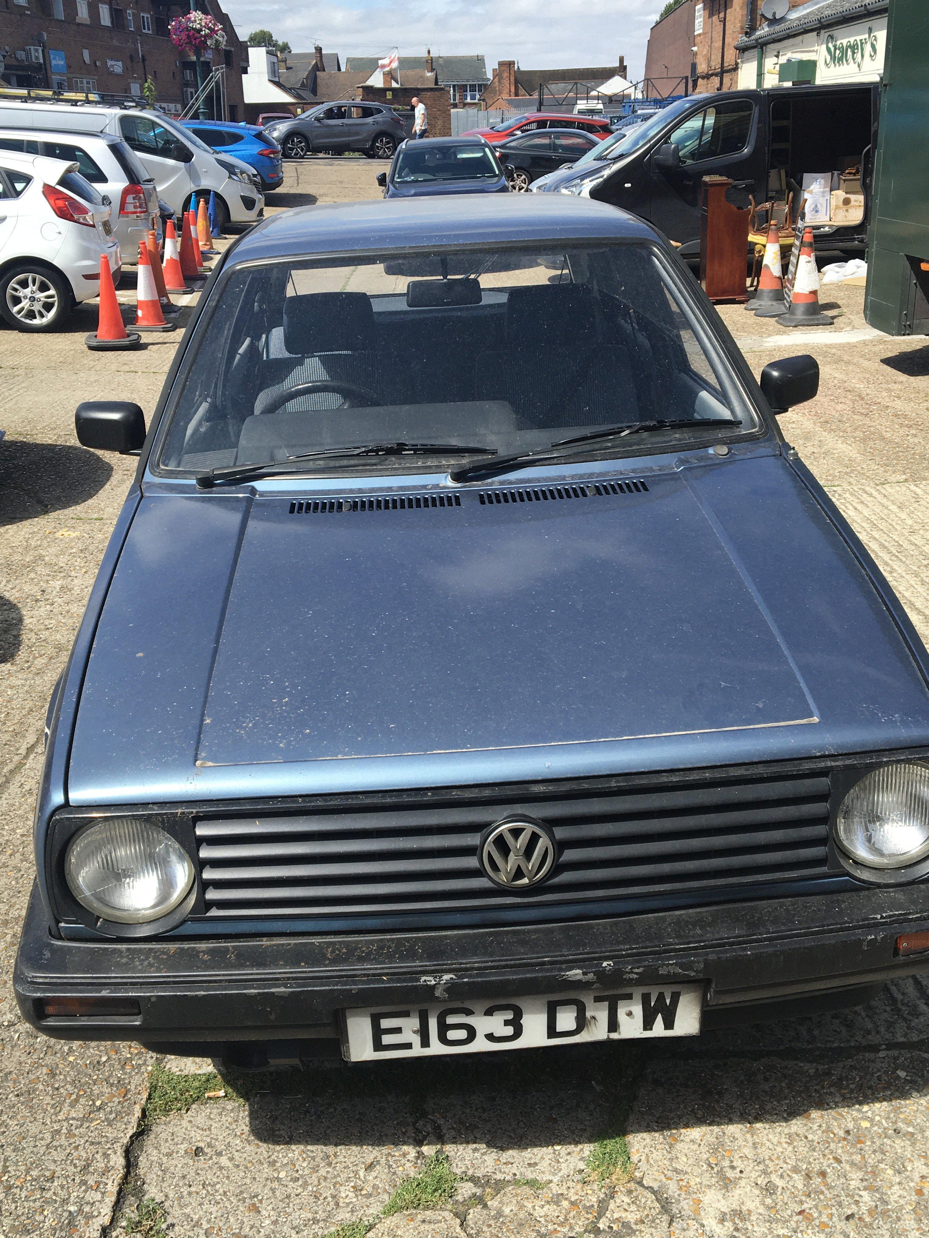 A Classic Volkswagen Golf Mk II 1300 C five door car Registration number E163 DTW. The car had just one previous owner and Genuine Milage of just 35,500. The car runs well has year’s MOT the interior in very good condition has two keys and service history book V5 with regular servicing up to 30,000 miles. The car has been garaged stored. The exterior has dents and will need some cosmetic refreshing. A great opportunity to buy a Genuine 1980s Classic.
