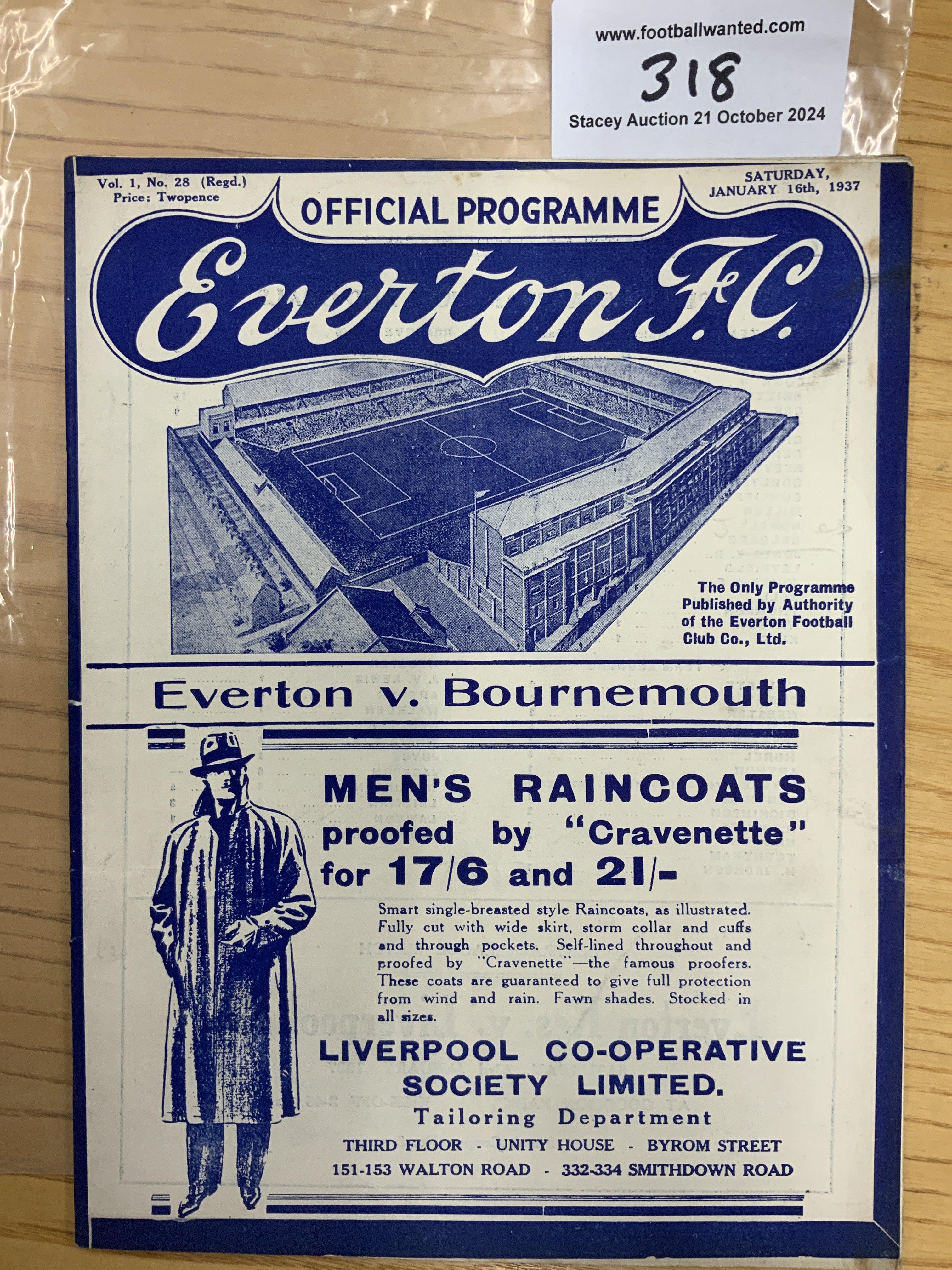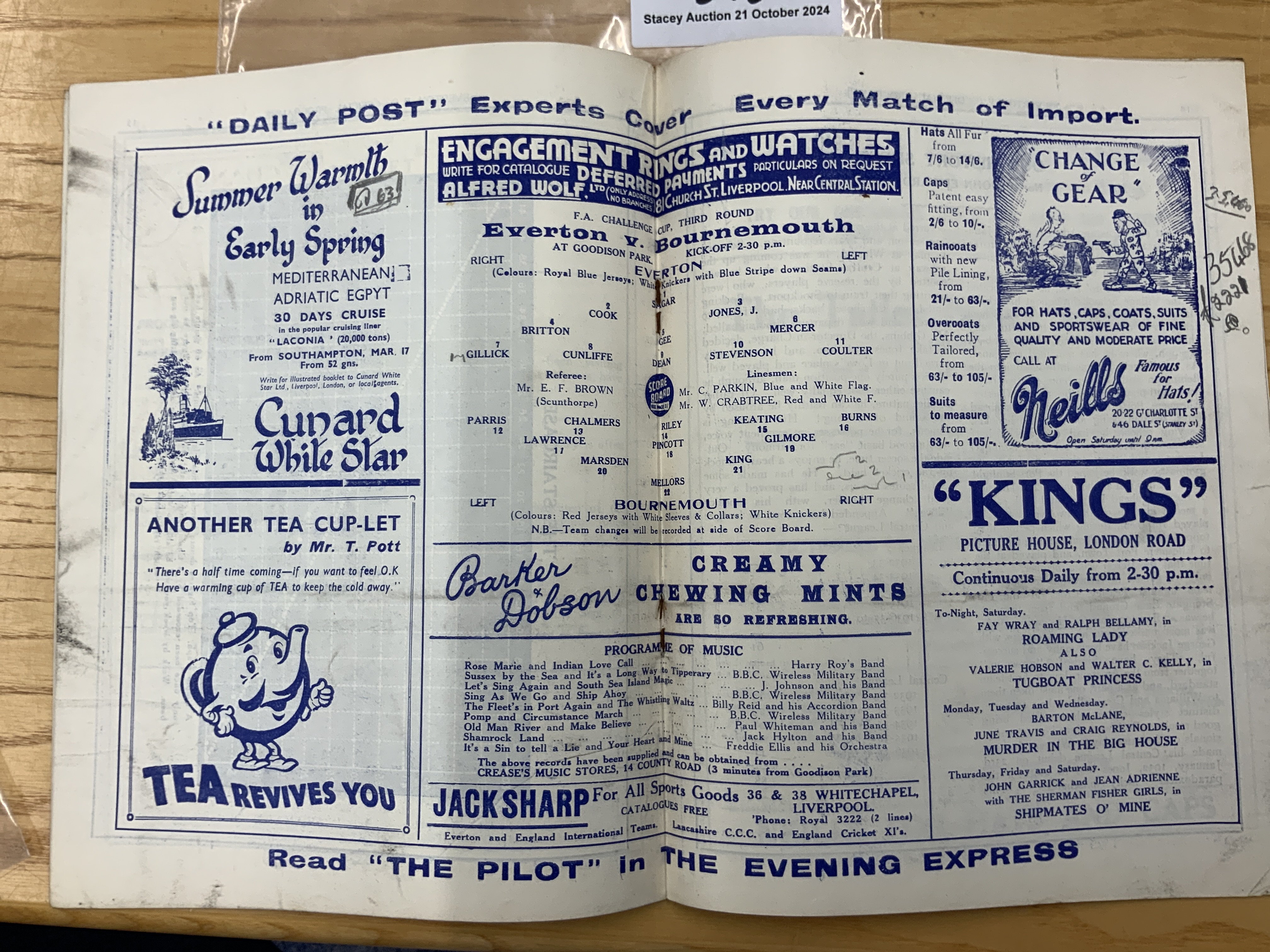 36/37 Everton v Bournemouth Football Programme: Excellent condition FA Cup match dated 16 1 1937. No team changes.