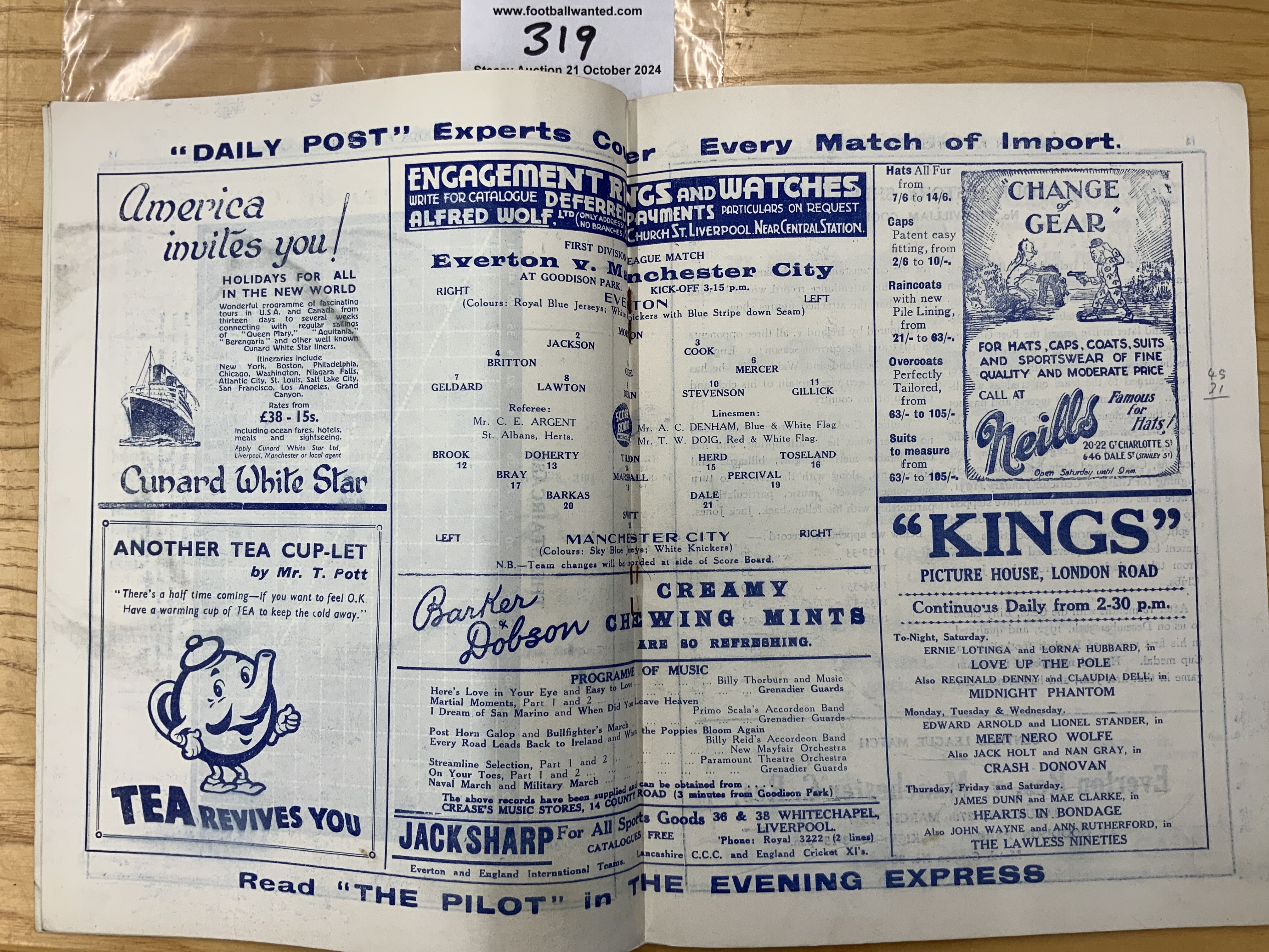 36/37 Everton v Manchester City Football Programme: Excellent condition league match dated 20 3 1937. No team changes.