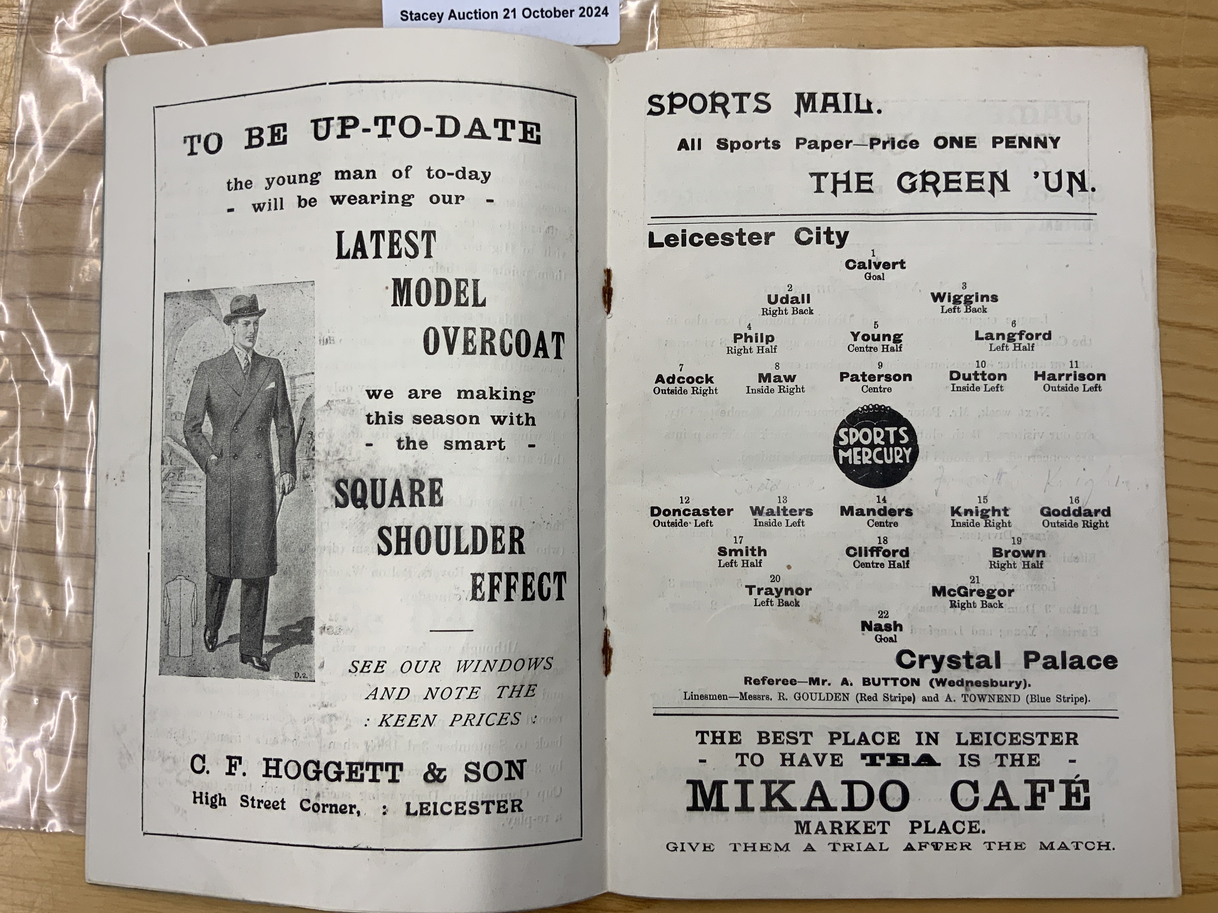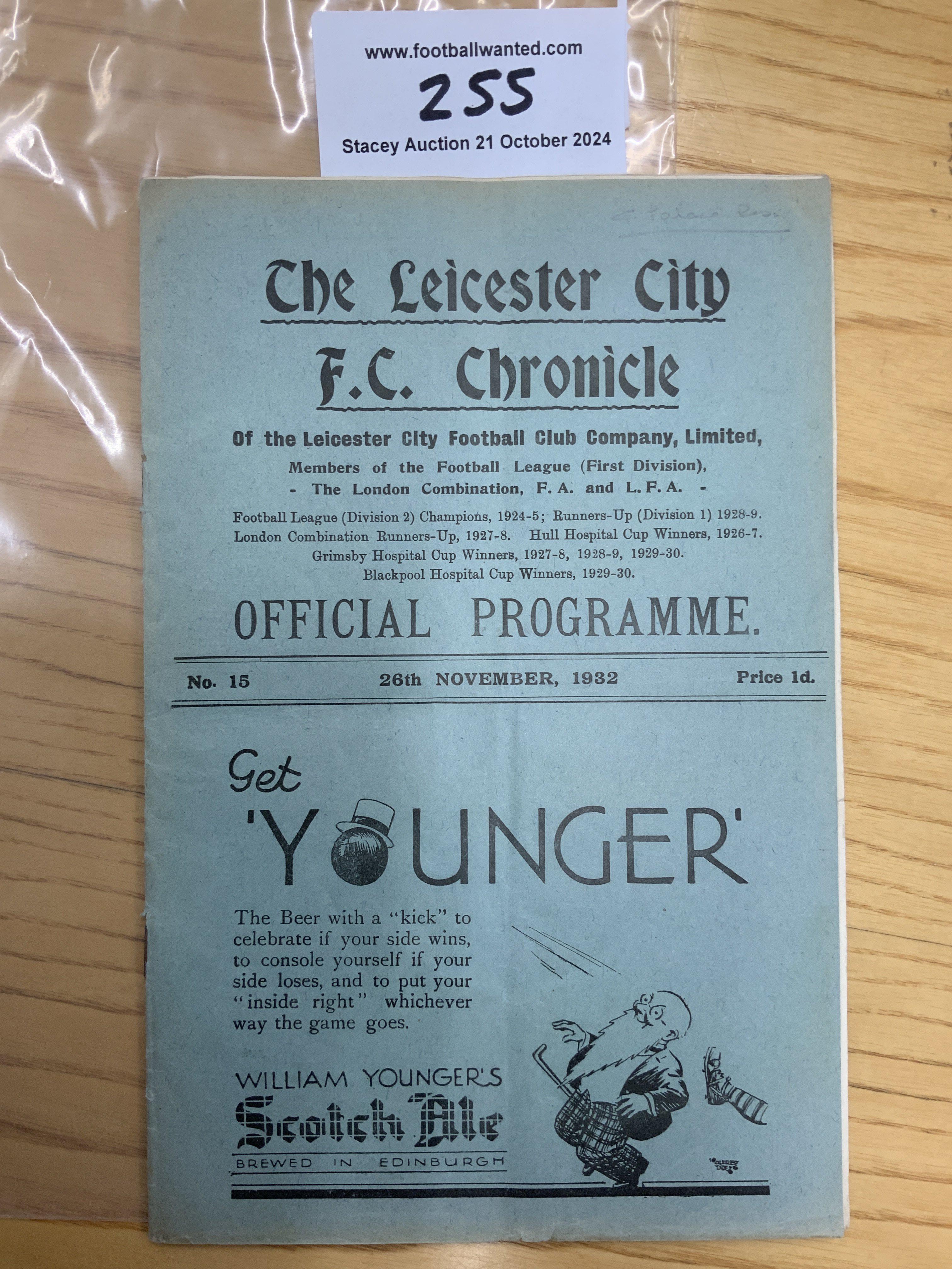 32/33 Leicester City v Crystal Palace Football Programme: Excellent condition league match dated 28 11 1932 with no team changes.