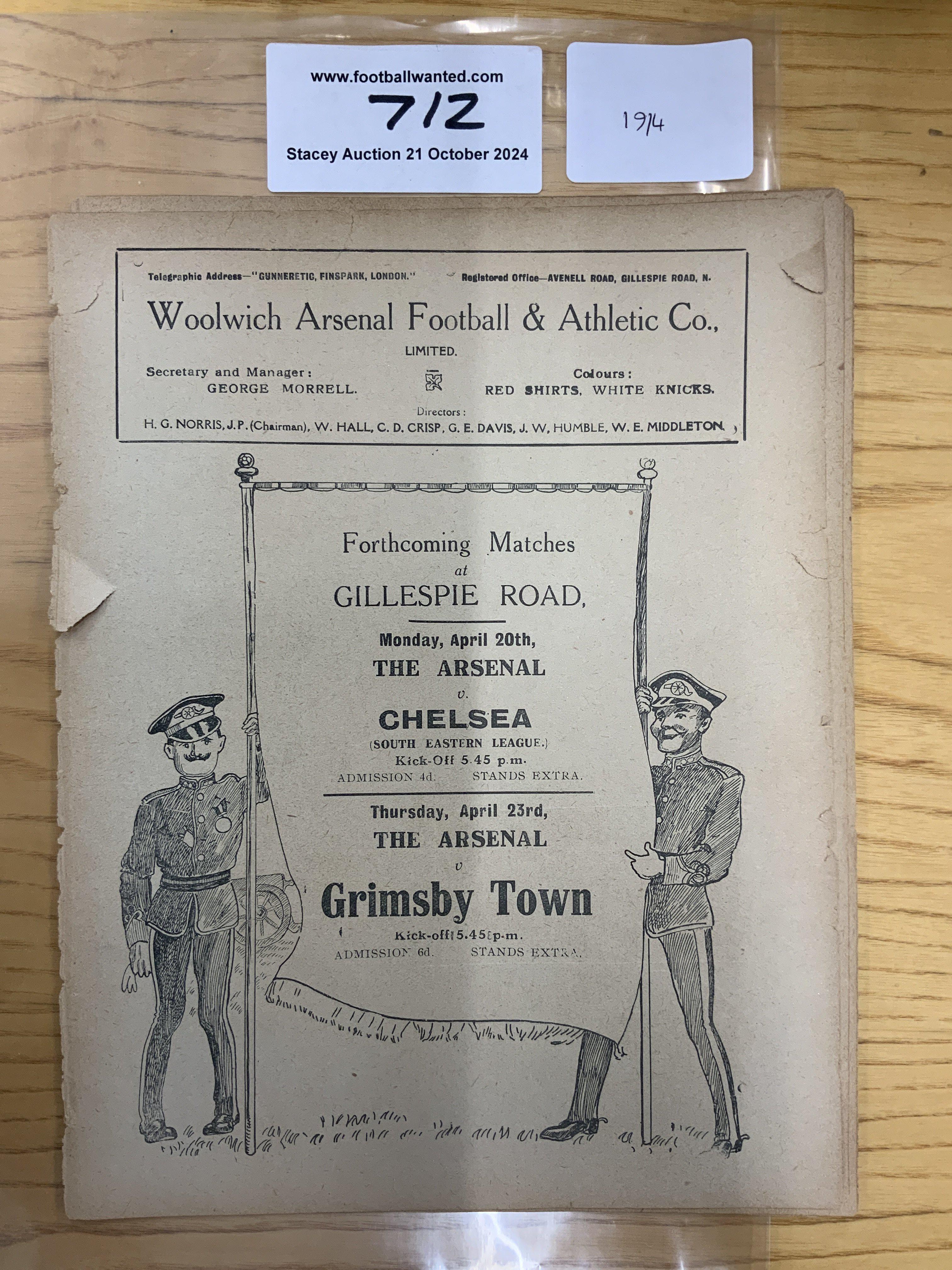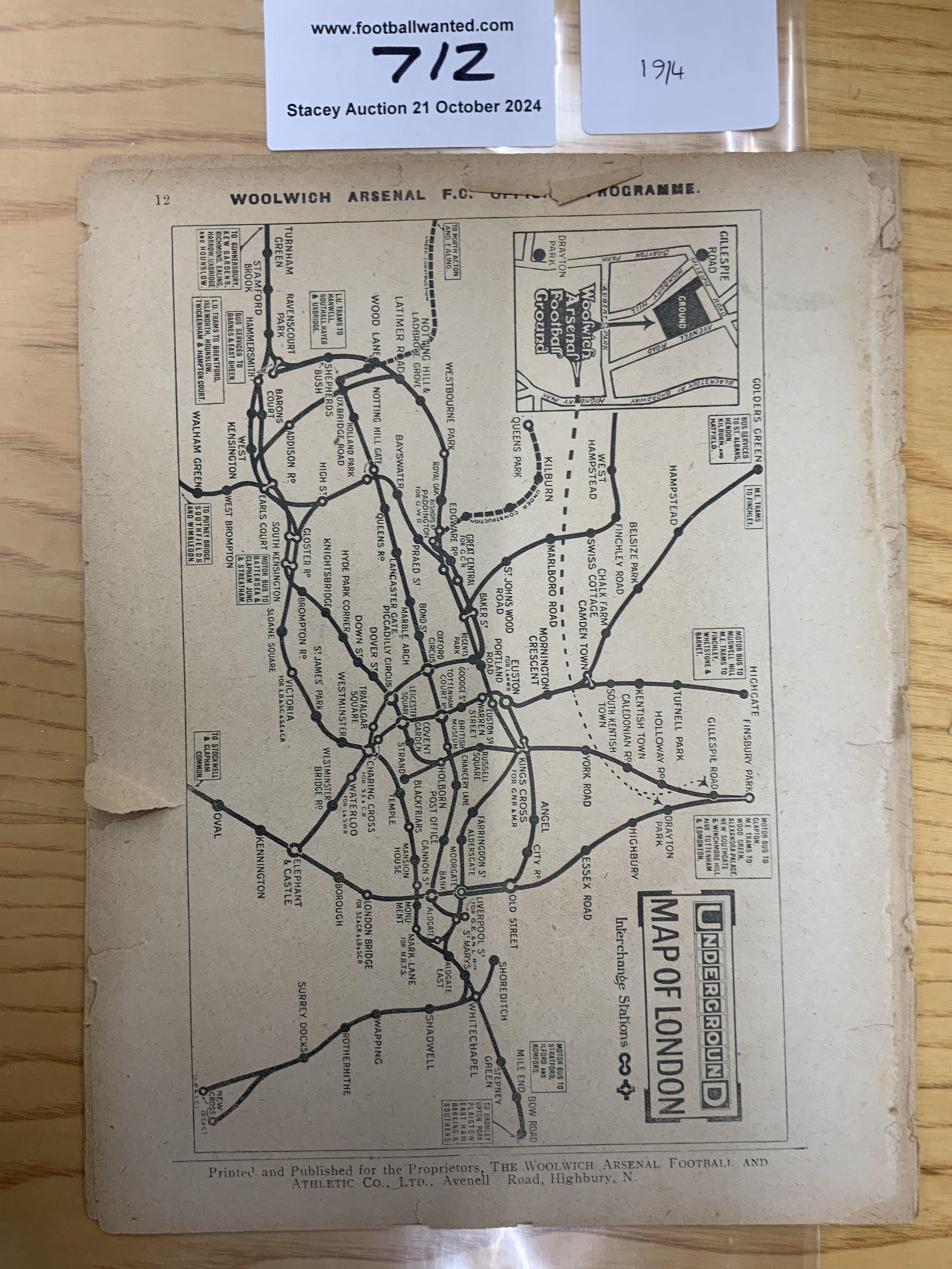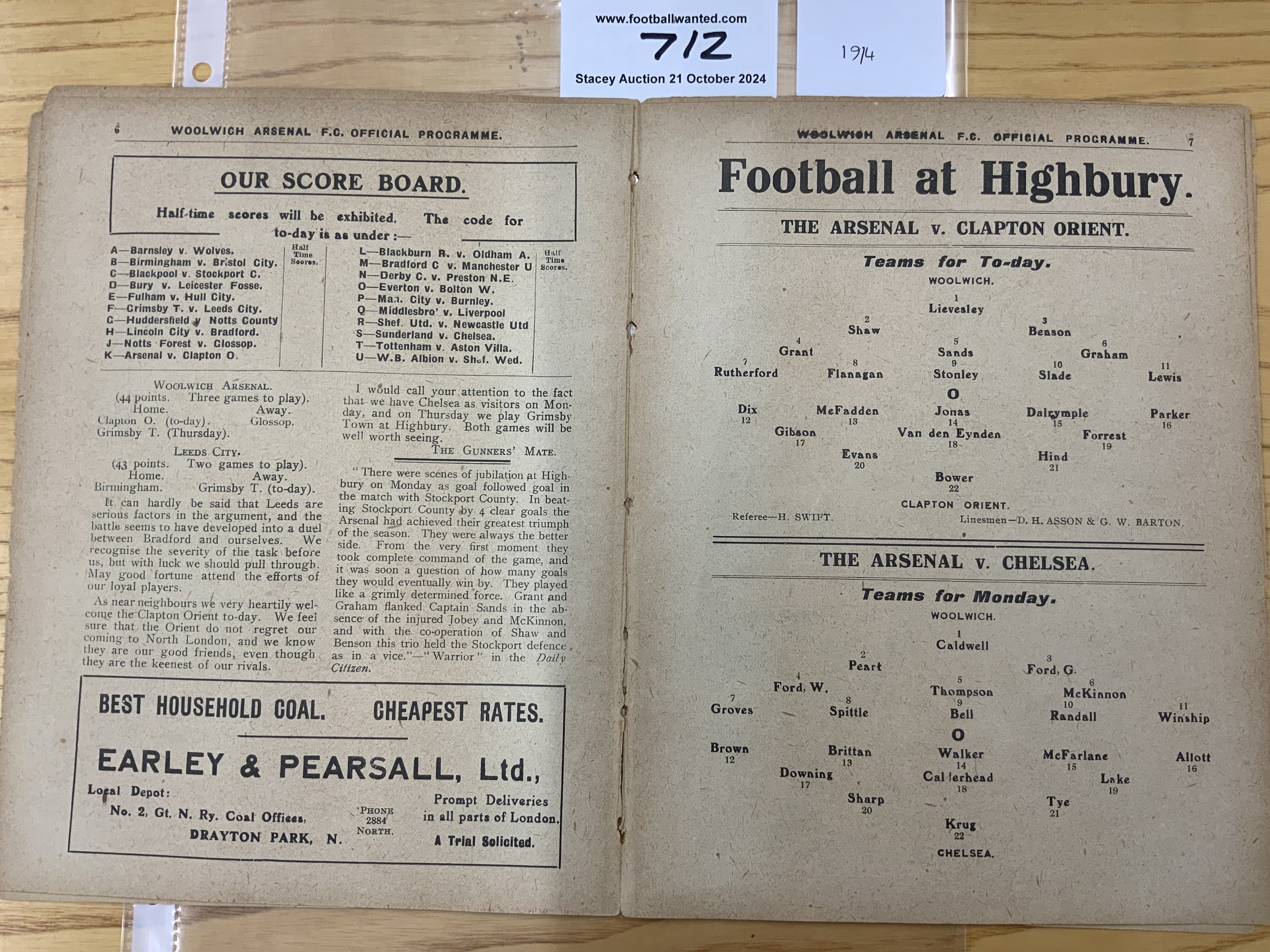1913 - 1914 Woolwich Arsenal Reserves v Chelsea + Orient Football Programme: Autograph pages number 1- 12 this is lacking covers and in ex bound leaving spine split. A small picture has been cut out of page 3 also.