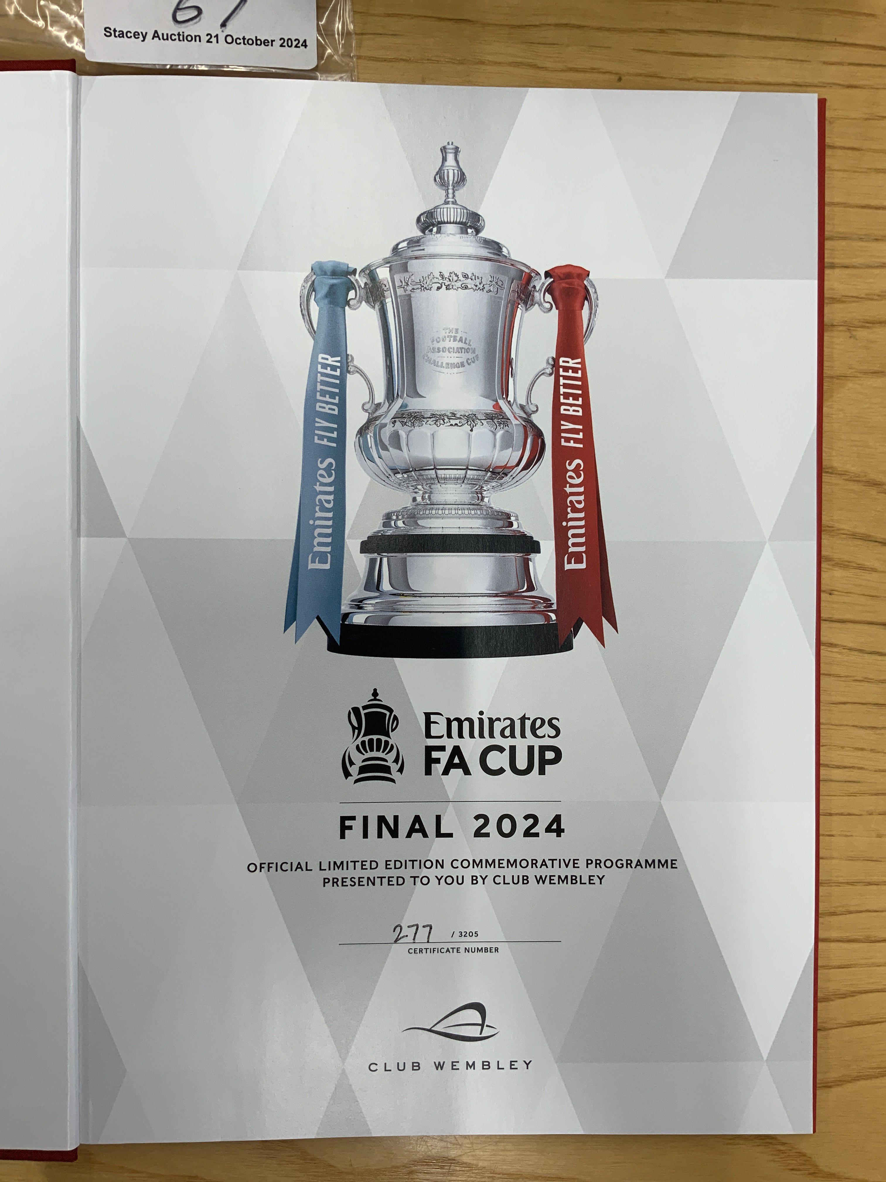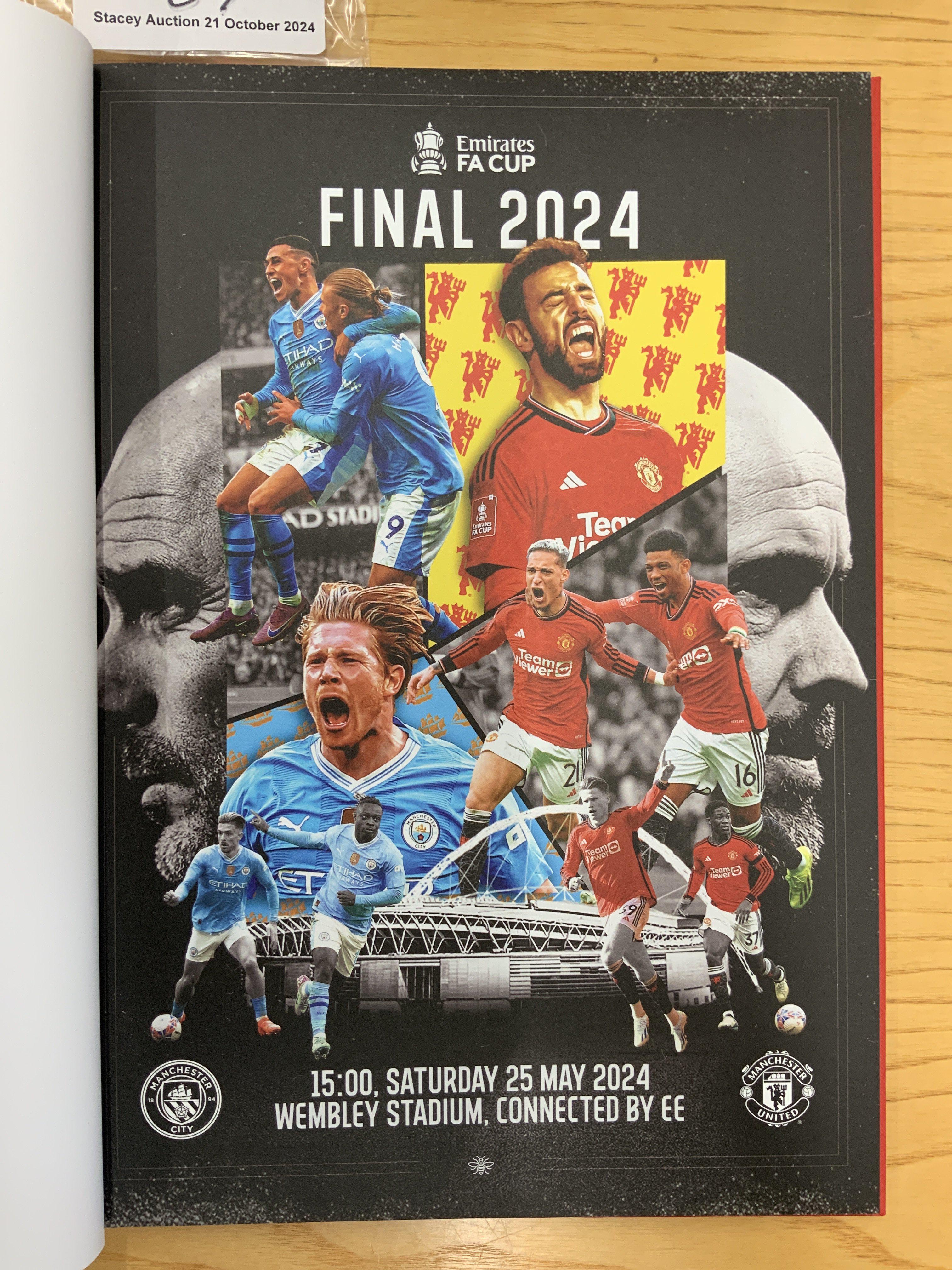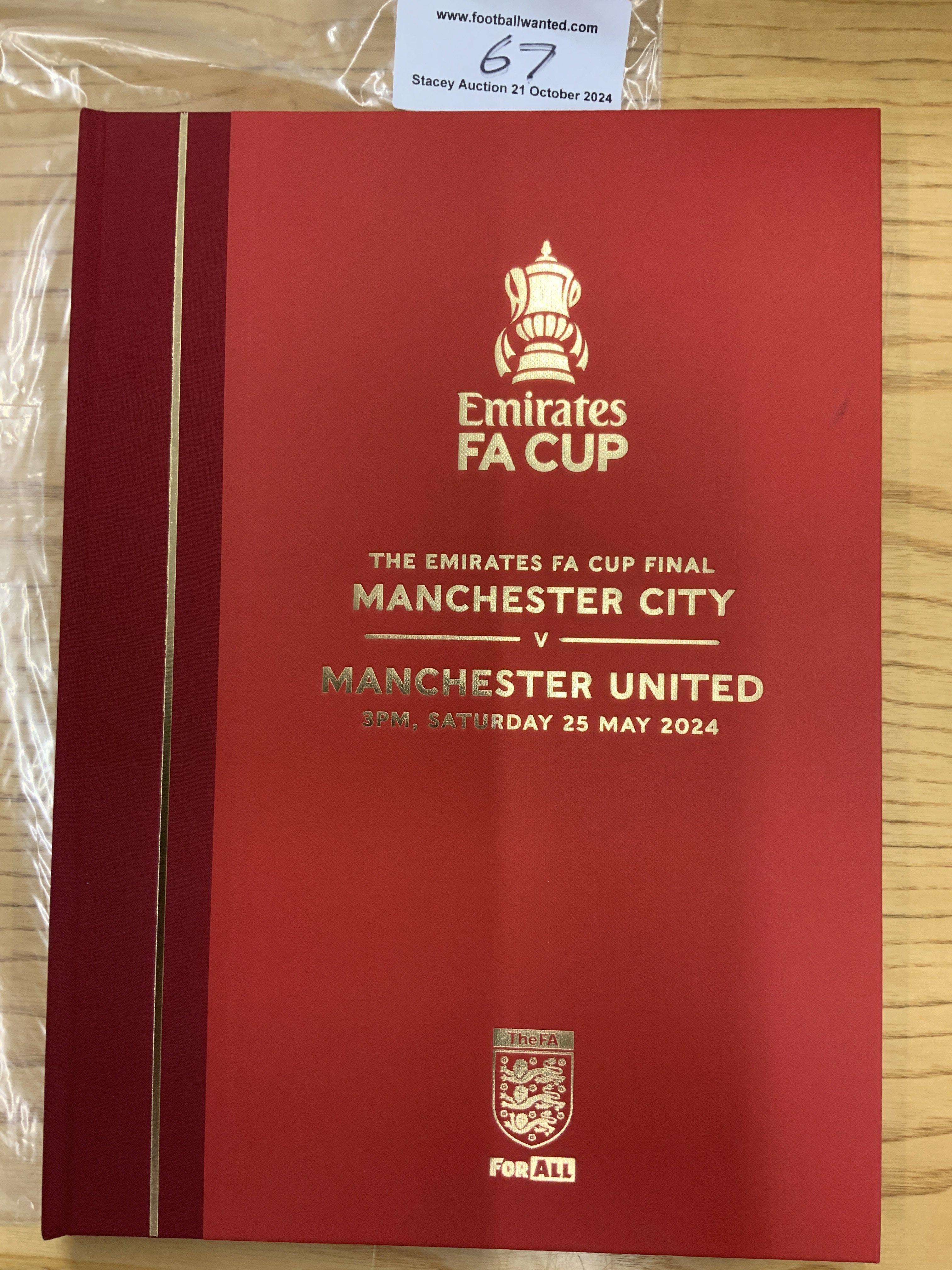 2024 Hardback FA Cup Final Football Programme: Manchester United v Manchester City Ltd edition Club Wembley version number 277 of 3205. Excellent condition bound in red cover with gold embossing.