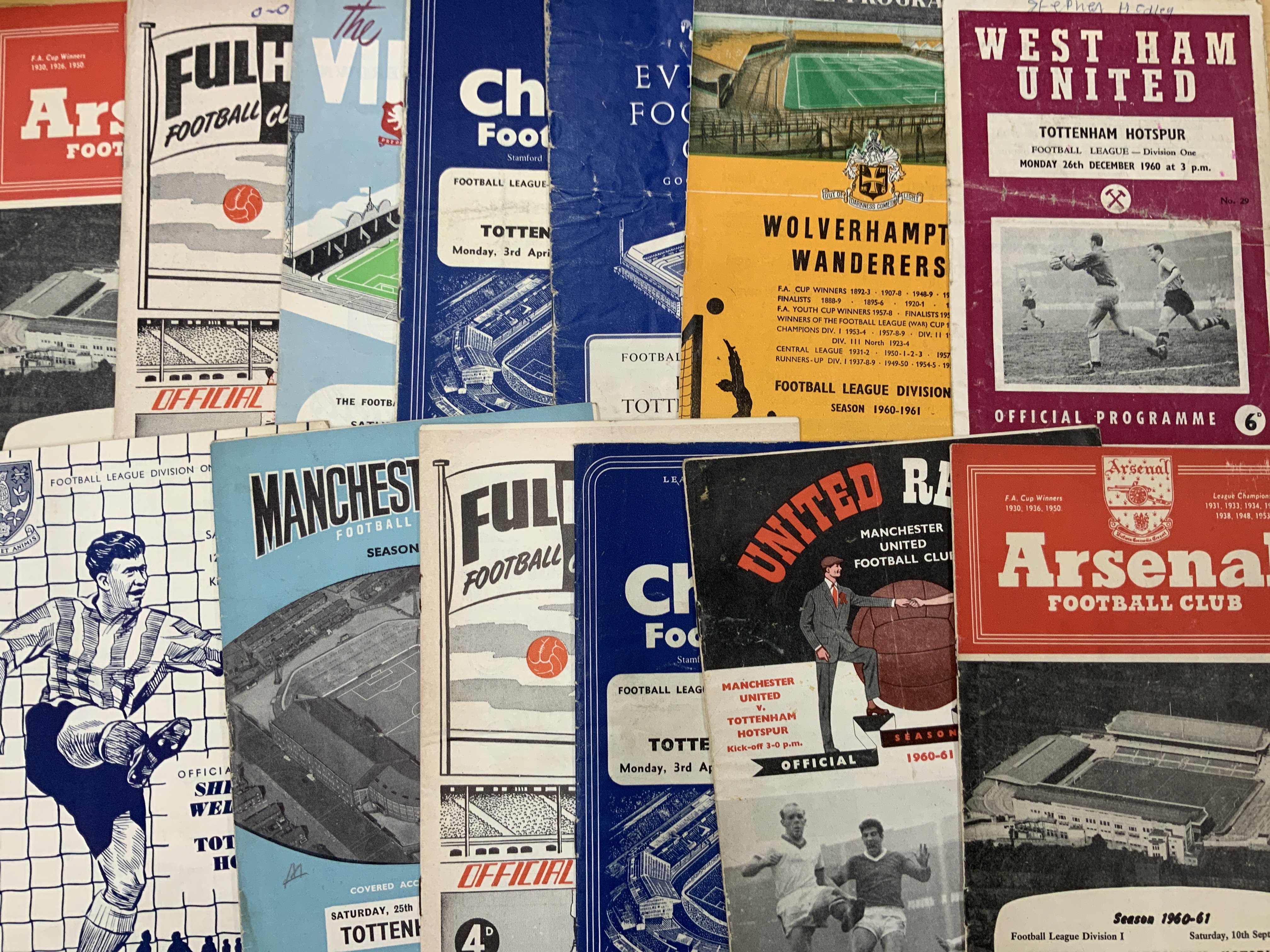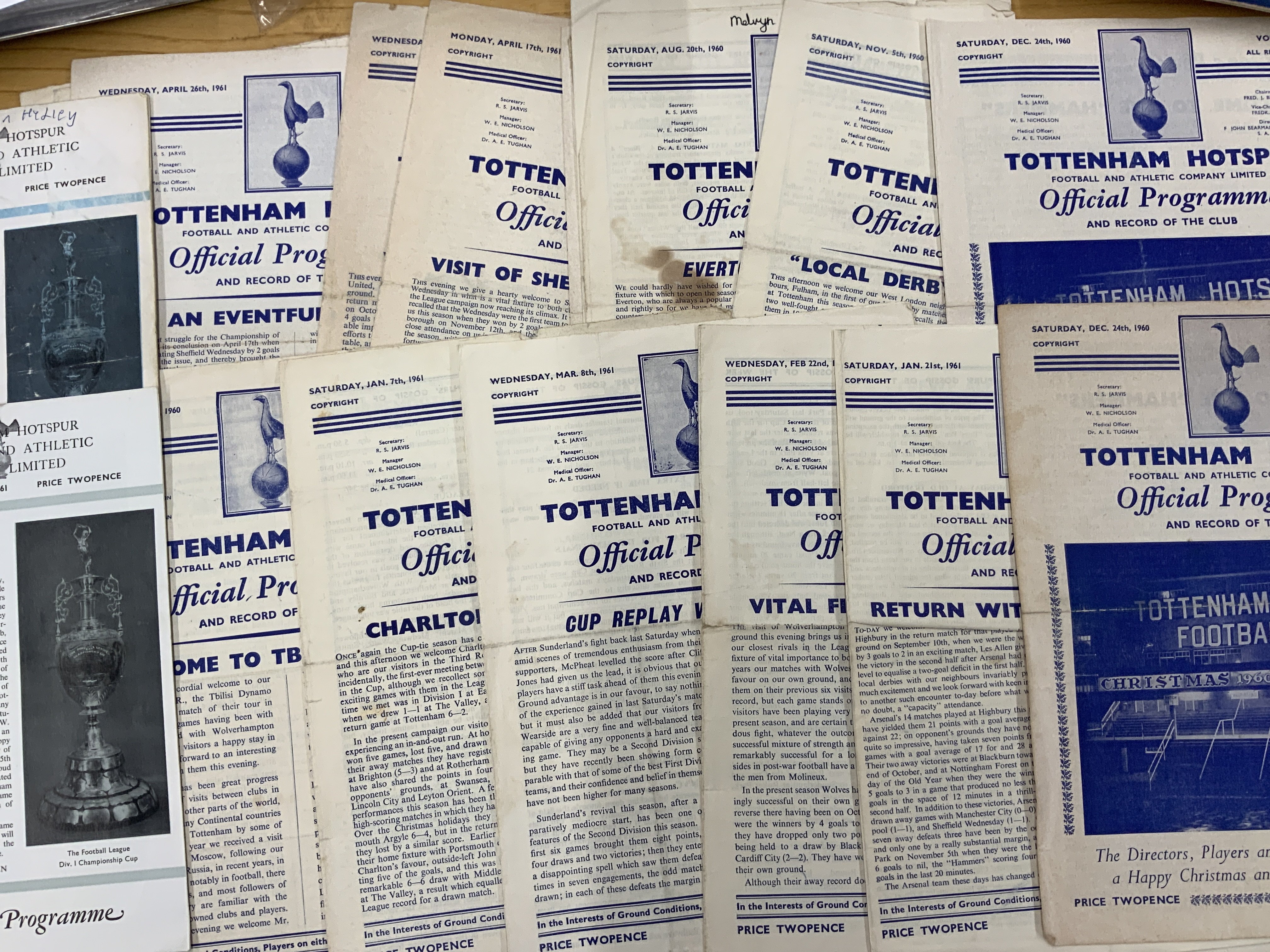 Tottenham 60/61 Football Programmes: Home and away in various conditions from the famous double season. Some are poor and some have writing and duplication noted. (40)