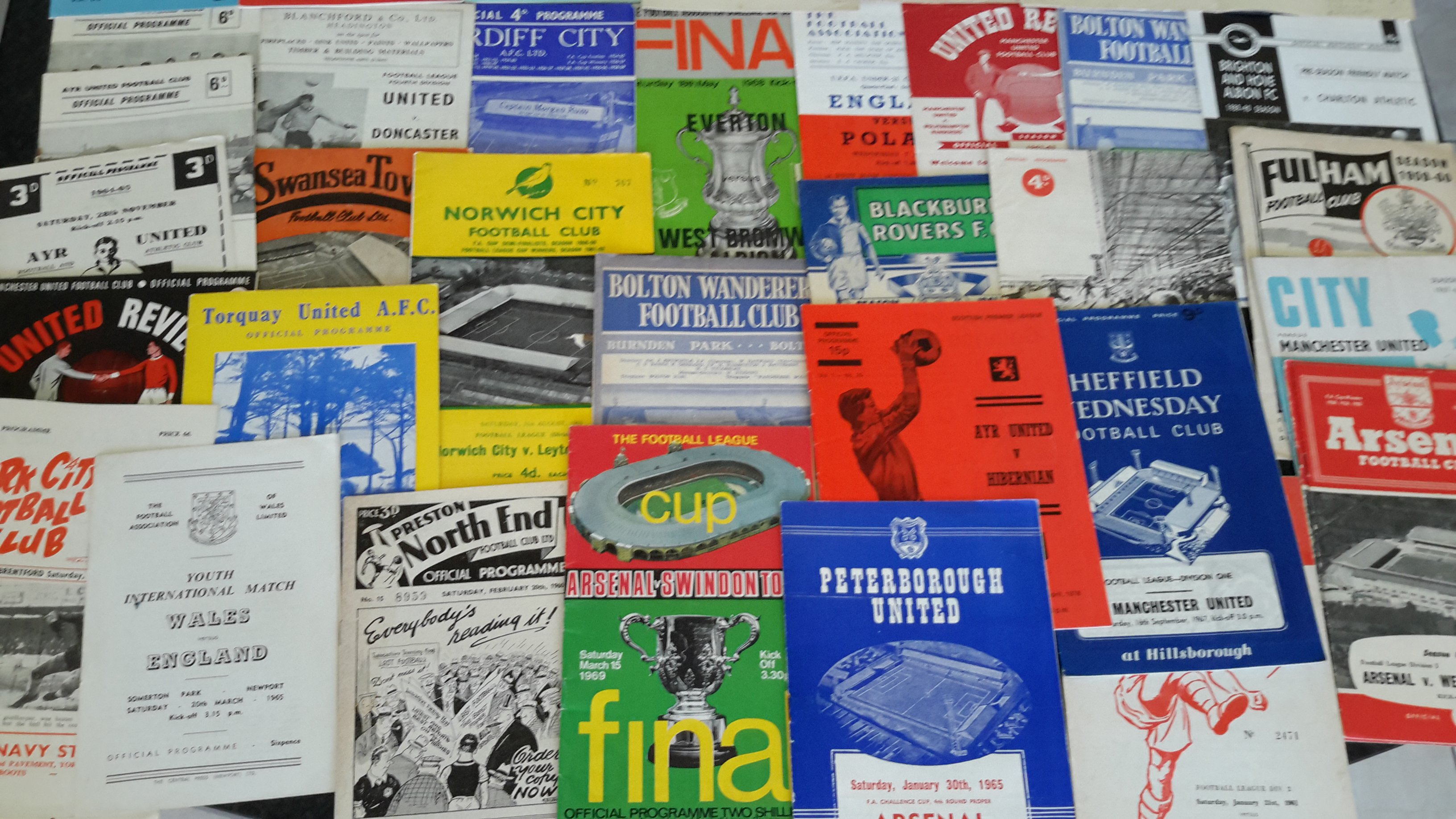 Football Programme Box: League, FA Cup, Friendlies, Testimonials, Cup Finals etc. Wide range of clubs and worth a look. (est 225)