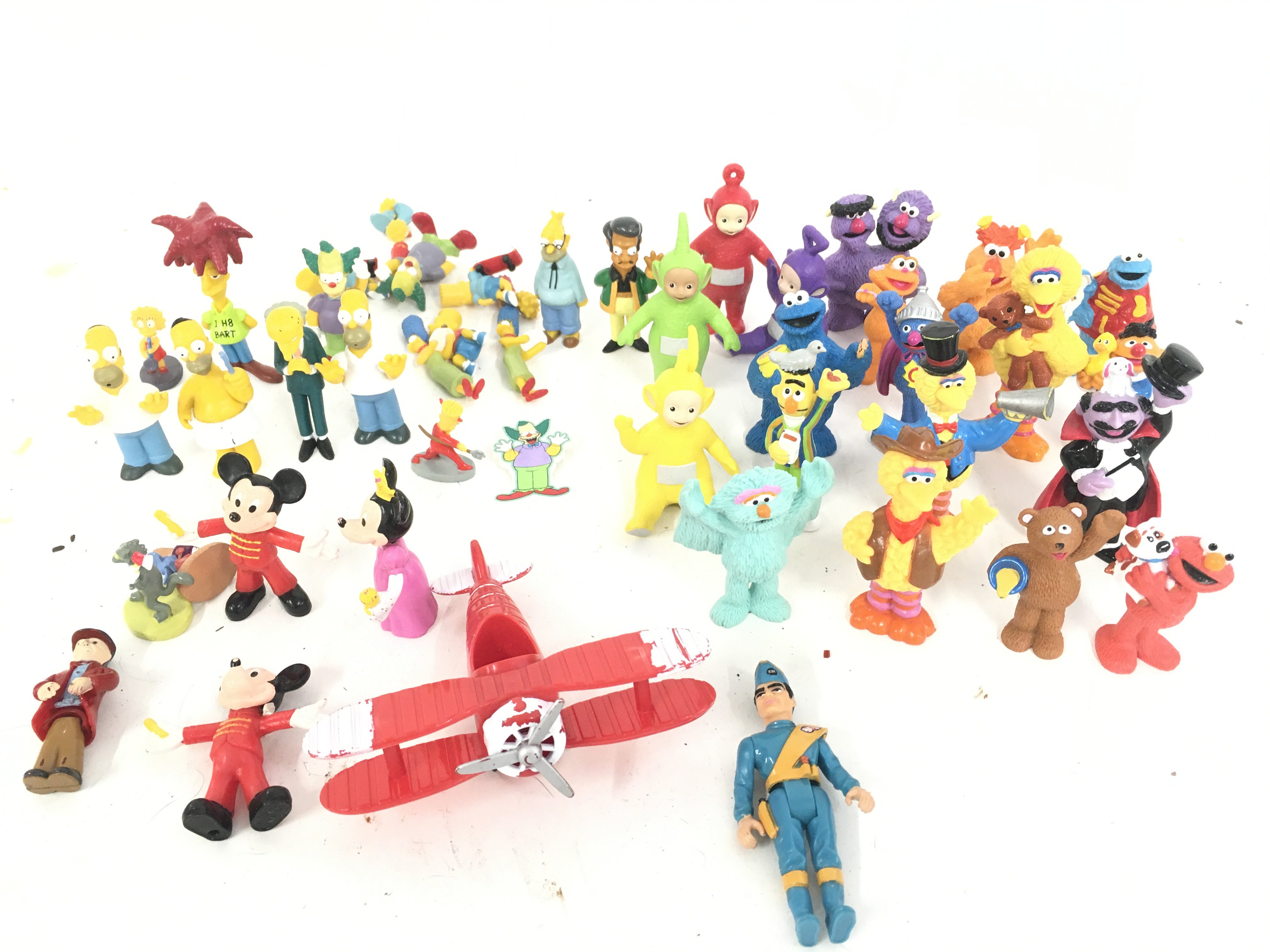 A Collection of Various plastic Figures including The Simpsons. Disney. Sesame Street etc.