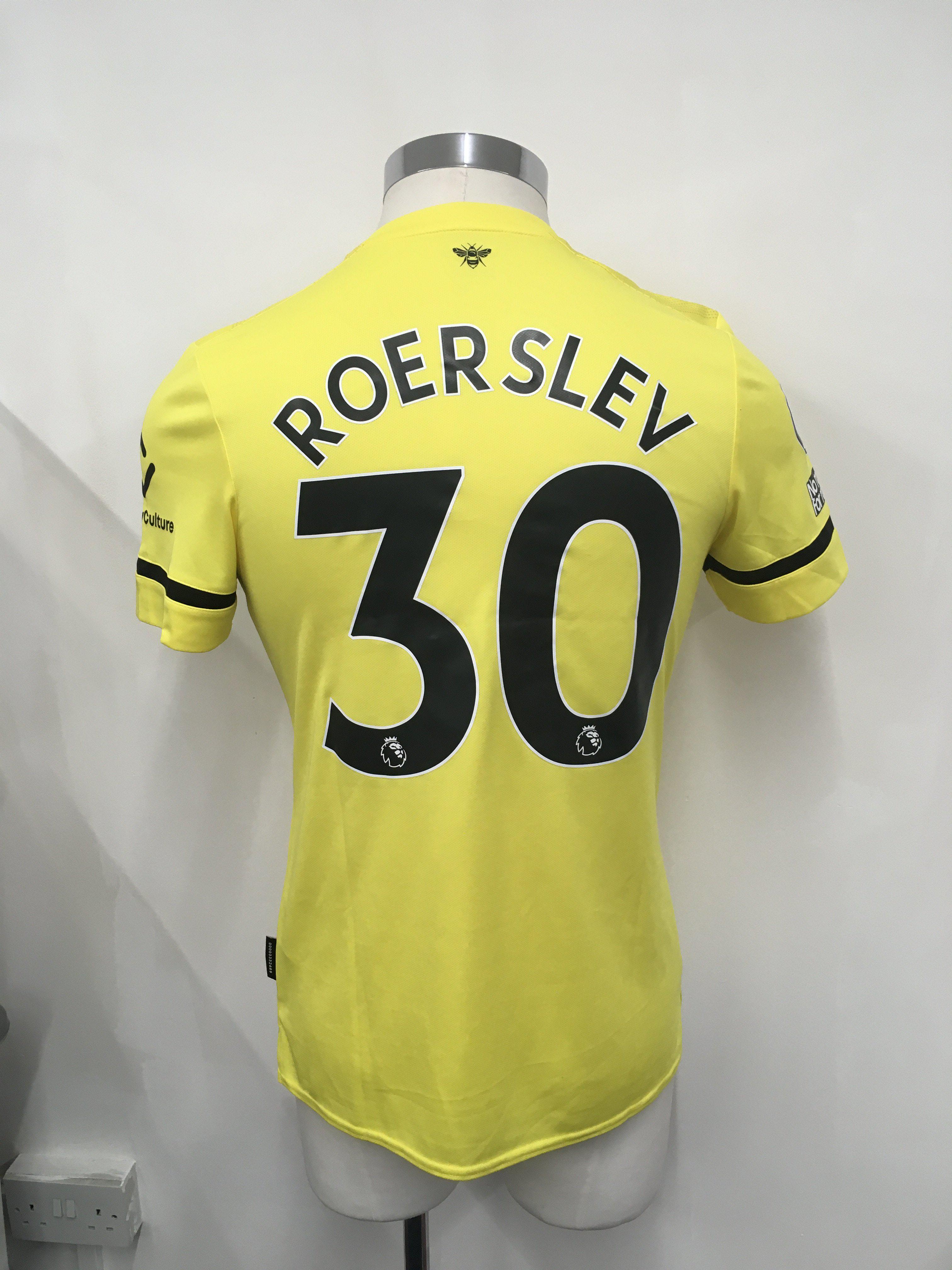 Brentford 2021 - 2022 Match Issued Football Shirt: Away short sleeve shirt with Premier League badging to arms. Roerslev number 30 to rear. Issued v Tottenham on 2 December 2021.