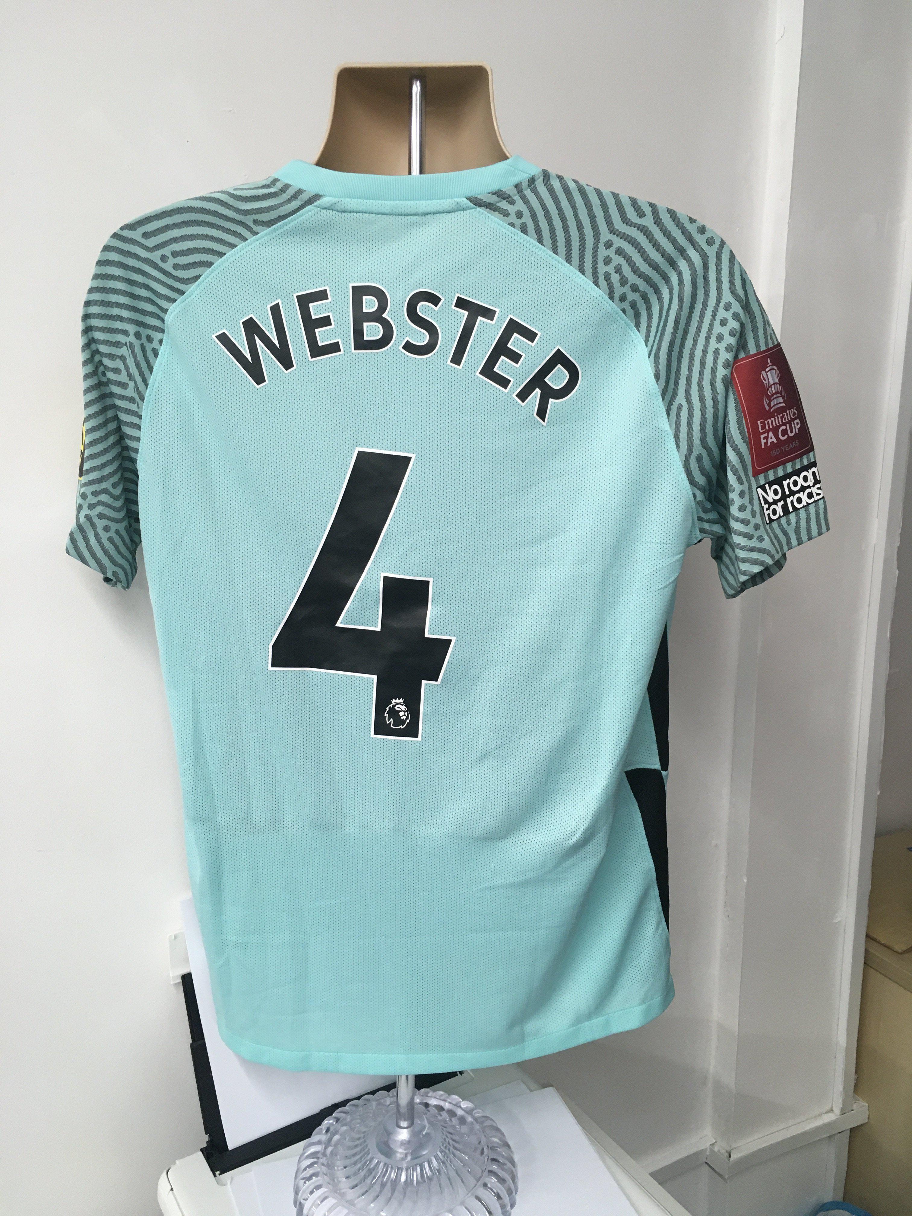Brighton 2021 - 2022 Match Worn Football Shirt: Away short sleeve shirt with Emirates FA Cup badge to arms. Webster number 4 to rear. Worn v Tottenham on 5 February 2022. FA Cup 4th round.