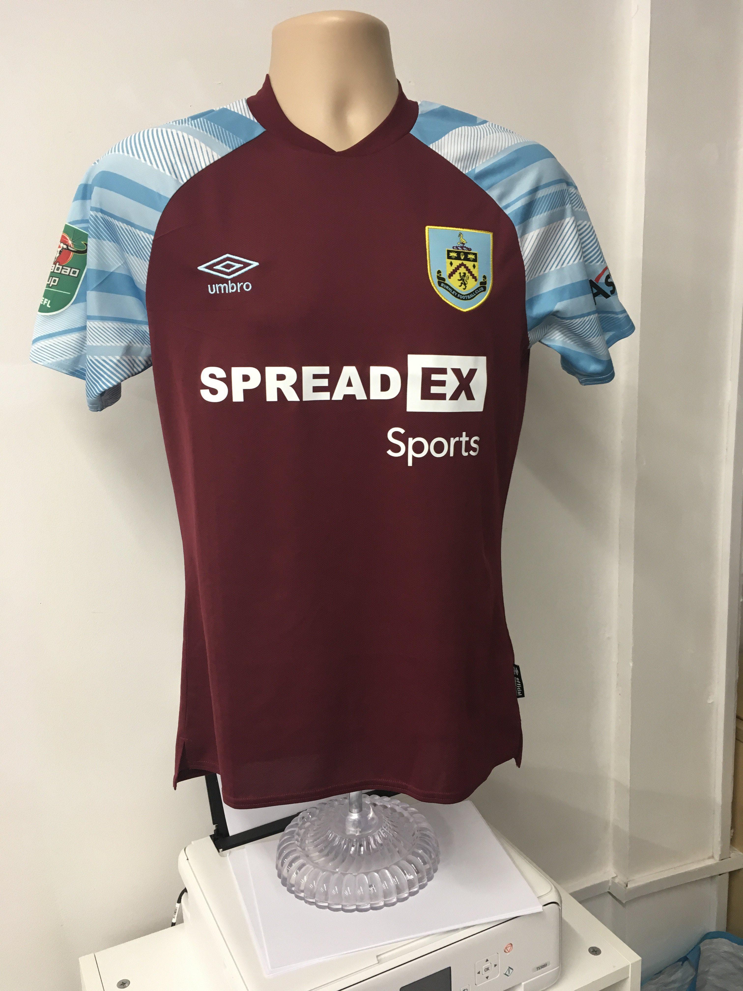 Burnley 2021 - 2022 Match Worn Football Shirt: Home short sleeve shirt with Carabao Cup badge to arm. Cornet number 20 to rear. Worn v Tottenham on 27 October 2021