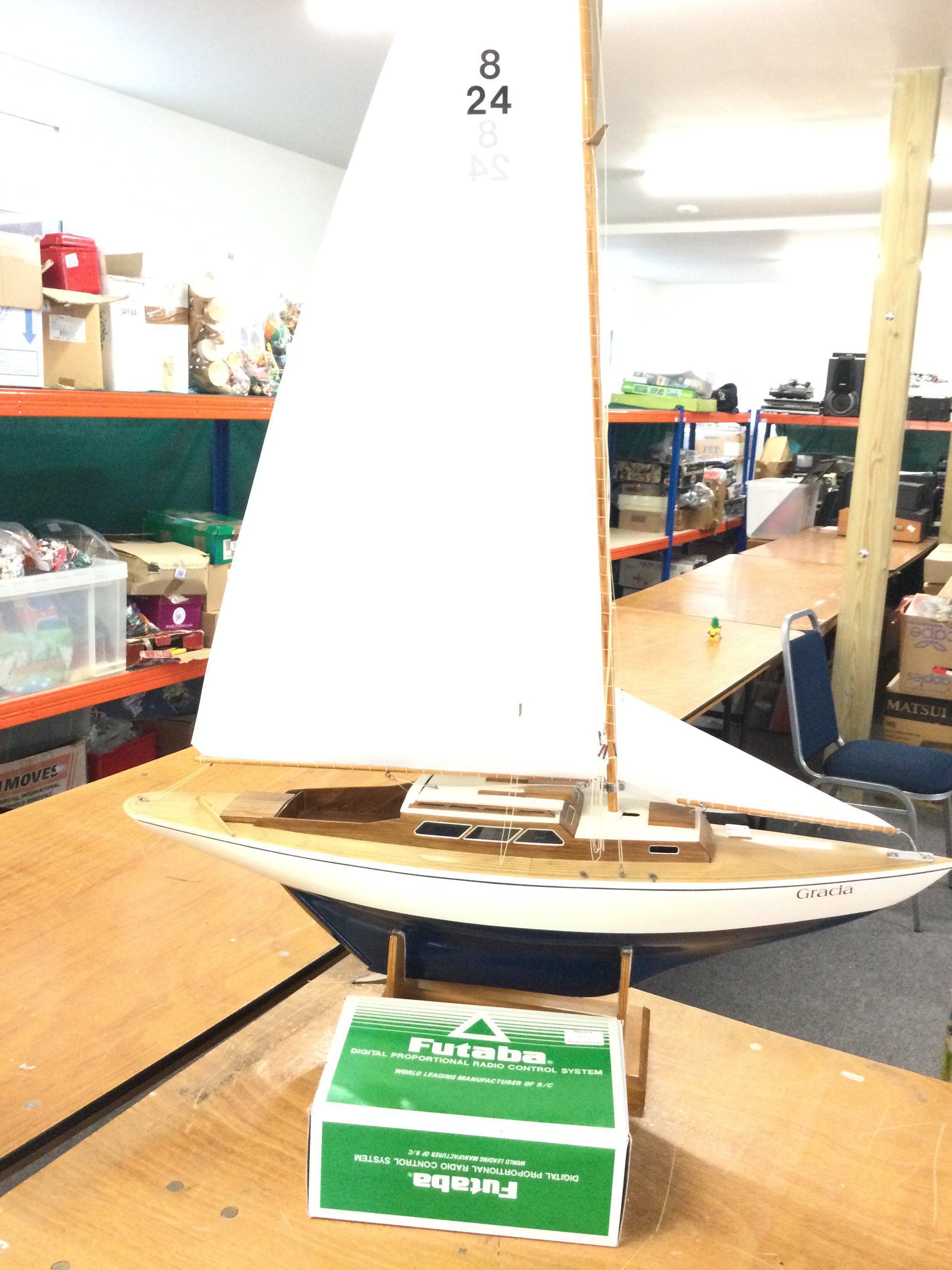A remote controlled yacht with controller. Approximately 5ft height and 3ft length. No reserve.