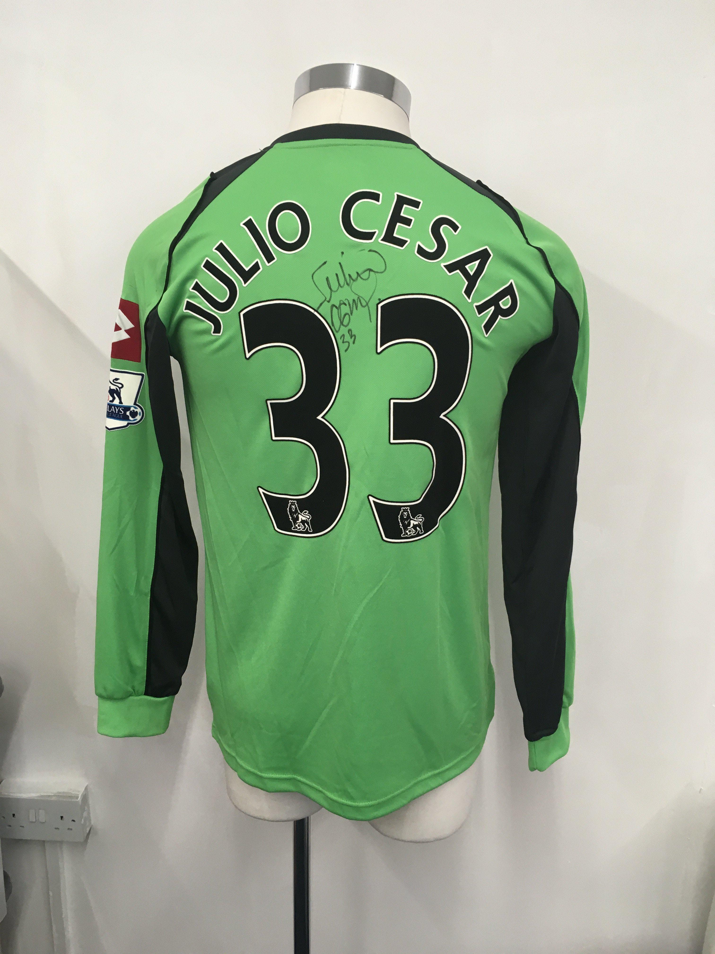 Queens Park Rangers 2012 - 2013 Match Worn Football Shirt: Goalkeeper long sleeve shirt with Premier league badging to arms. Julio Cesar number 33 to rear. Third goalie shirt for that season. Shirt is signed by the player.