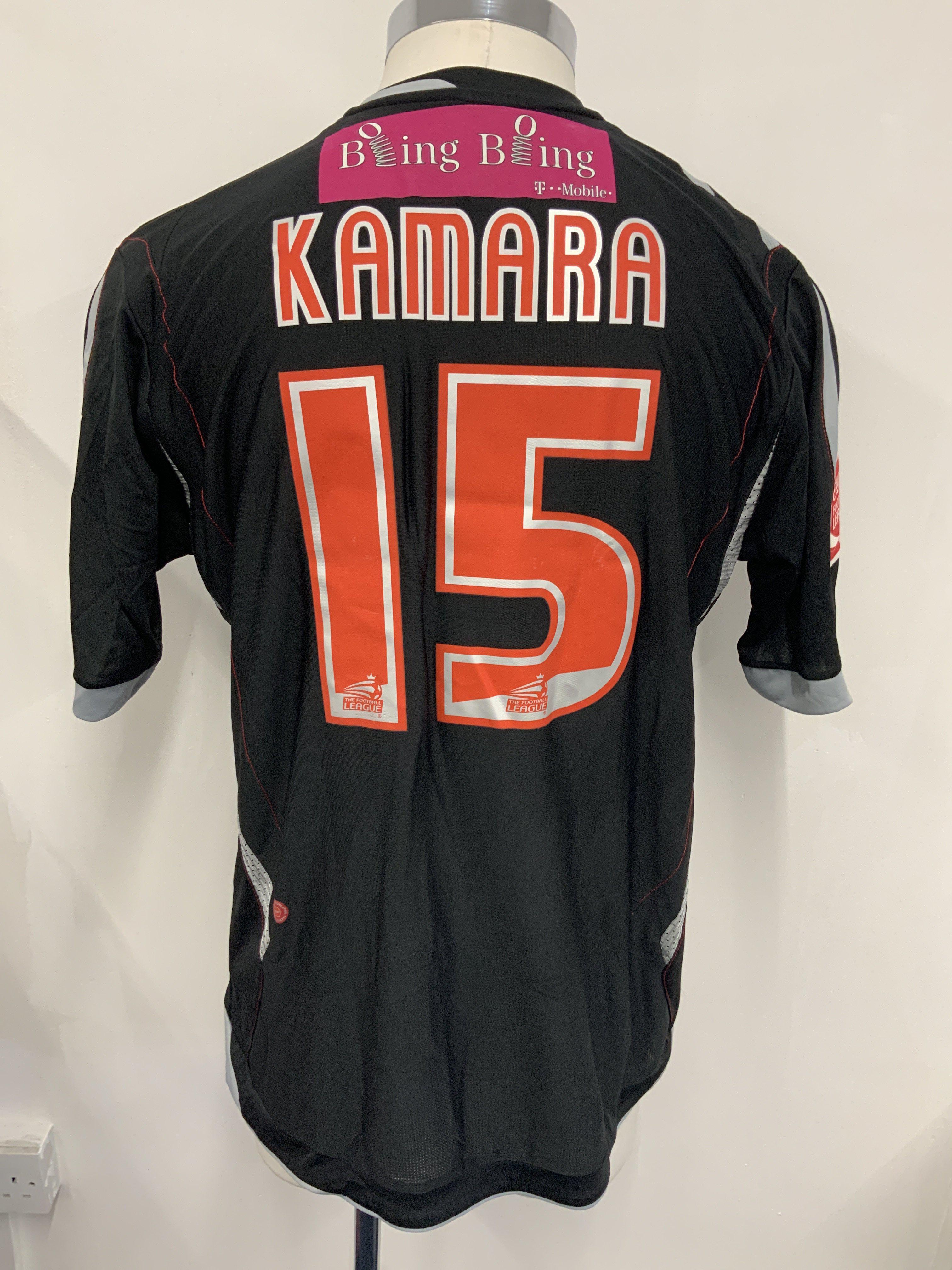 West Brom Play Off Final Match Worn Football Shirt: Away short sleeve shirt with Coca Cola badging to arms. Kamara Number 15 to rear. Worn v Derby in the Play Off Final on 28 5 2007.