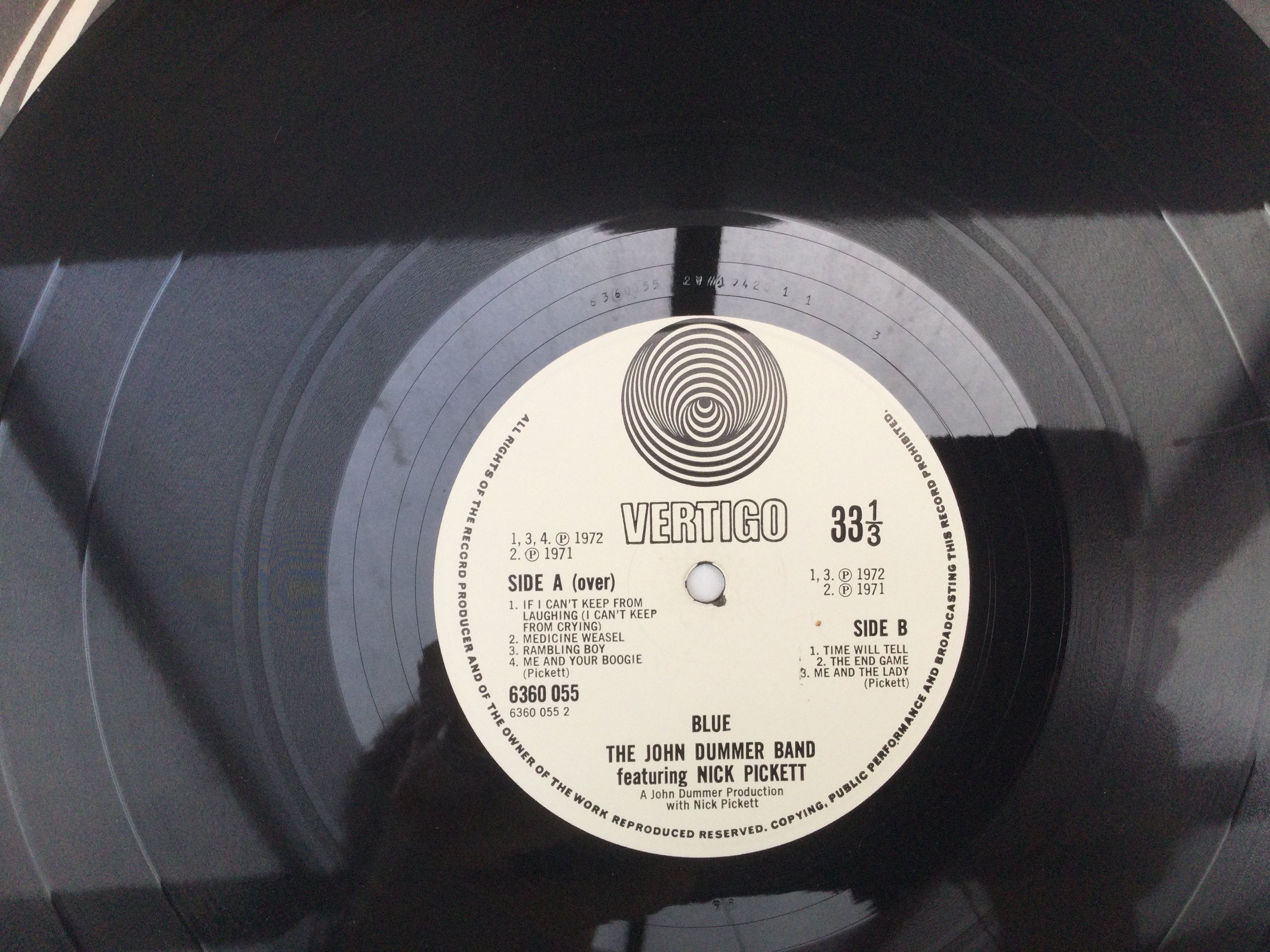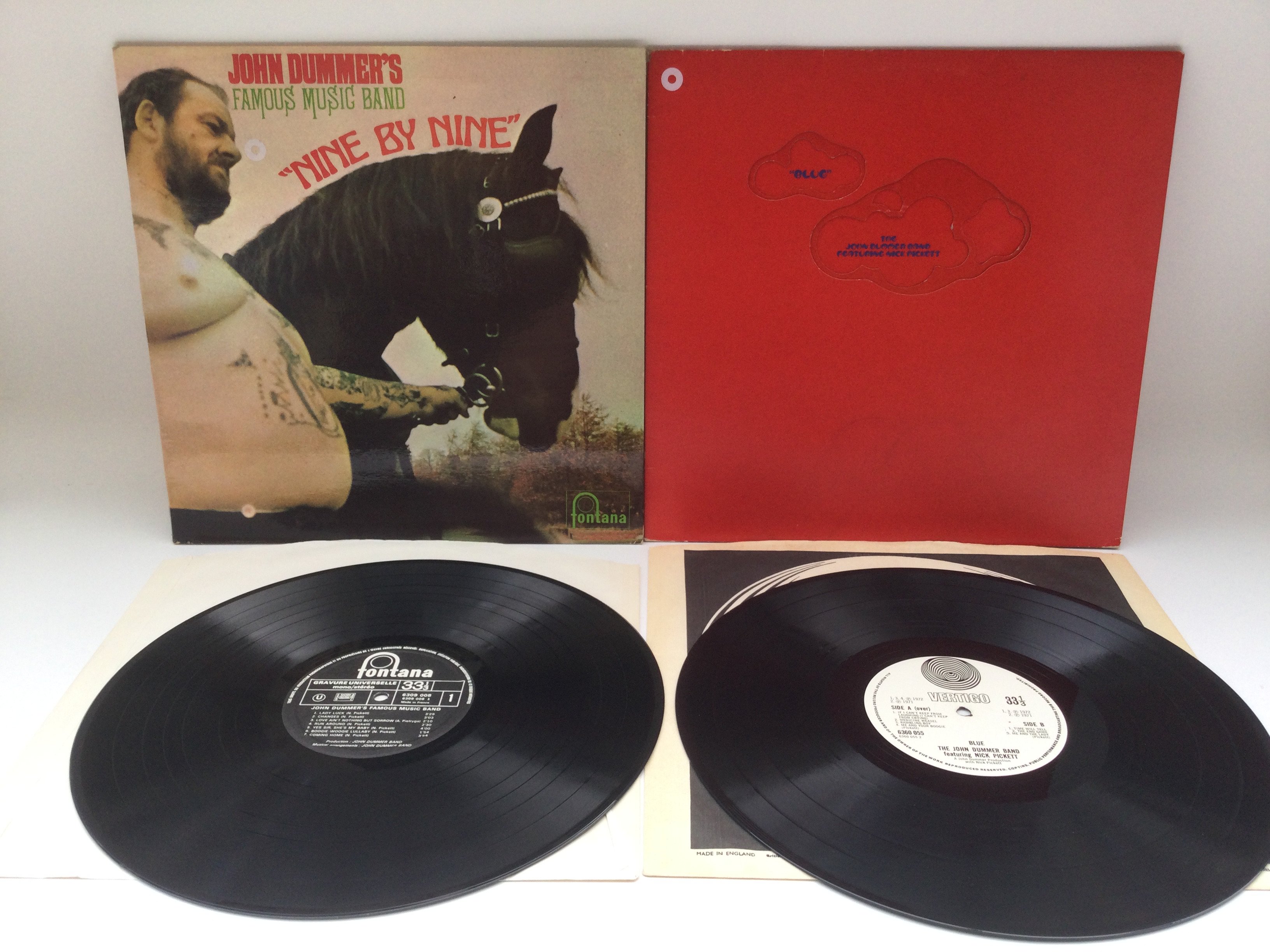 Two early pressings of LPs by The John Dummer Band comprising Nine By Nine' and 'Blue'. Both Ex, one small mark on 'Blue' but does not look like it will affect playback.