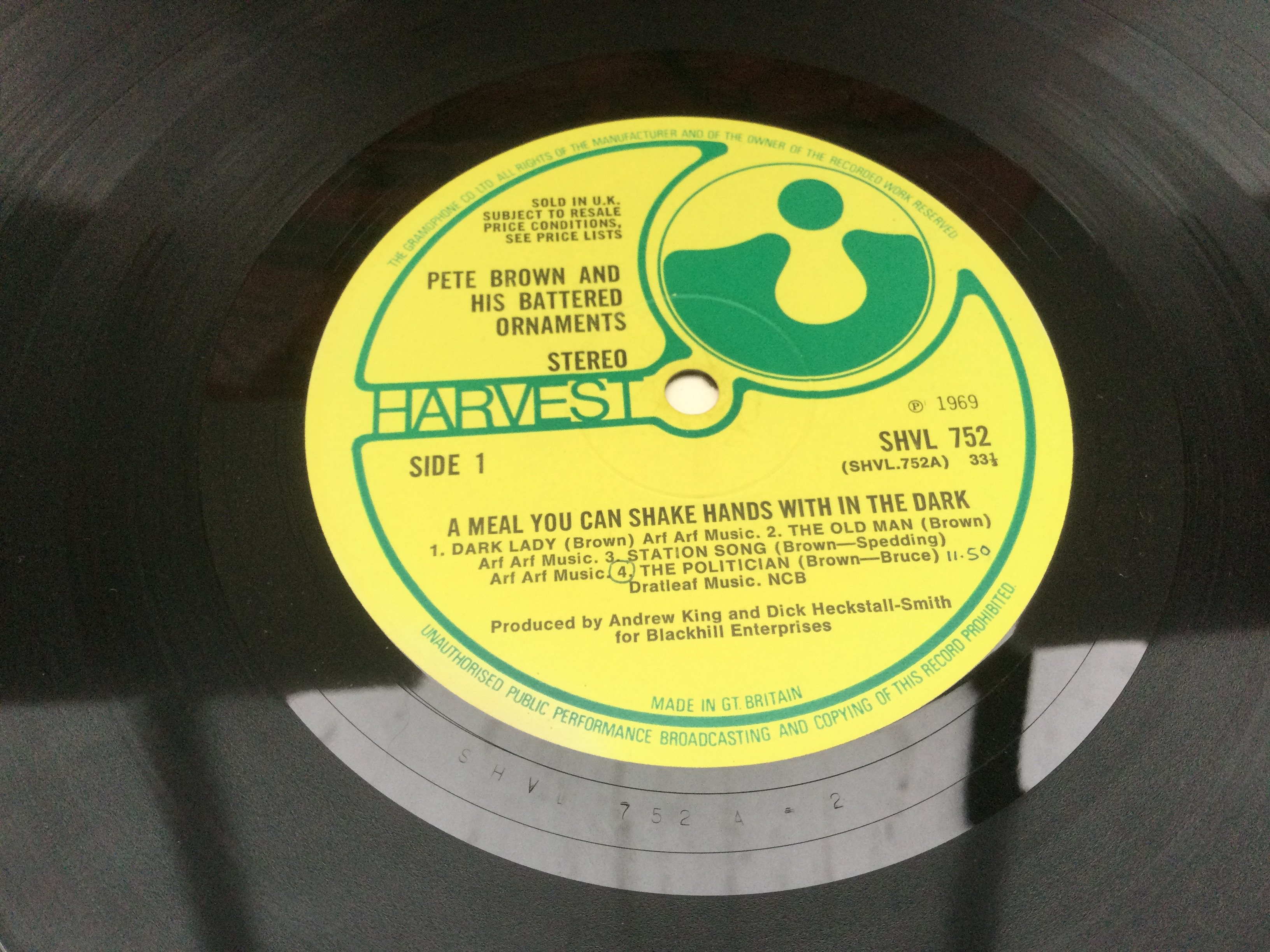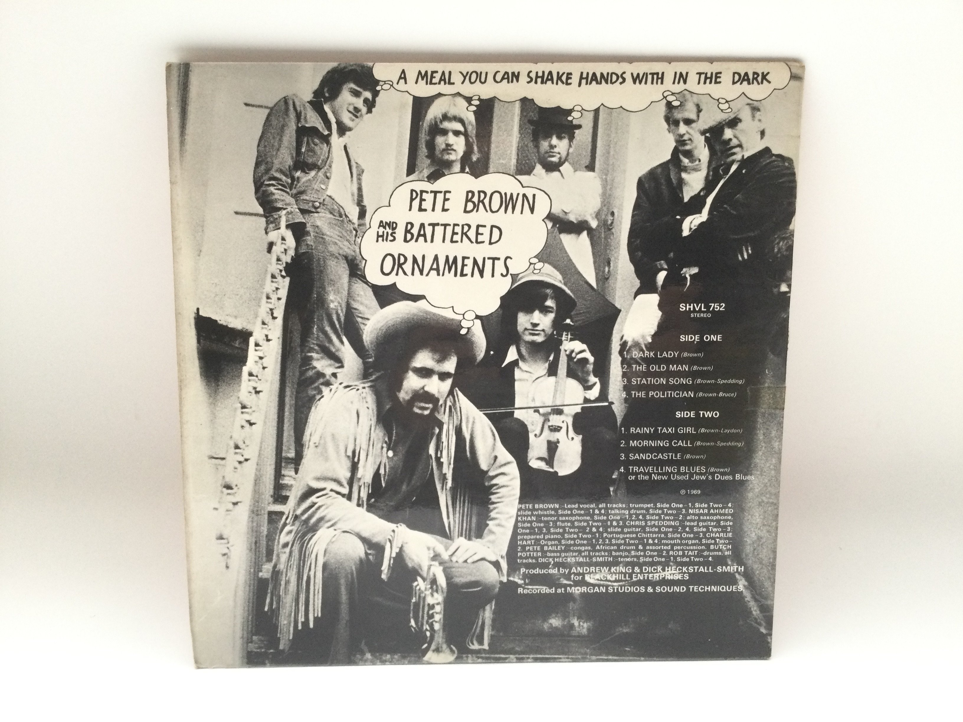 A first UK pressing of 'A Meal You Can Shake Hands With In The Dark' by Pete Brown And His Battered Ornaments. Vinyl Ex.