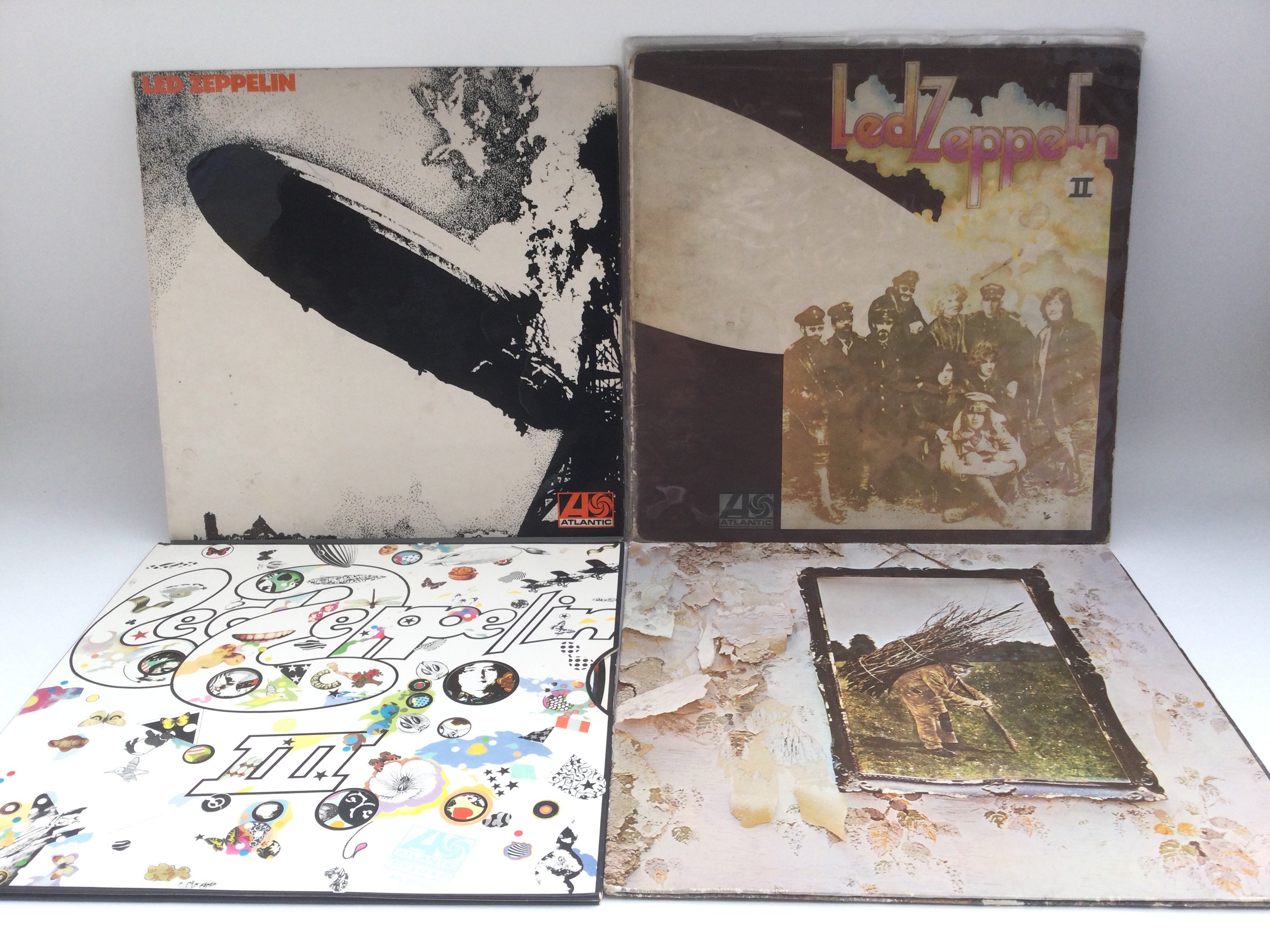 Four Led Zeppelin LPs comprising I and II with red/plum Atlantic labels, III and IV. Includes early UK and German pressings. Some feelable scratches although Led Zep II seems ok.