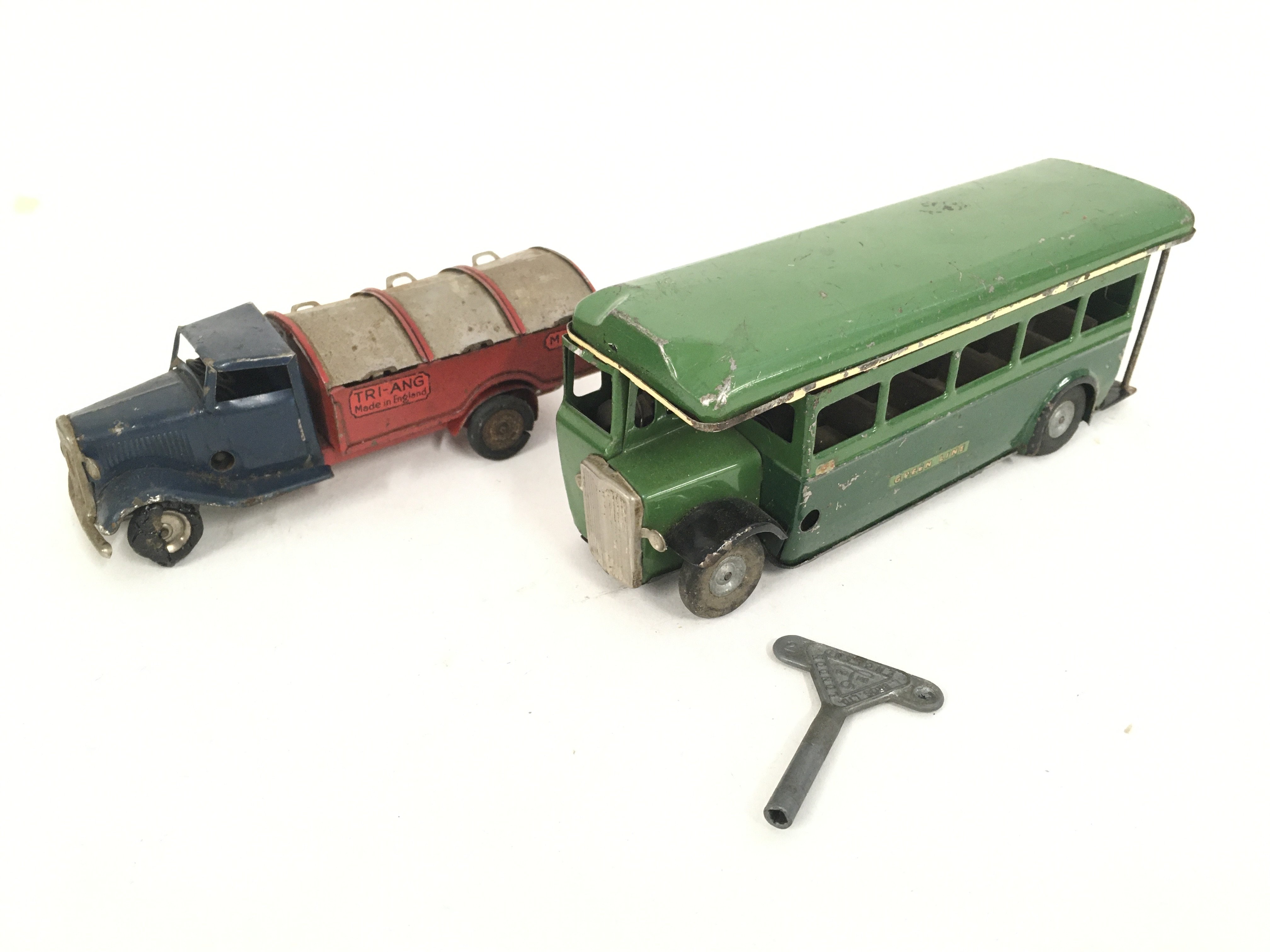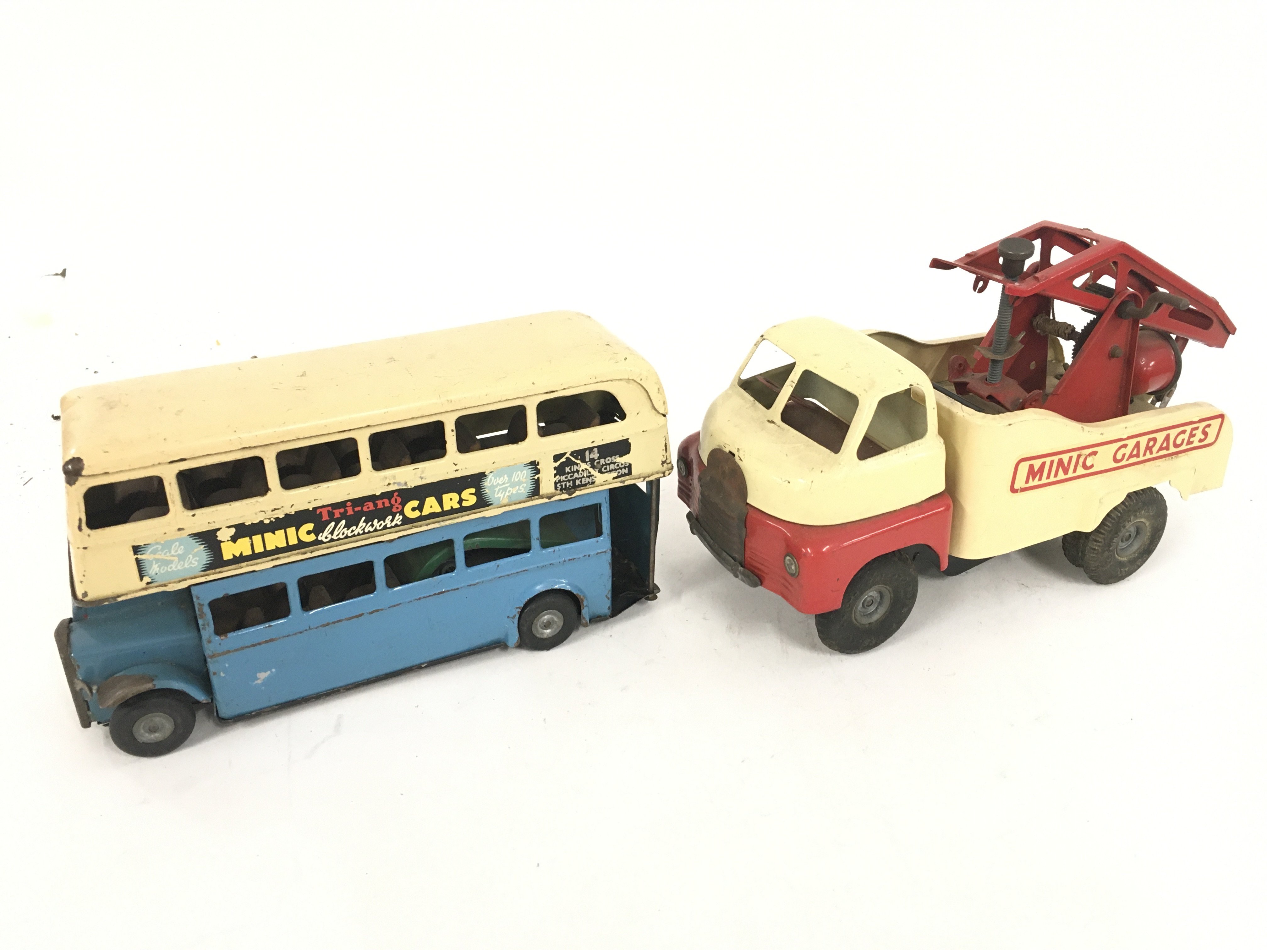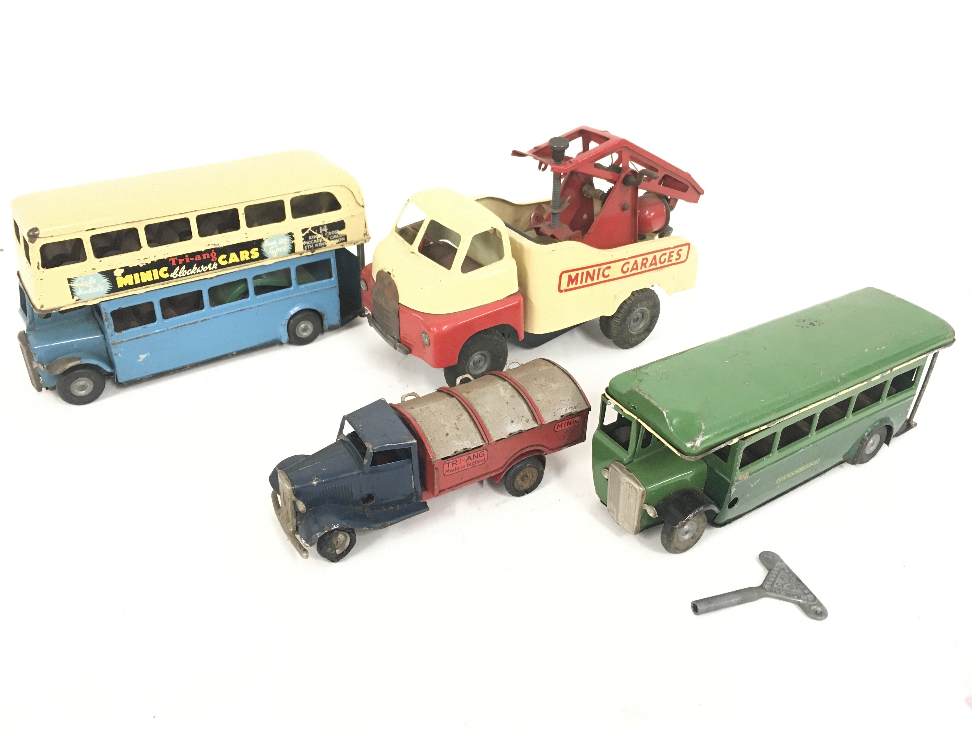 A Collection of Playworn Tri-Ang Minic Tinplate vehicles. 2 are Clockwork. (4).