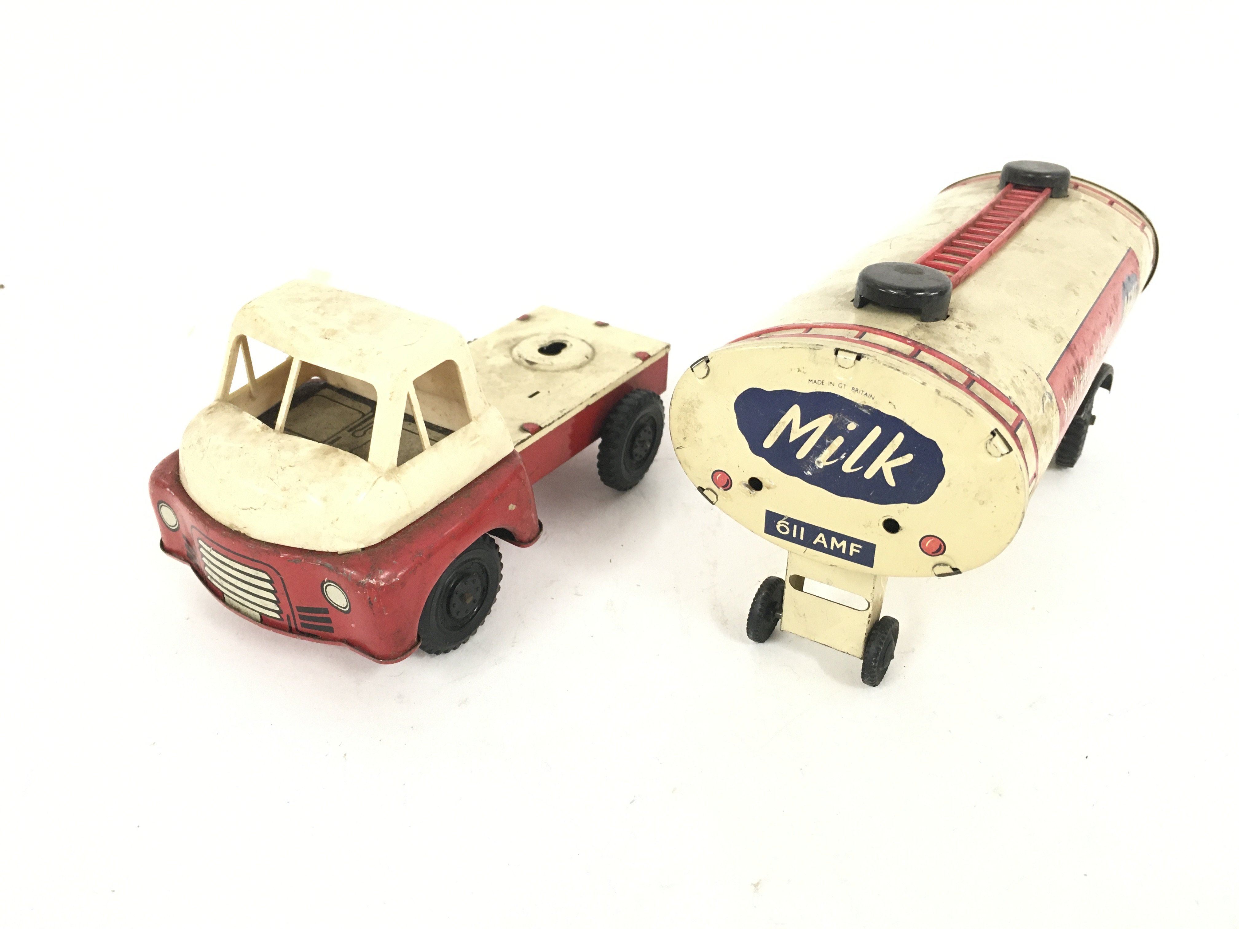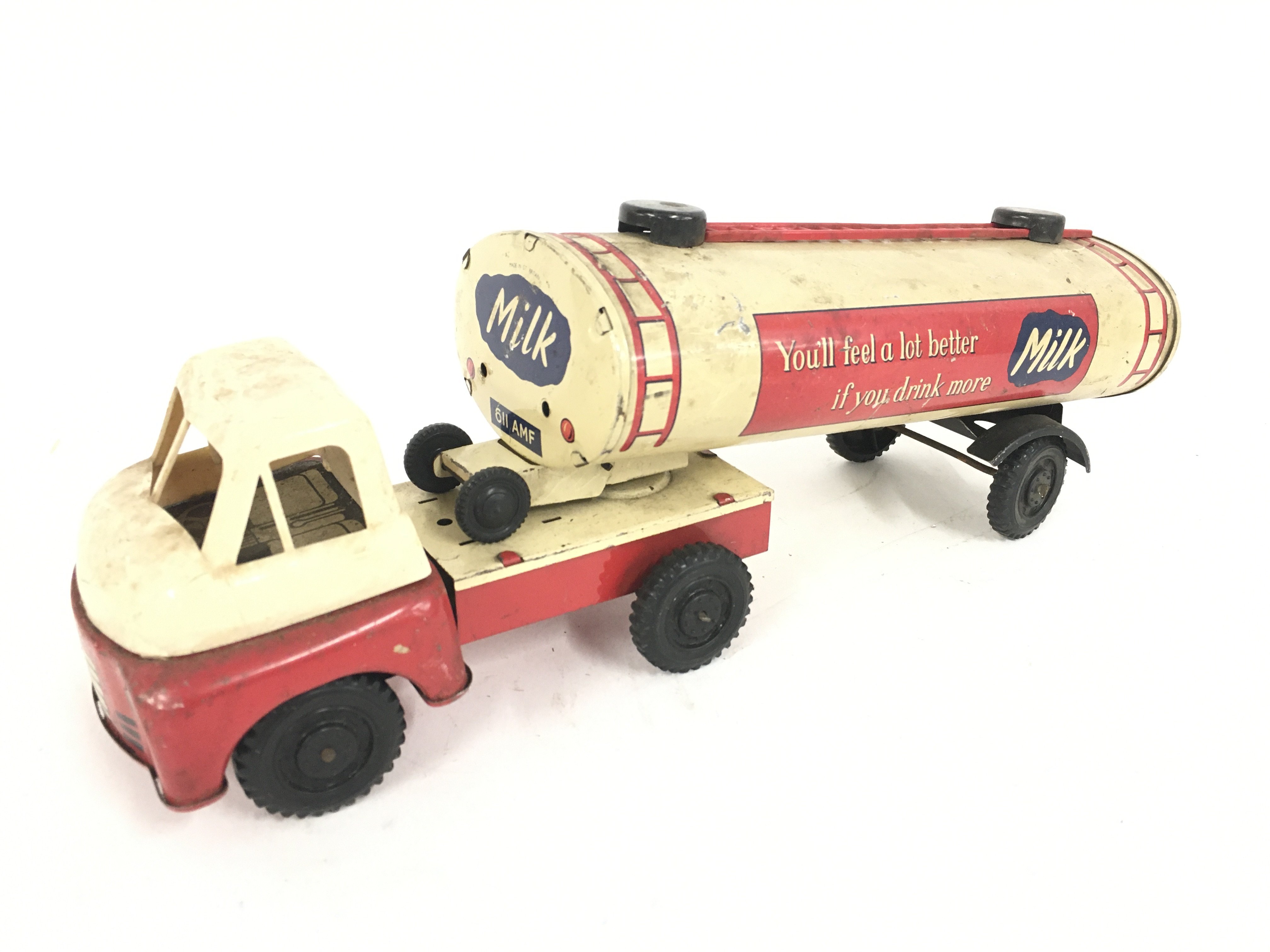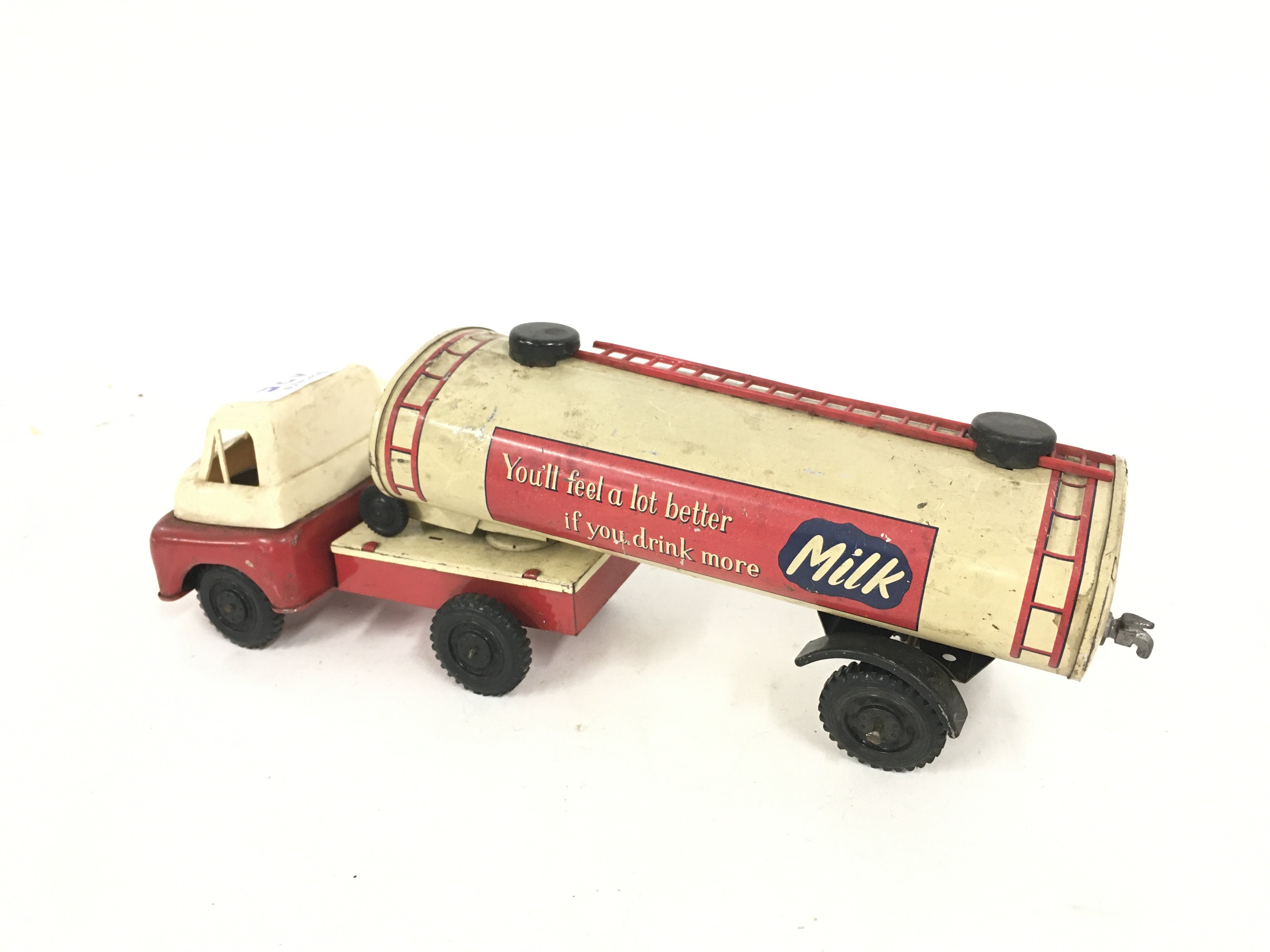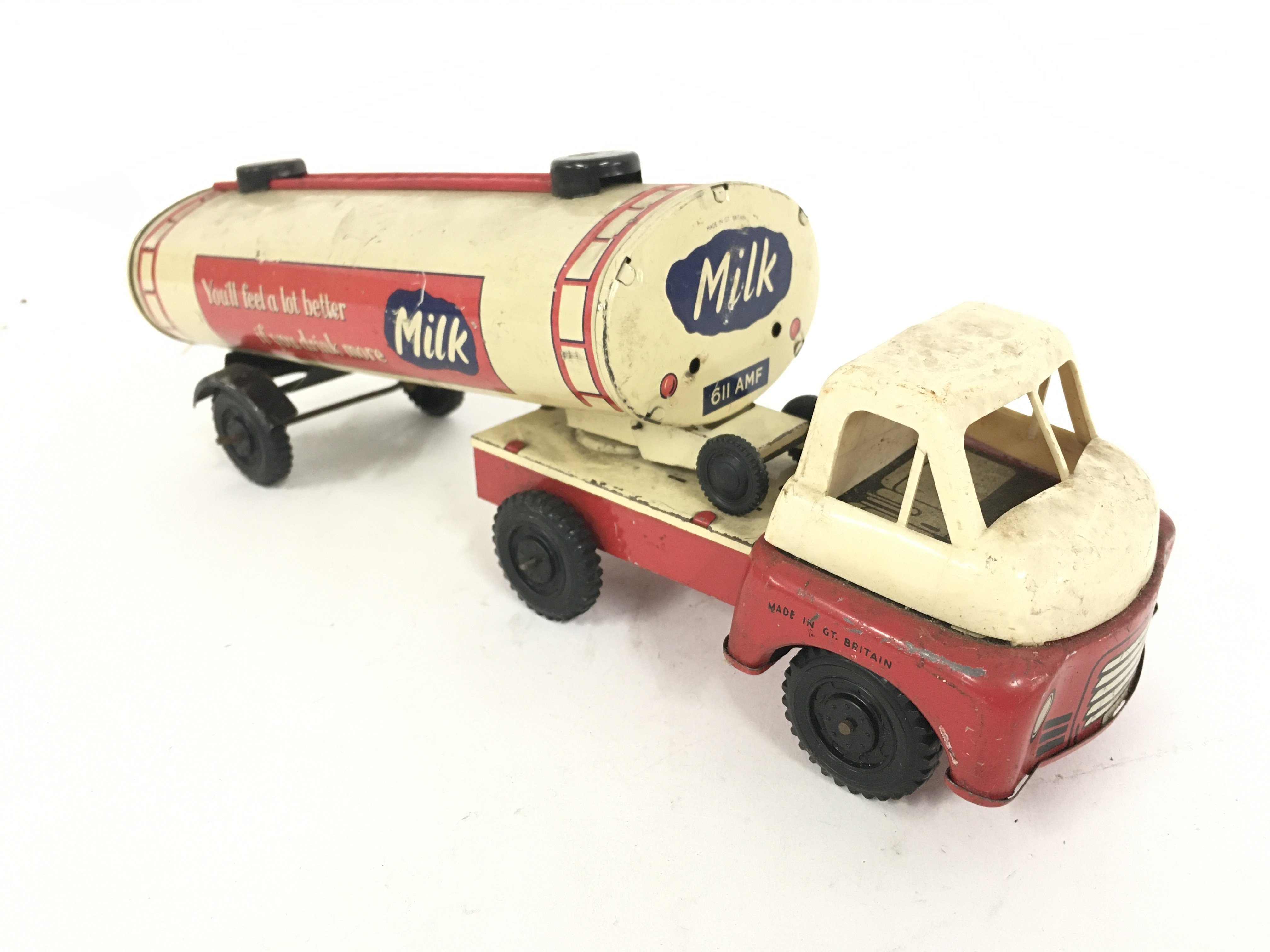A Tinplate Wells Brimtoy Milk Tanker. friction Powered.