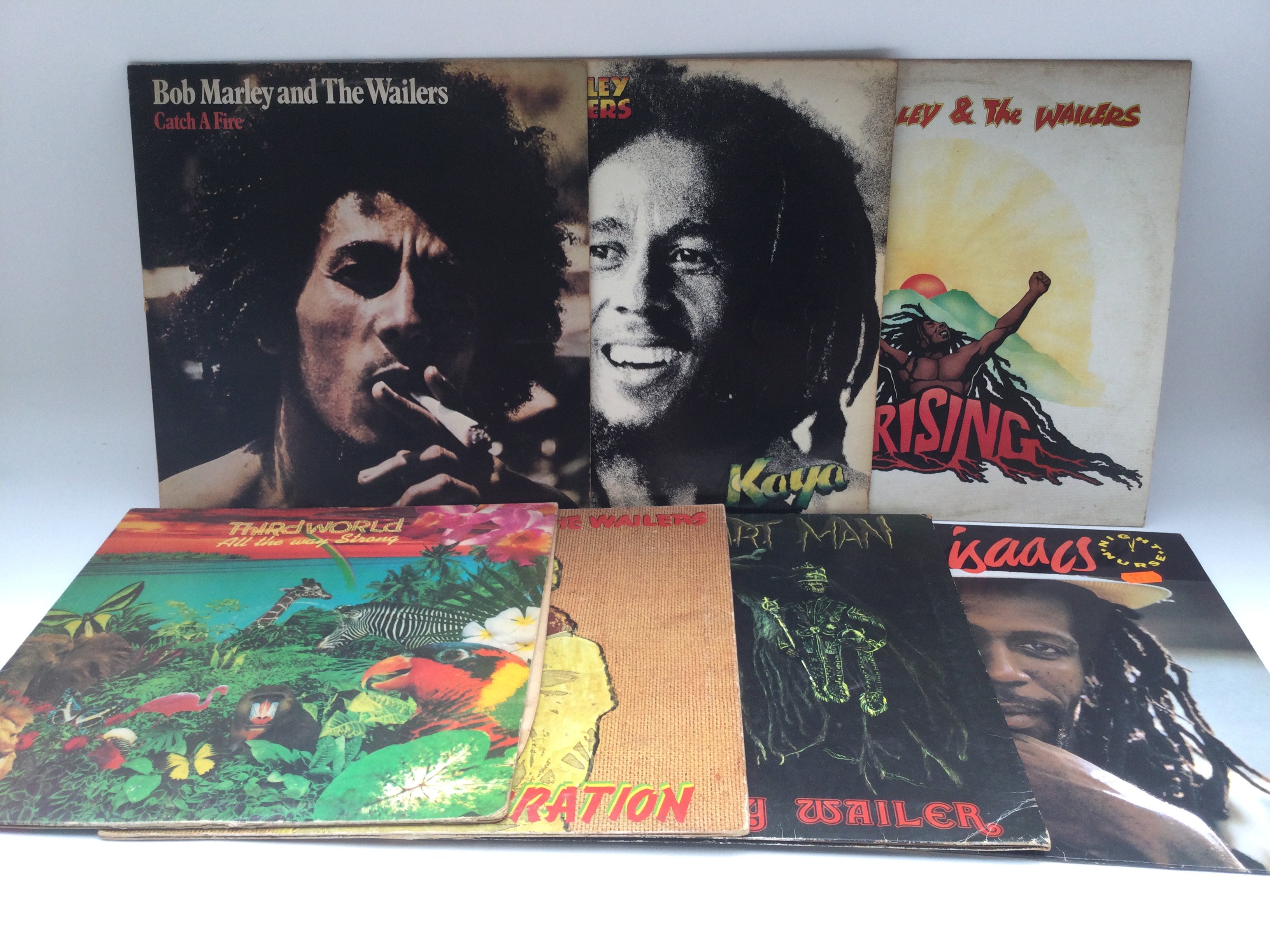 Twelve reggae LPs by various artists including Bob Marley, Gregory Isaacs, Burning Spear and others.