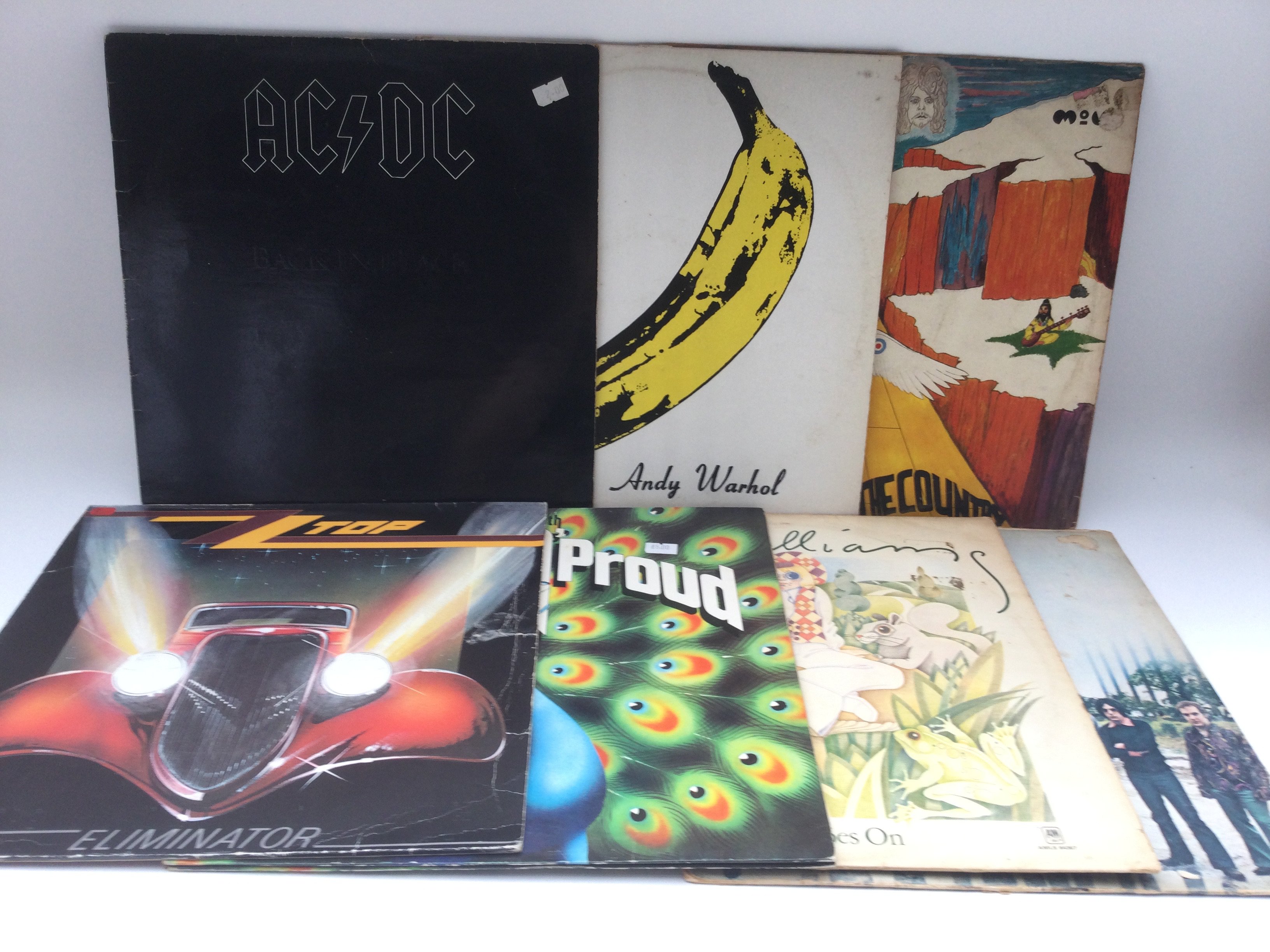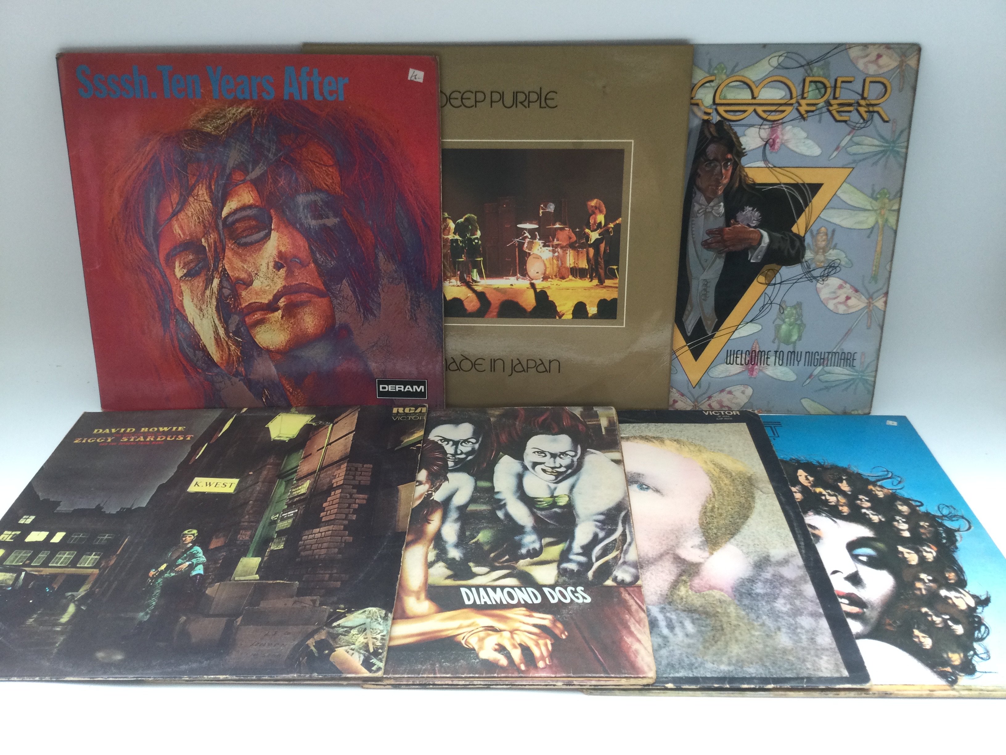 Fourteen rock LPs by various artists including Ten Years After, David Bowie, AC/DC, Deep Purple and others.