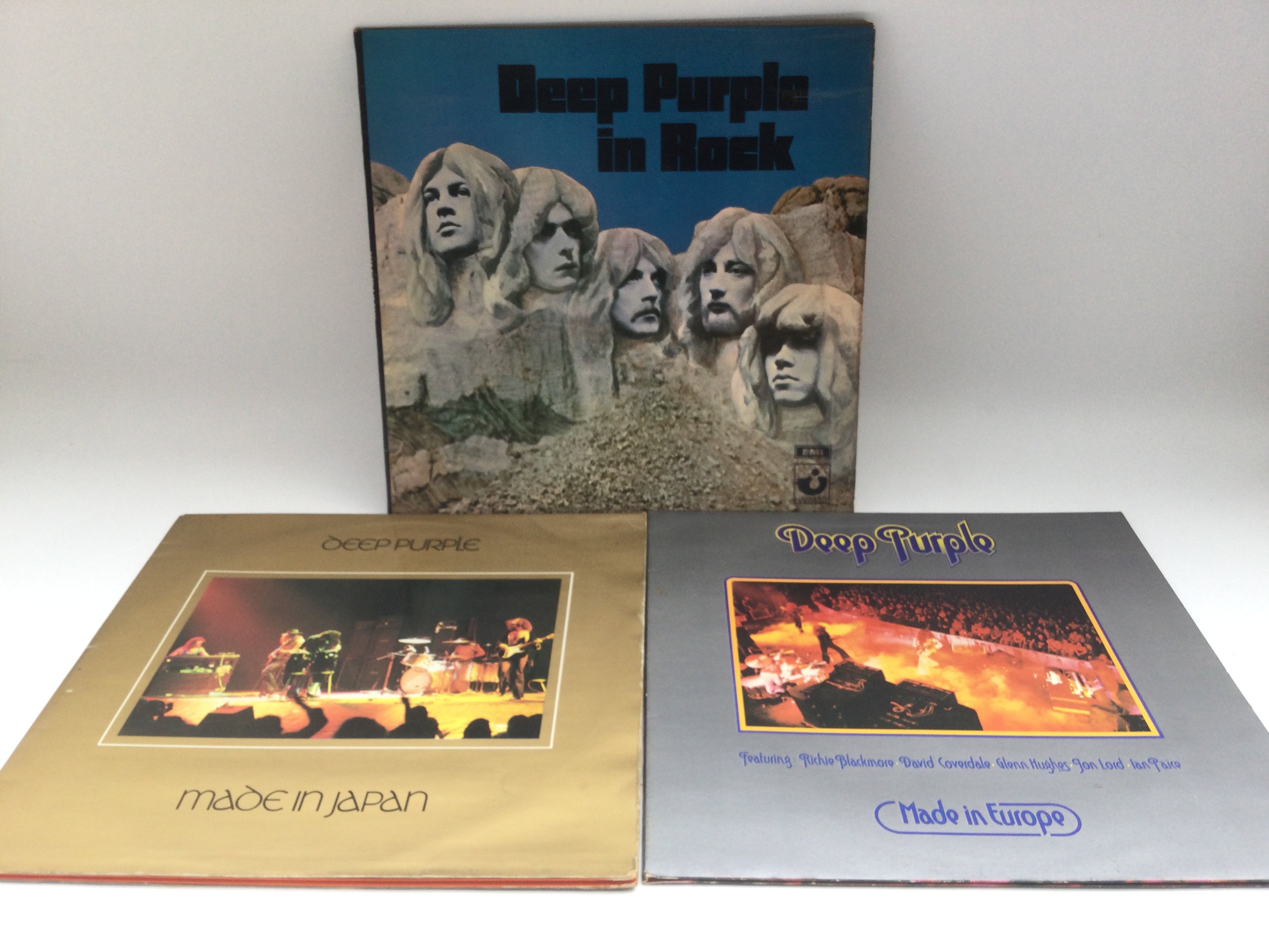 Three early UK pressings of Deep Purple LPs comprising 'Made In Japan', 'In Rock' and 'Made In Europe'.