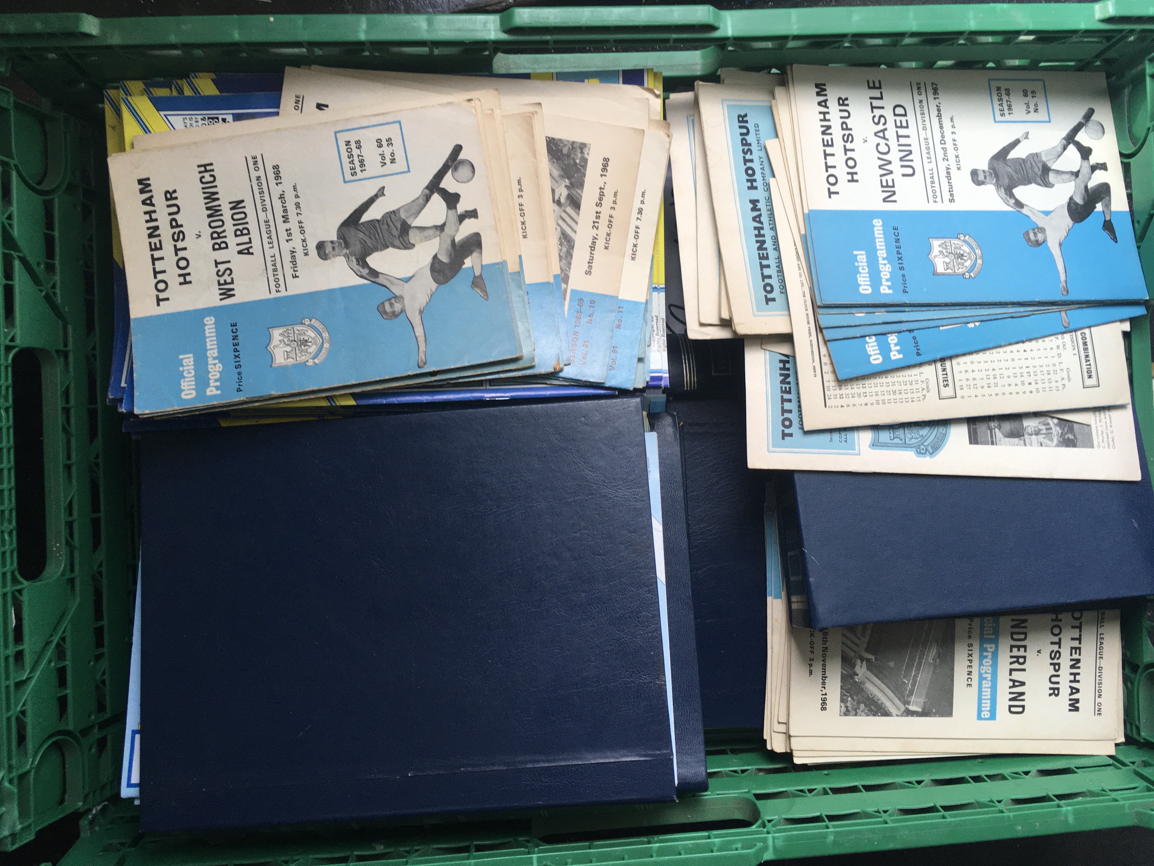 Tottenham Home Football Programmes: Include 5 sets from the 80s binders and a quantity from the 60s onwards in good condition. Instructions to sell. (1 box)