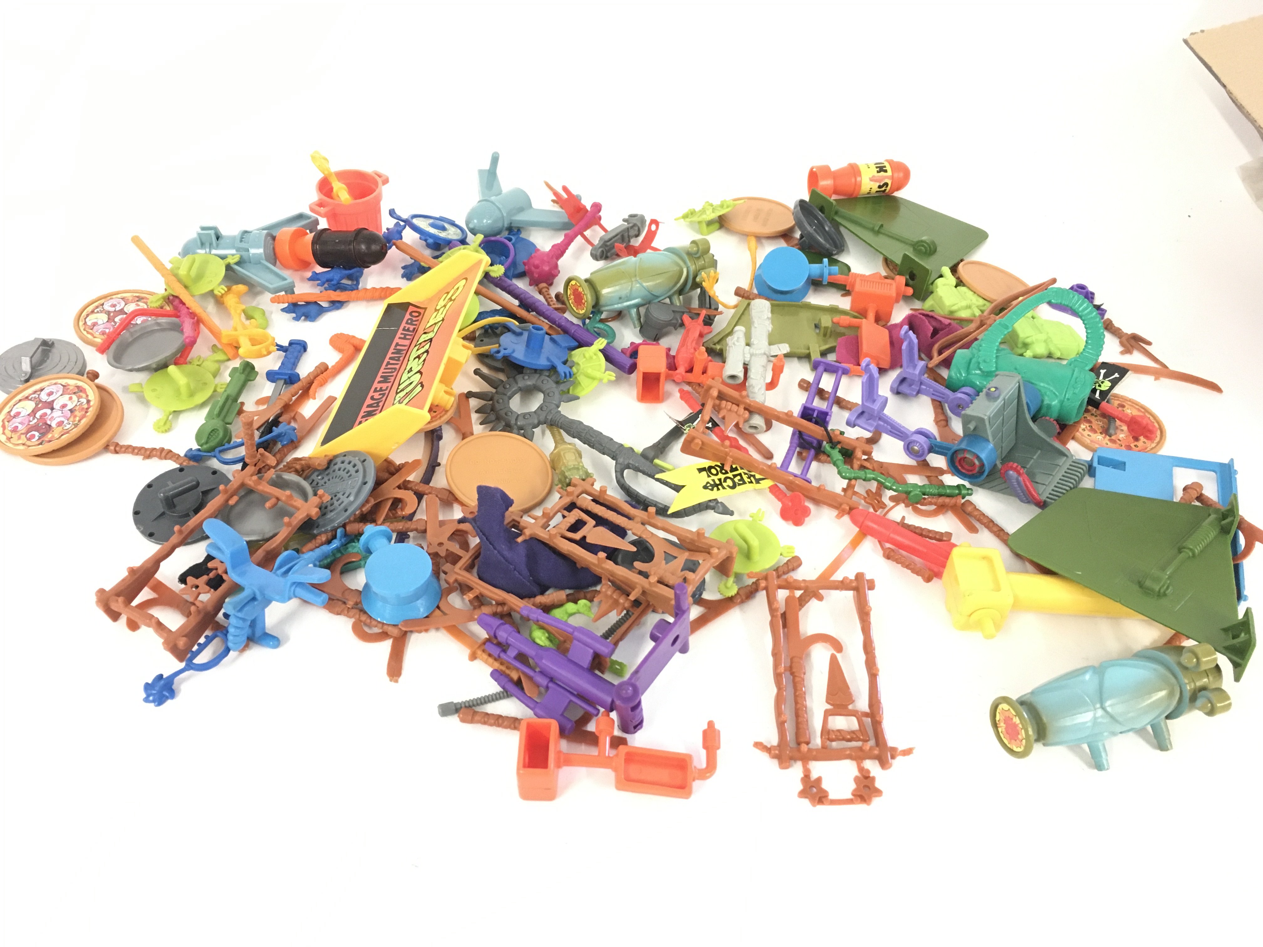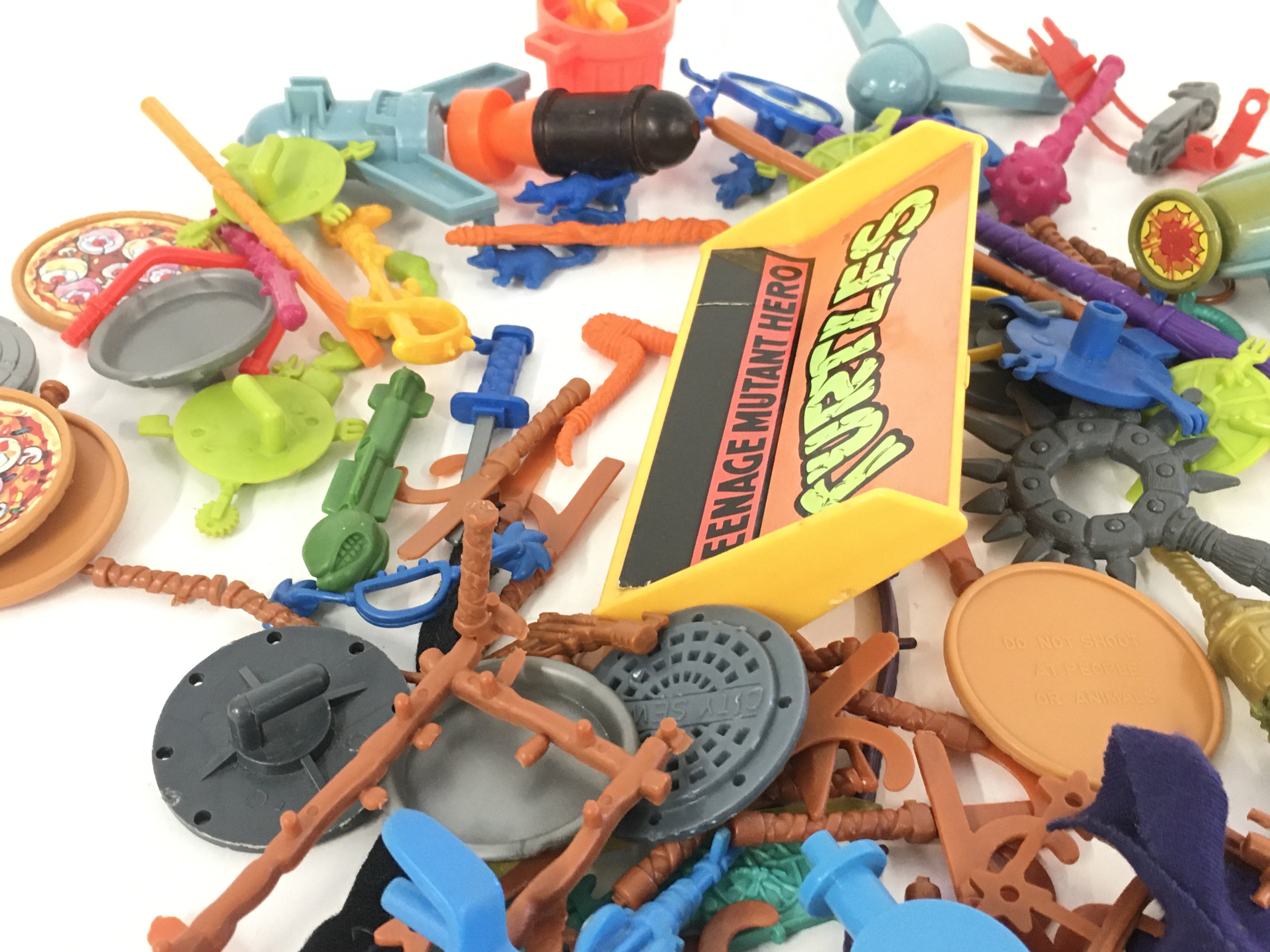 An assorted collection of accessories for Teenage Mutant Ninja Turtles.