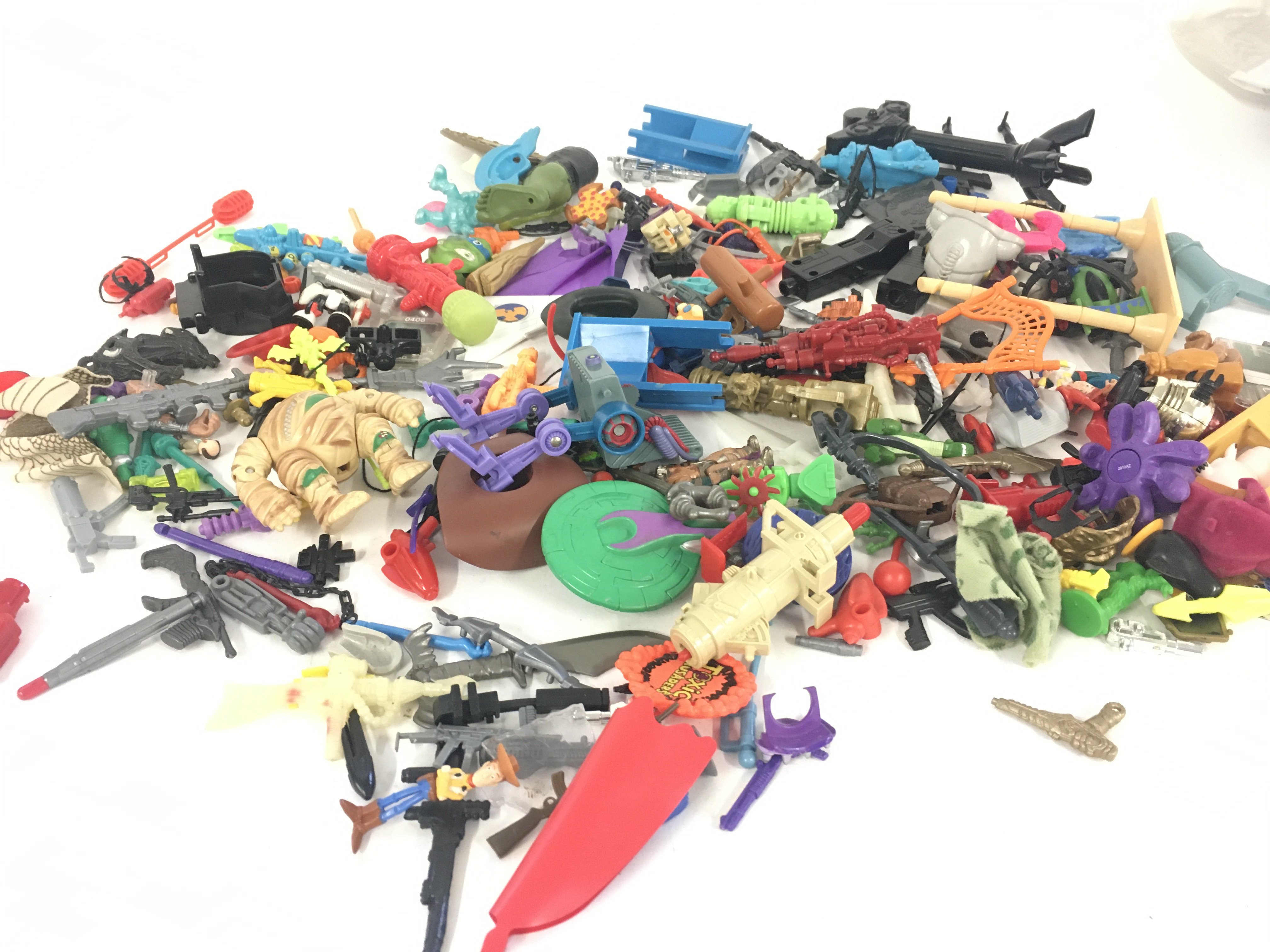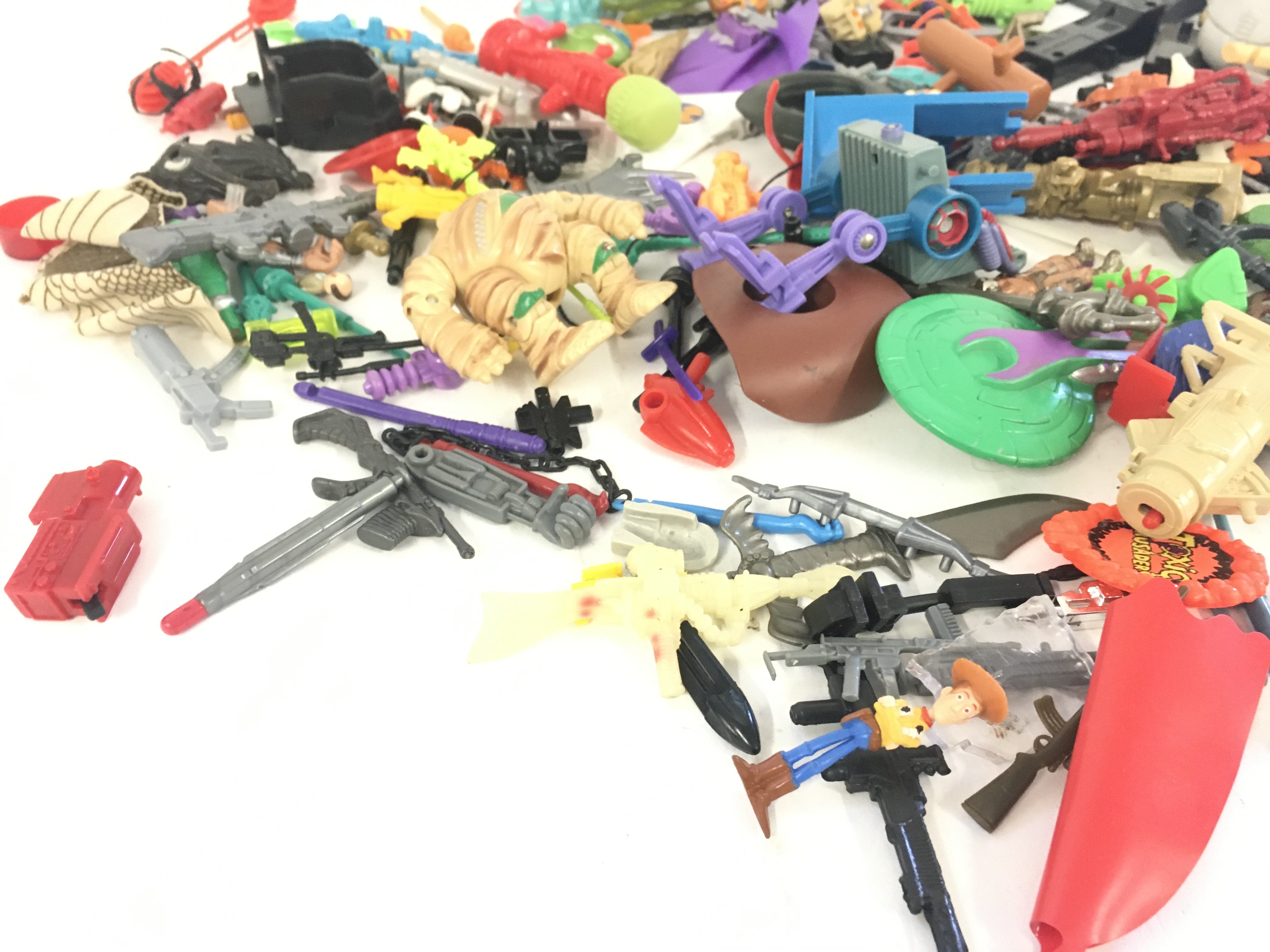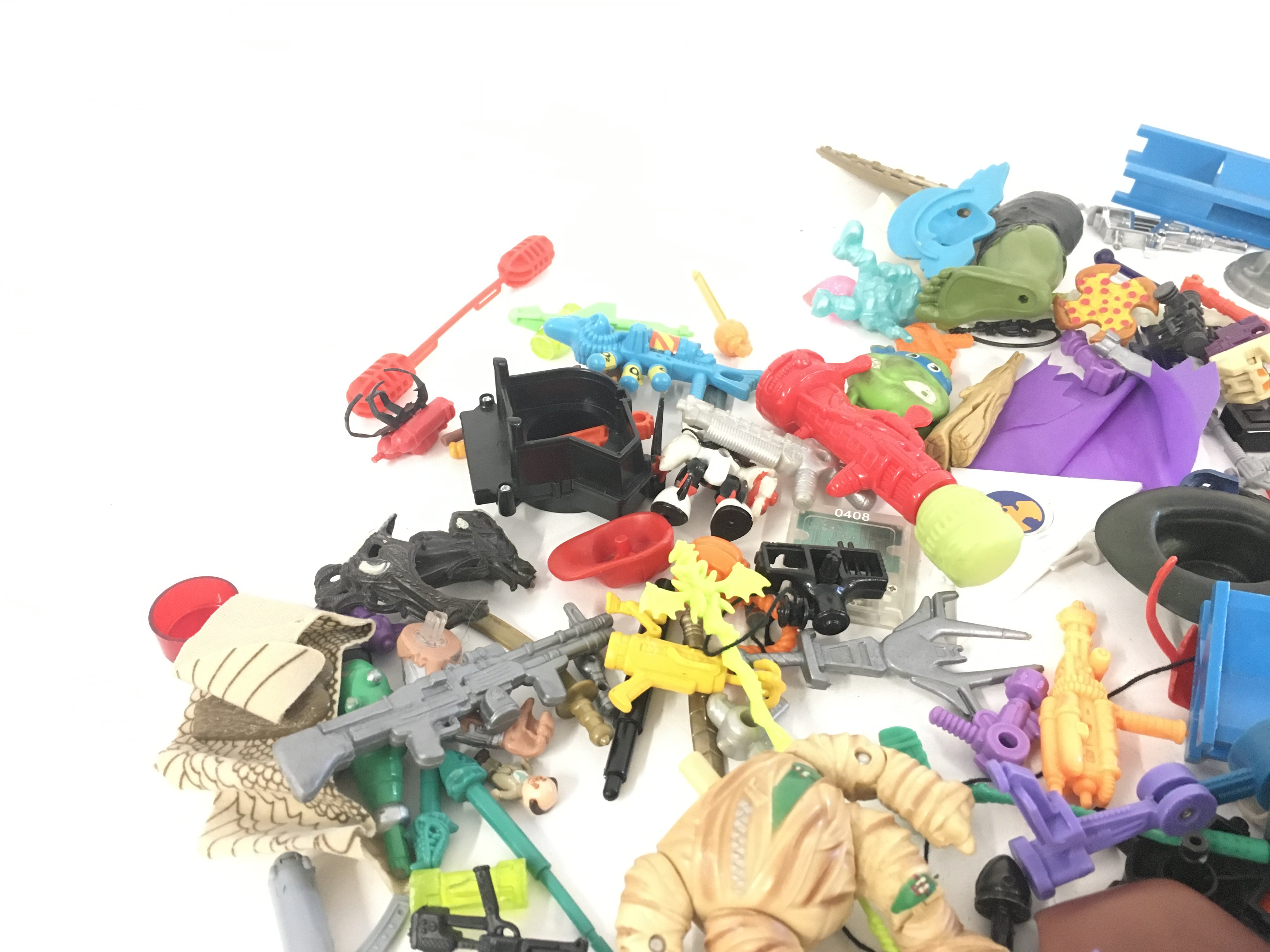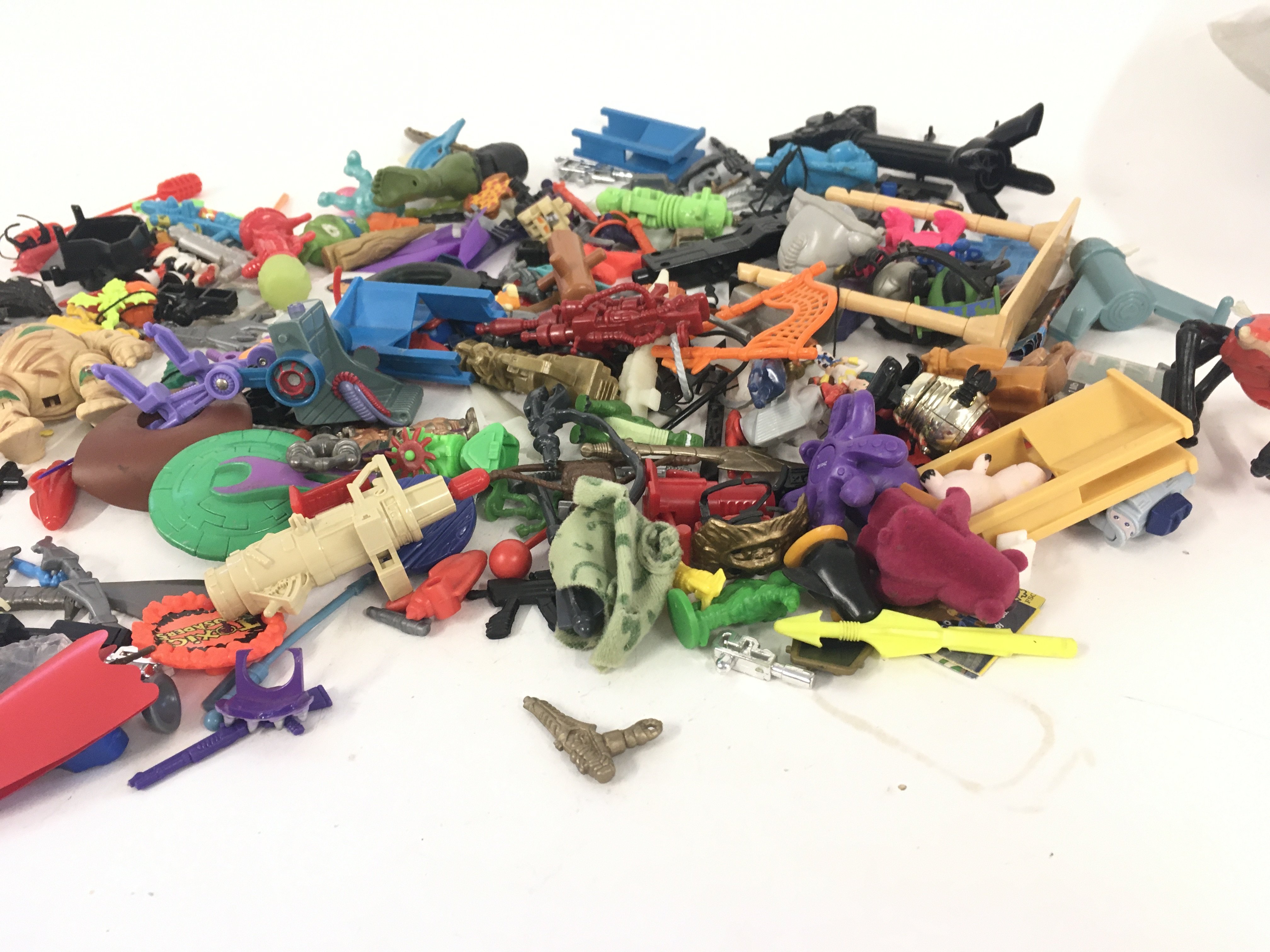 An assorted collection in excess of 100 pieces of parts and accessories from various toy lines in the 1980s and 1990s