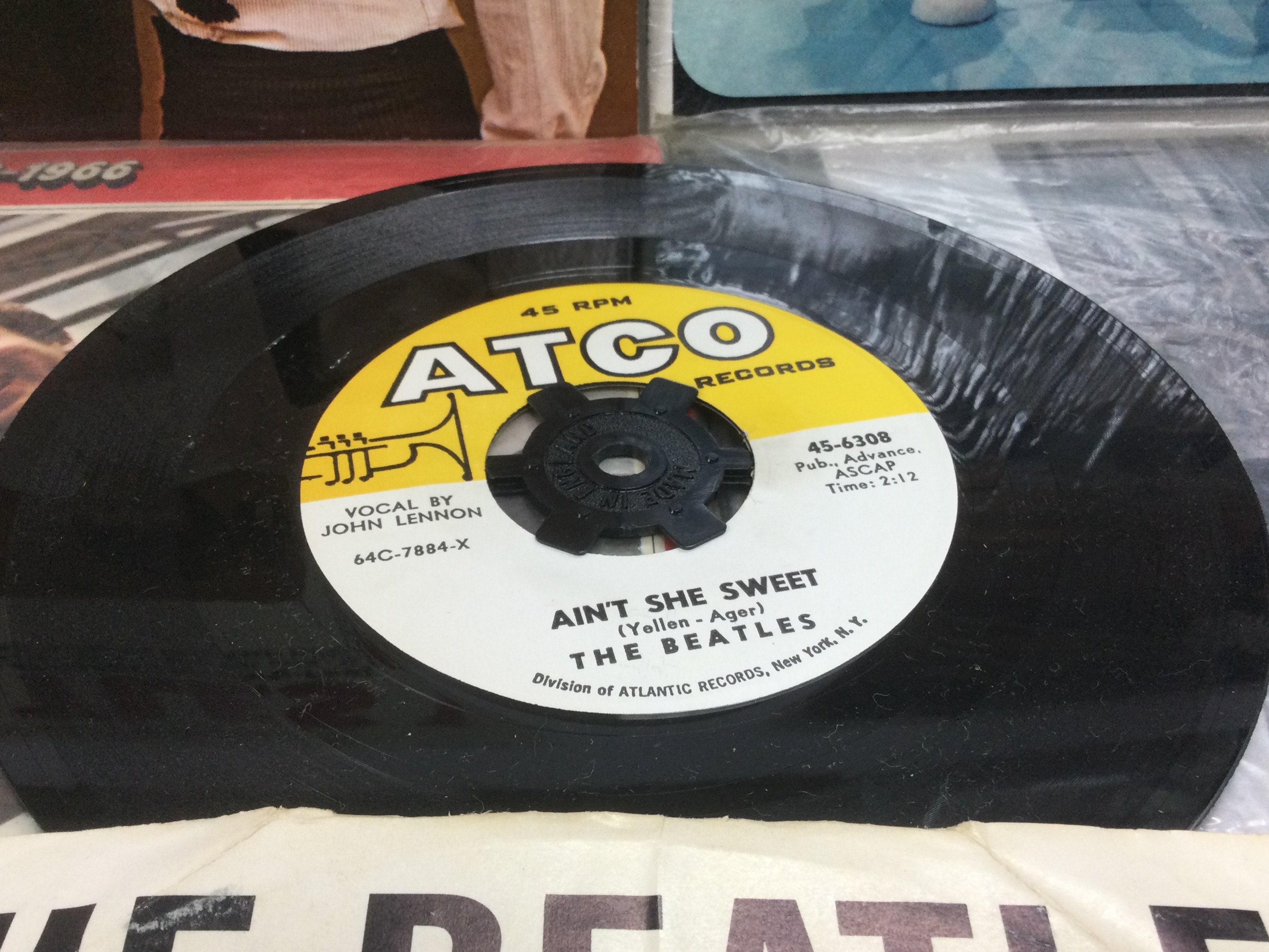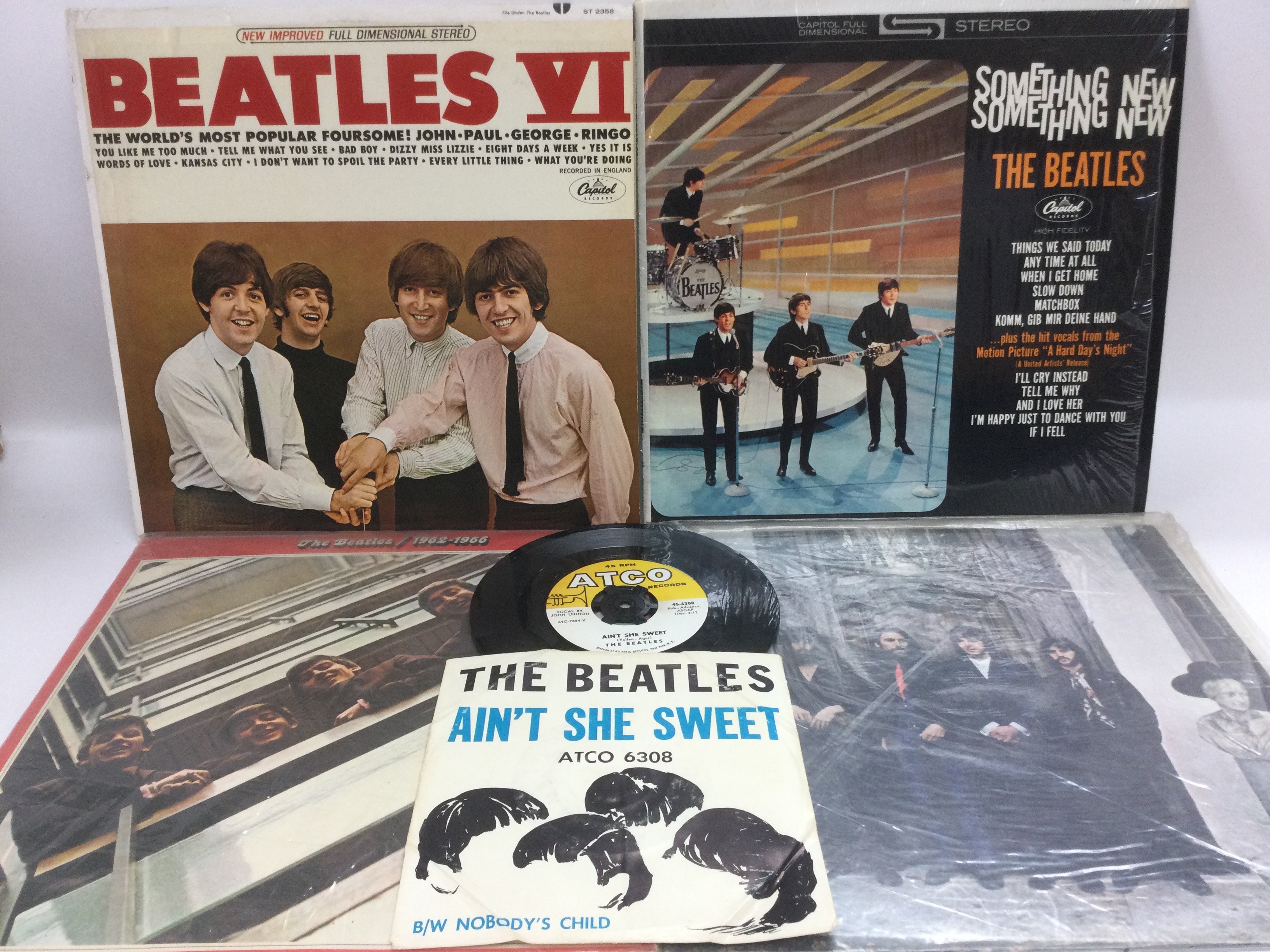 Four Beatles LPs including two US pressings of 'Beatles VI' and 'Something News' plus a 7" singles of 'Ain't She Sweet' b/w 'Nobody's Child' (5).