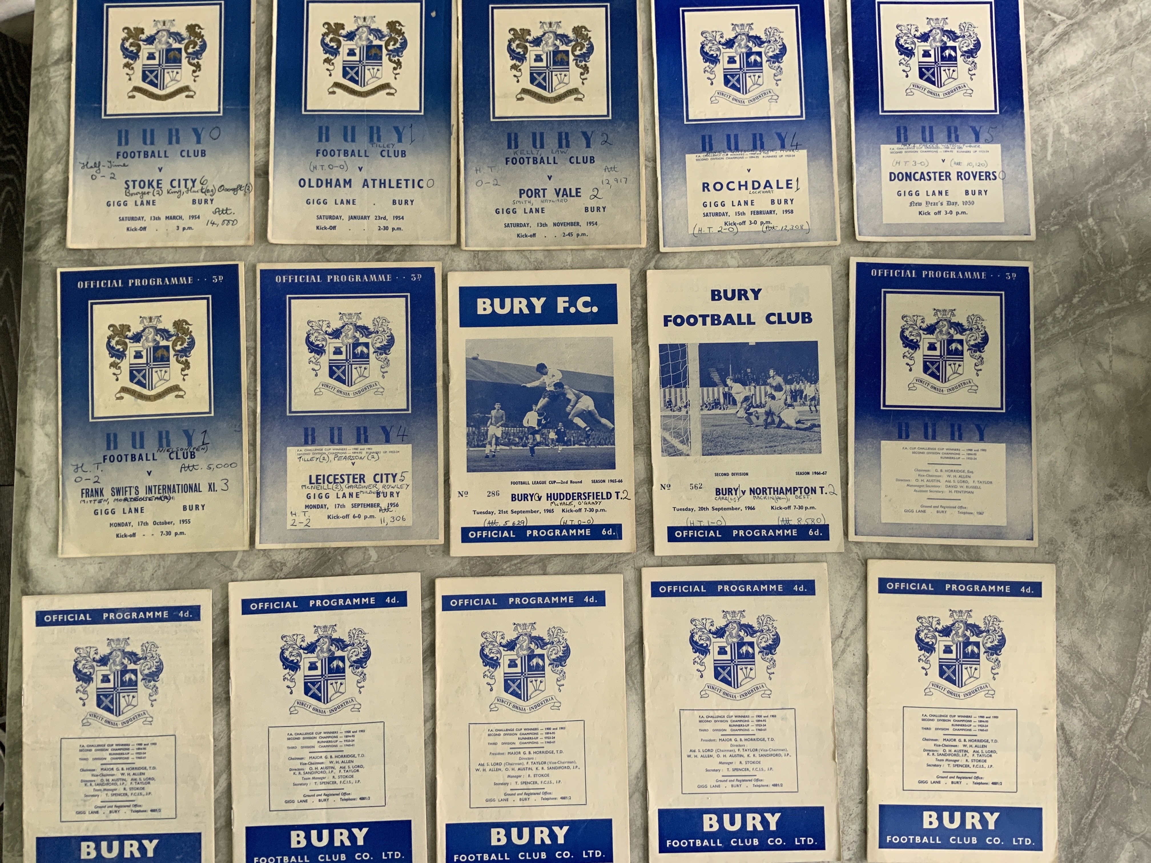 Bury Home Football Programmes: 8 from the 50s which have writing to cover and 7 from the 60s with 2 having the same fault. Instructions to sell. (15)