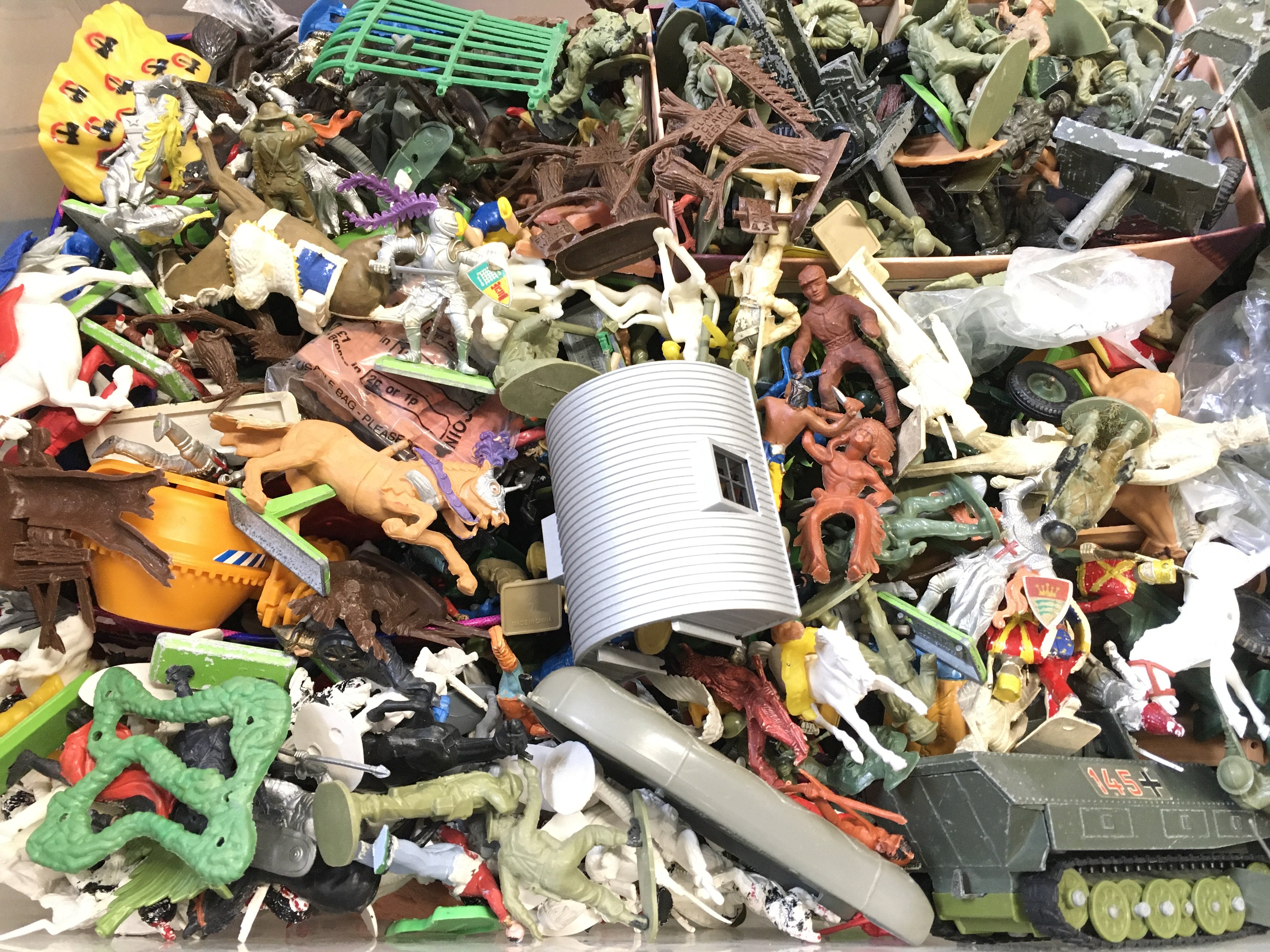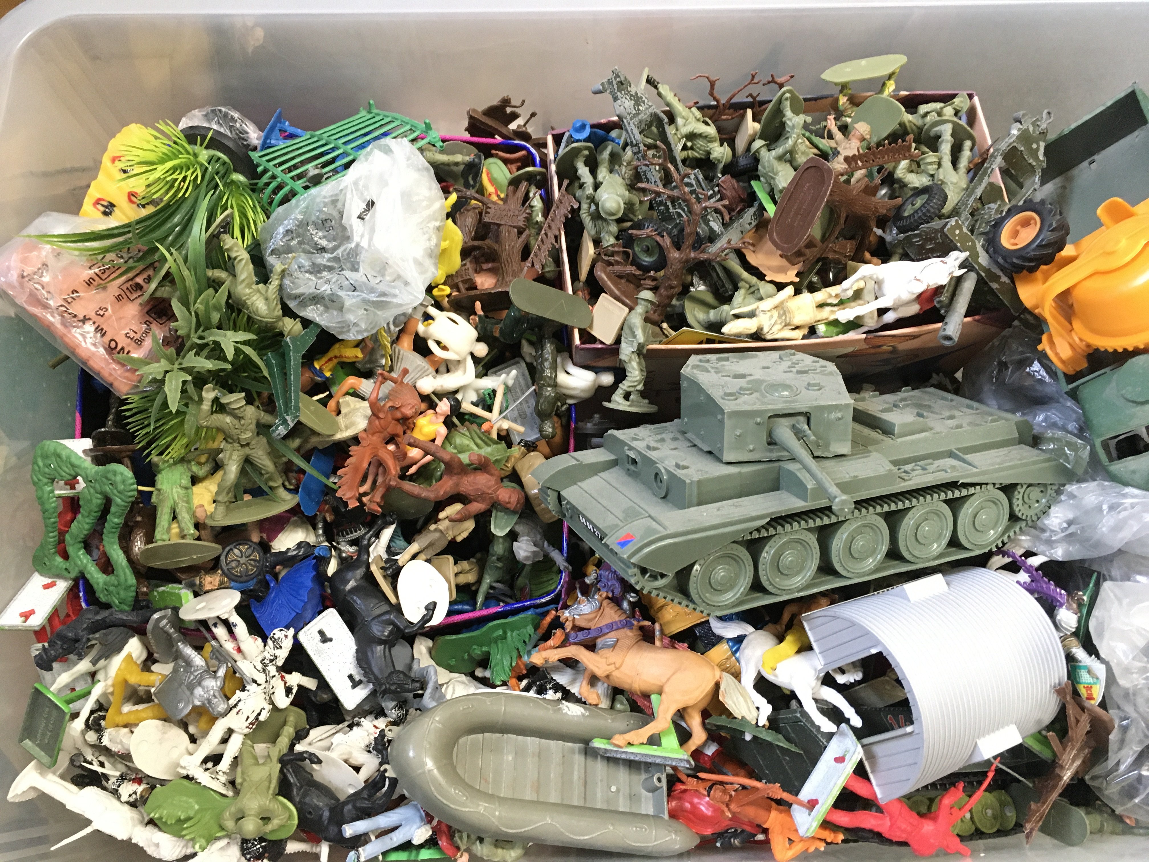 A Box Containing plastic toy Soldiers including Britains.