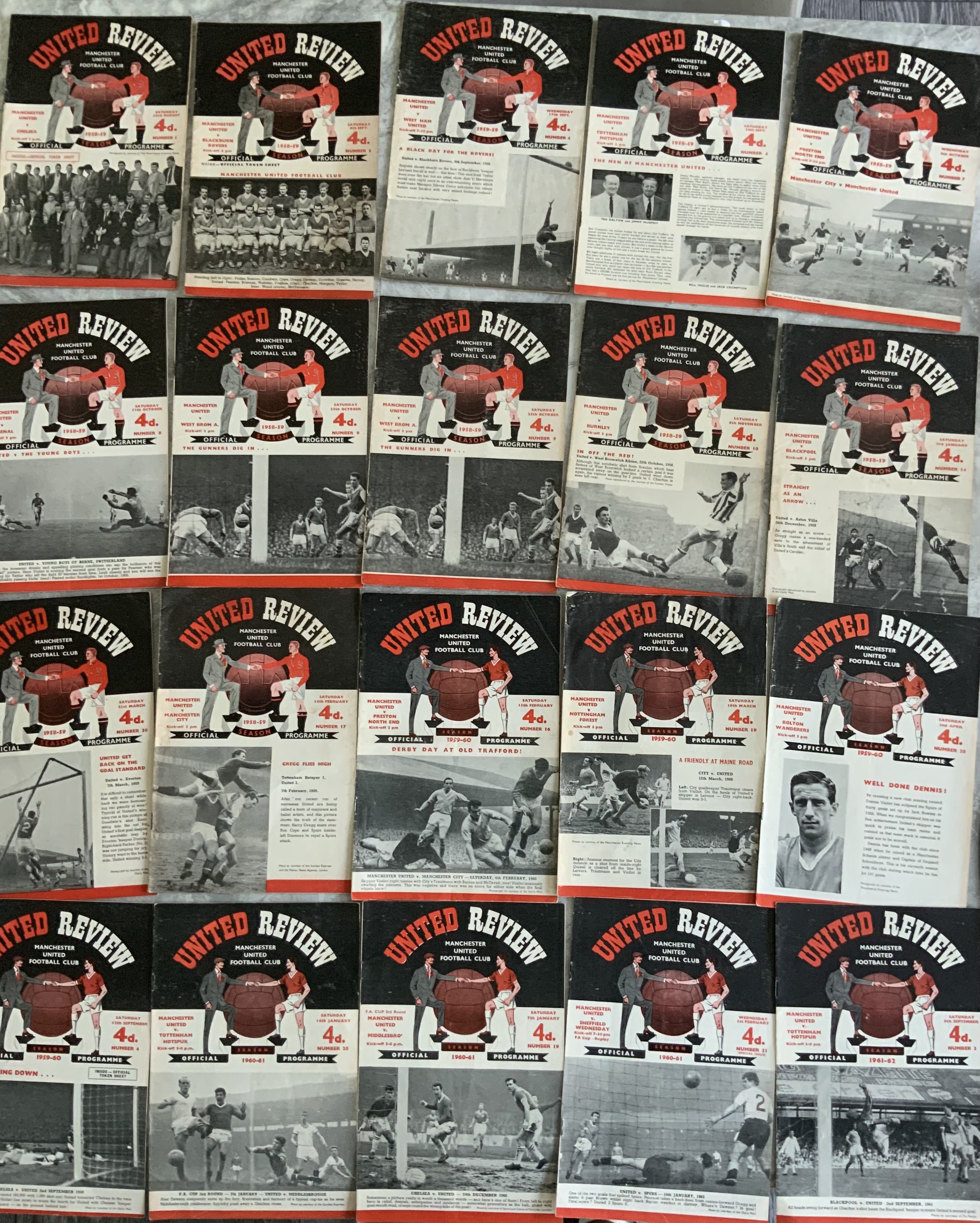 Manchester United Late 1950s Home Football Programmes: 58/59 x 12 with one duplicate, 59/60 x 4, 60/61 x 3 including Tottenham. Very good. (20)