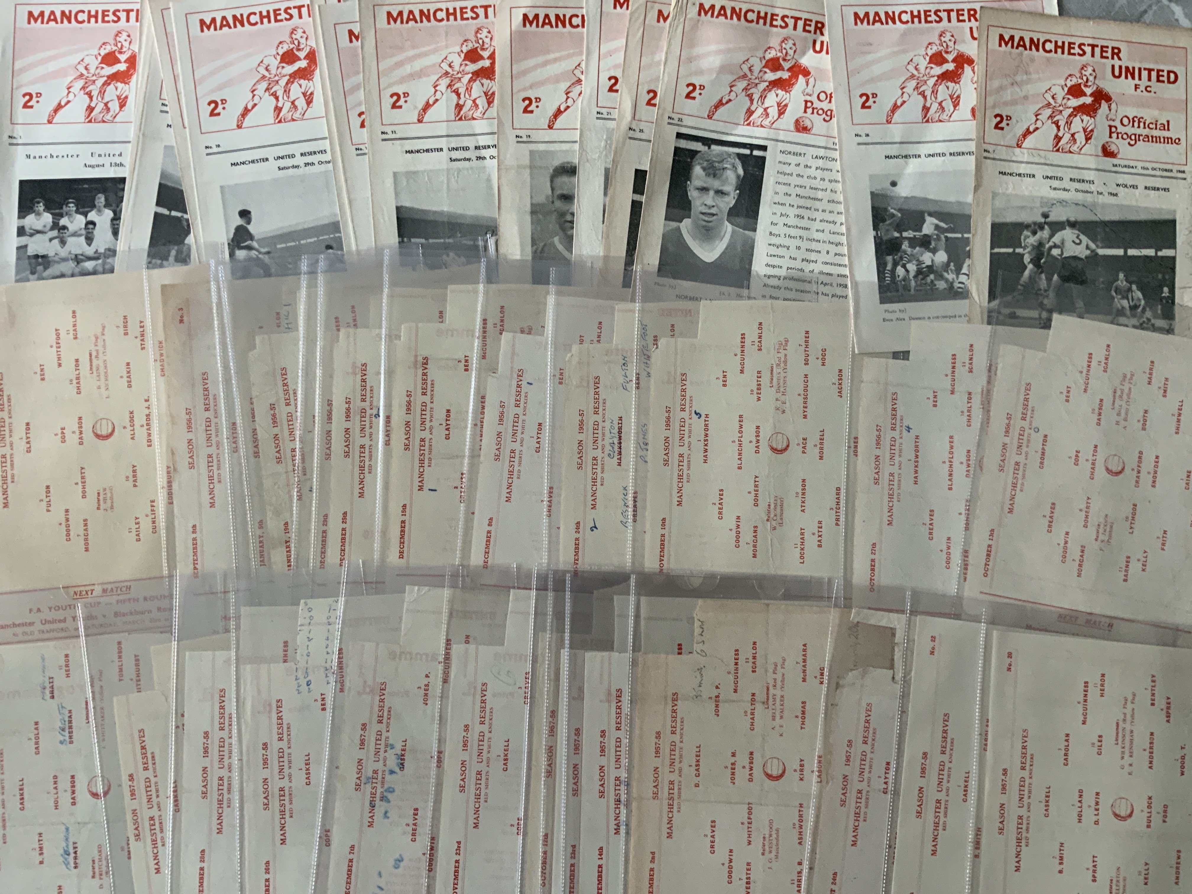 Manchester United Home Reserve Football Programmes: 56/57 x 12 with 2 being unwritten with tokens intact. 57/58 x 13 with 2 also being unwritten with tokens intact. 60/61 x 17 with 6 having tokens intact. Good. (42)