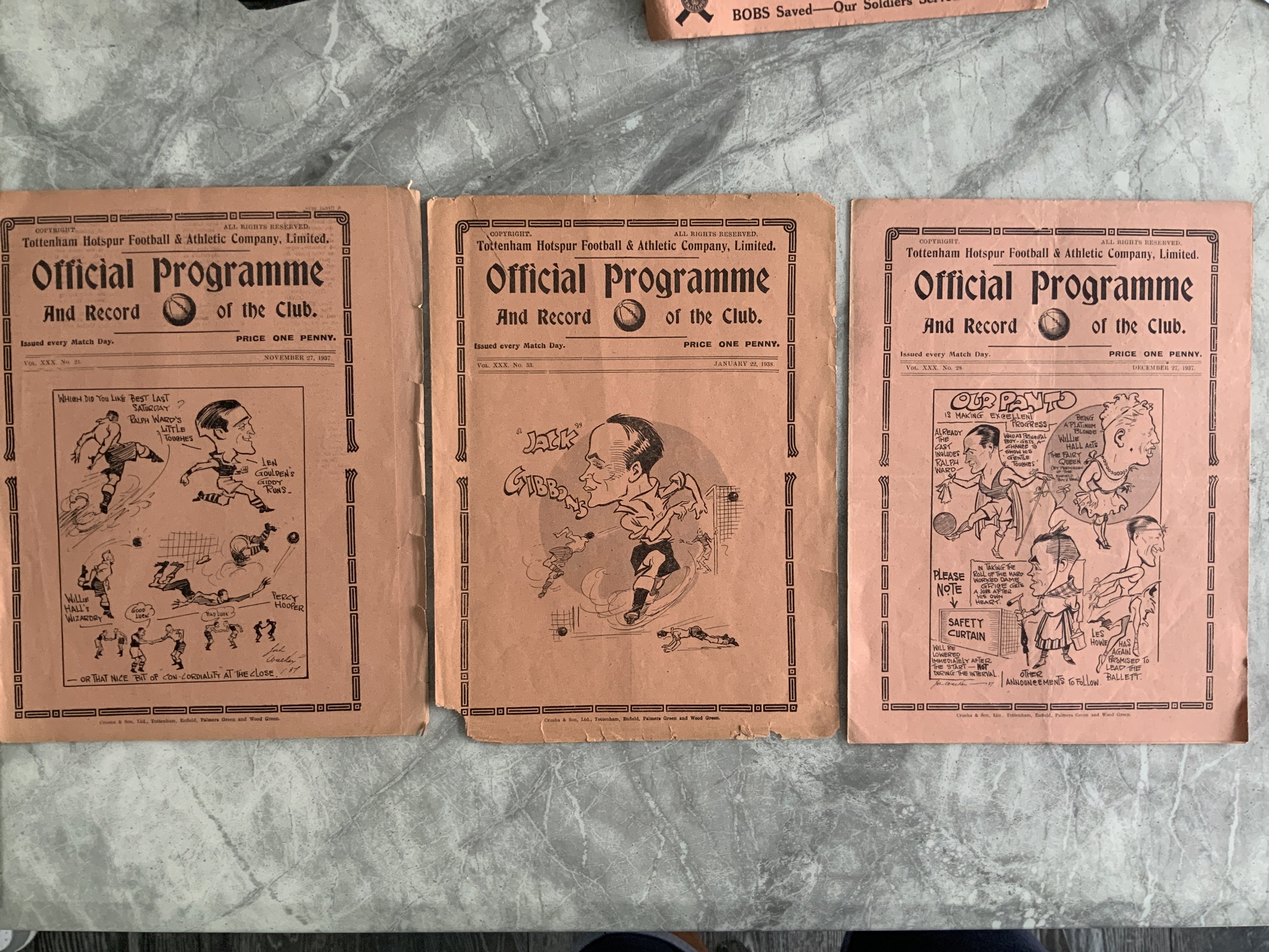 37/38 Tottenham Home Football Programmes: Division 2 match v Bury plus reserves v Northampton (corner paper loss) and Crystal Palace. Very good with no writing unless stated. (3)