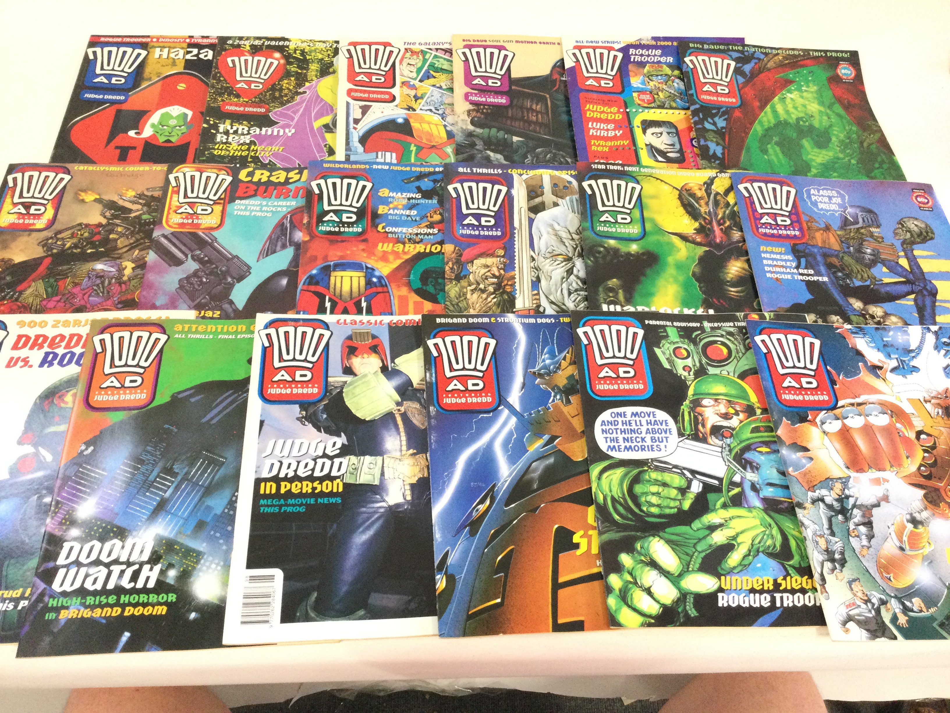 A box containing approximately 200 comics. All 2000AD issues from various decades.