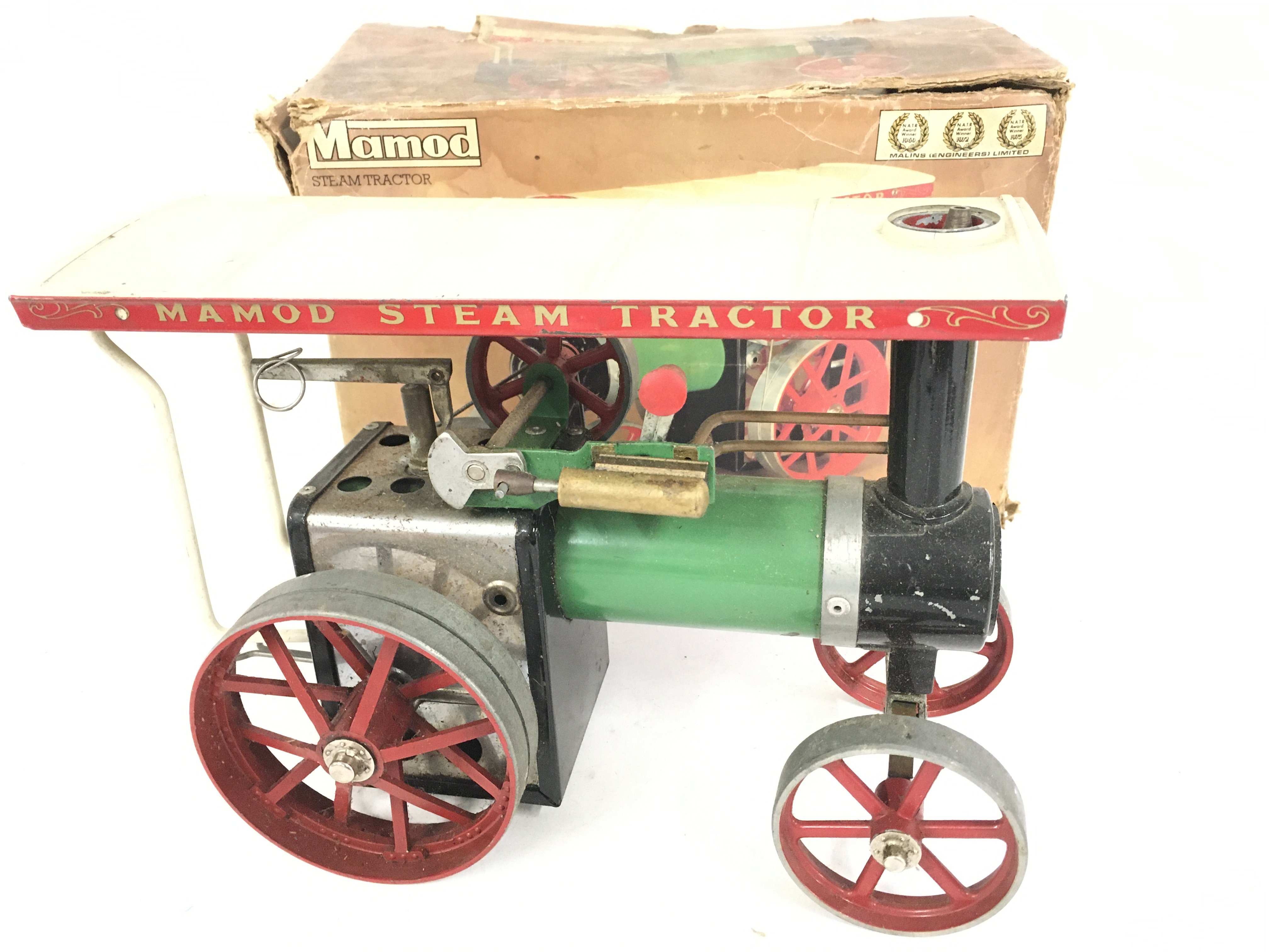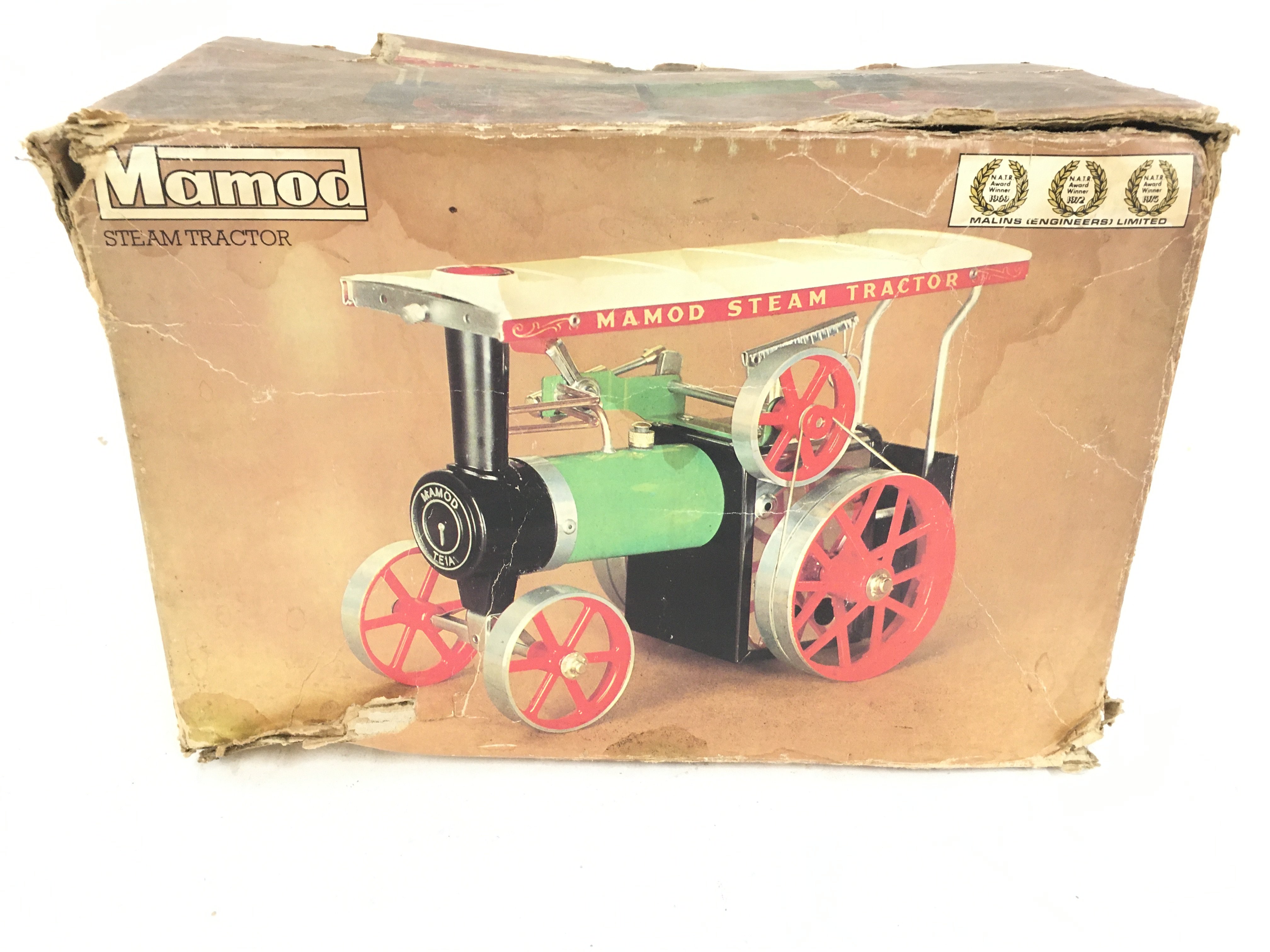 A Boxed Mamod Steam Tractor. Parts Missing and Box is Worn.