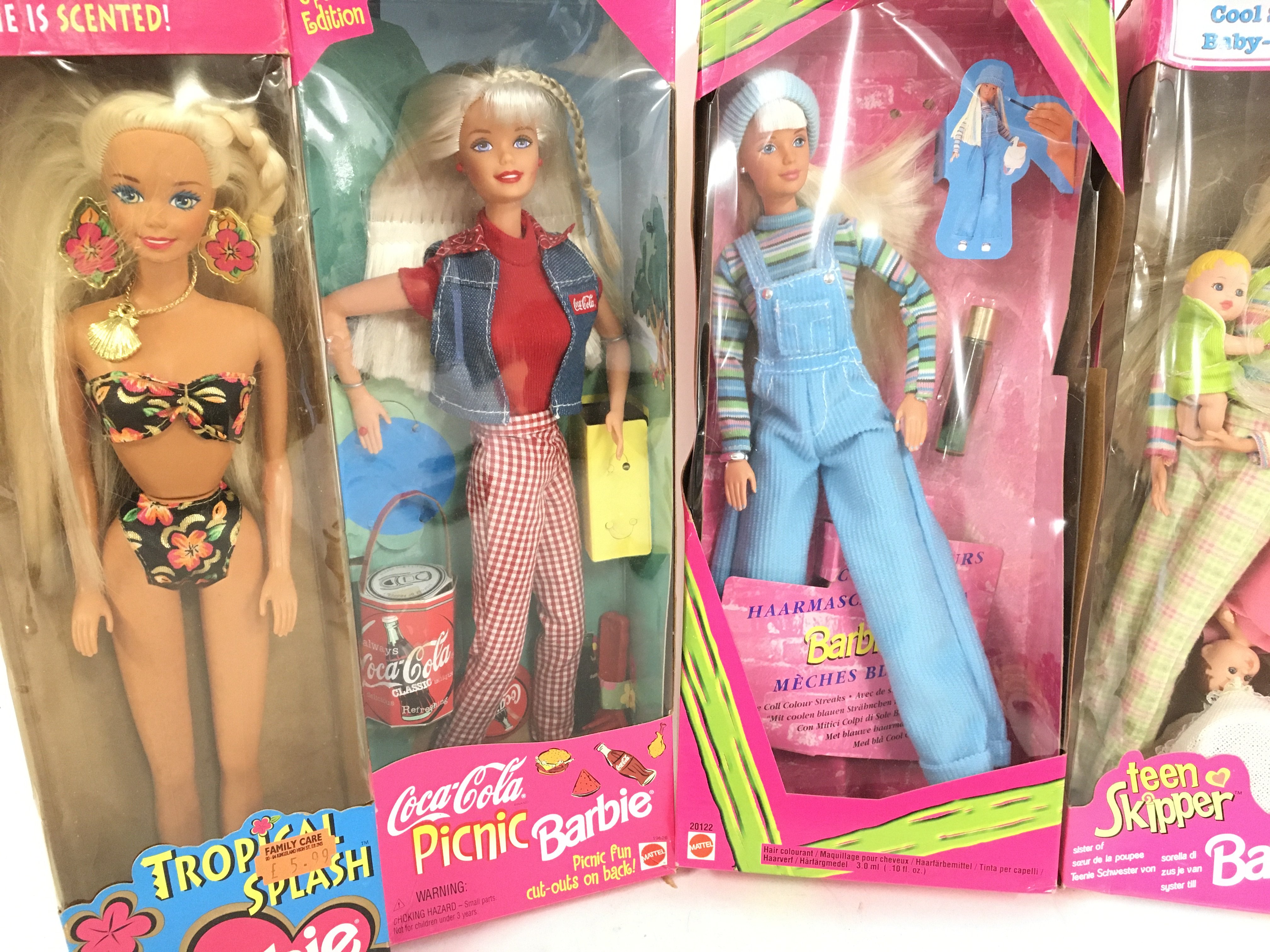A Collection of boxed Barbies. Boxes in Various States. No Reserve.