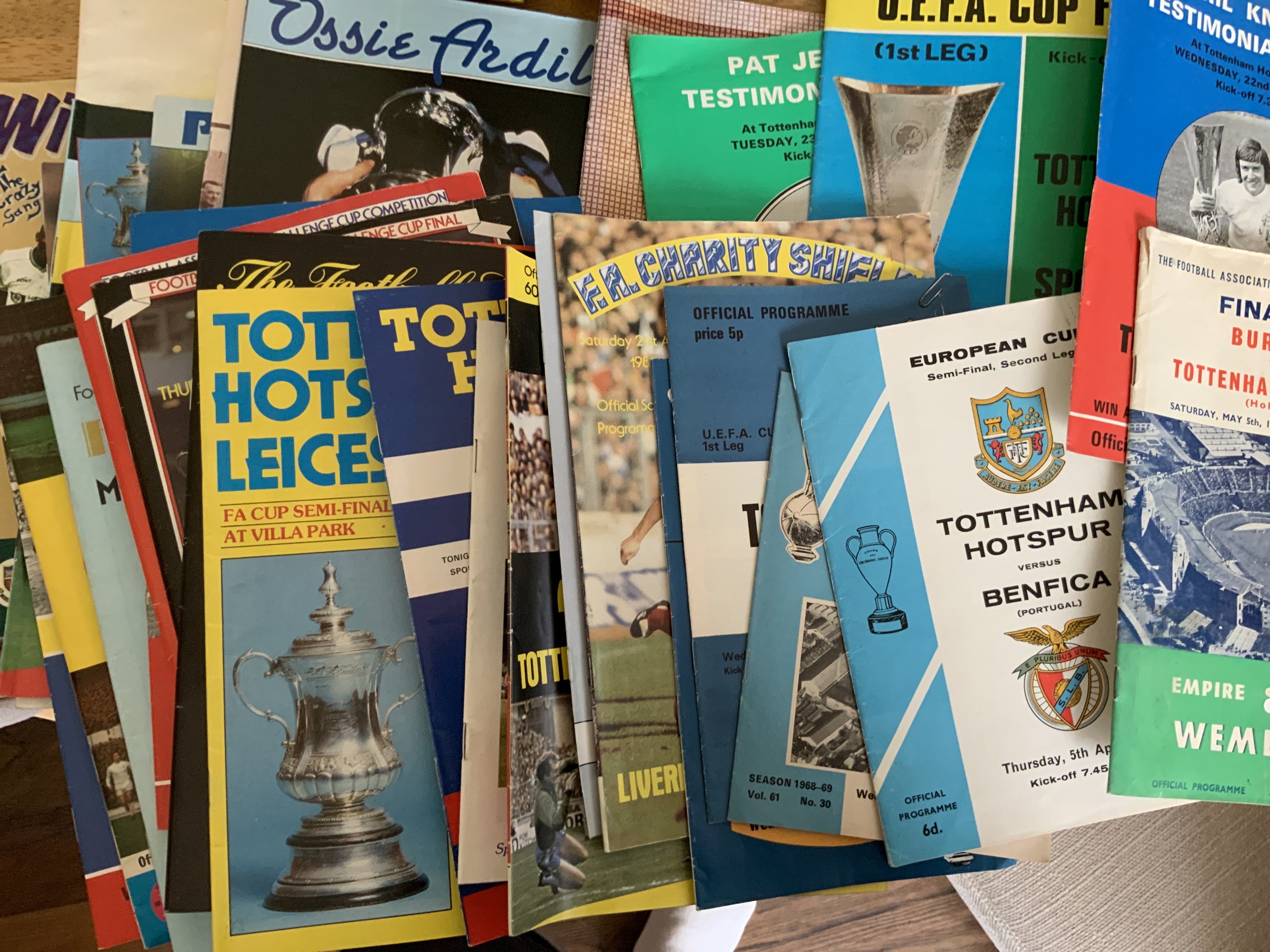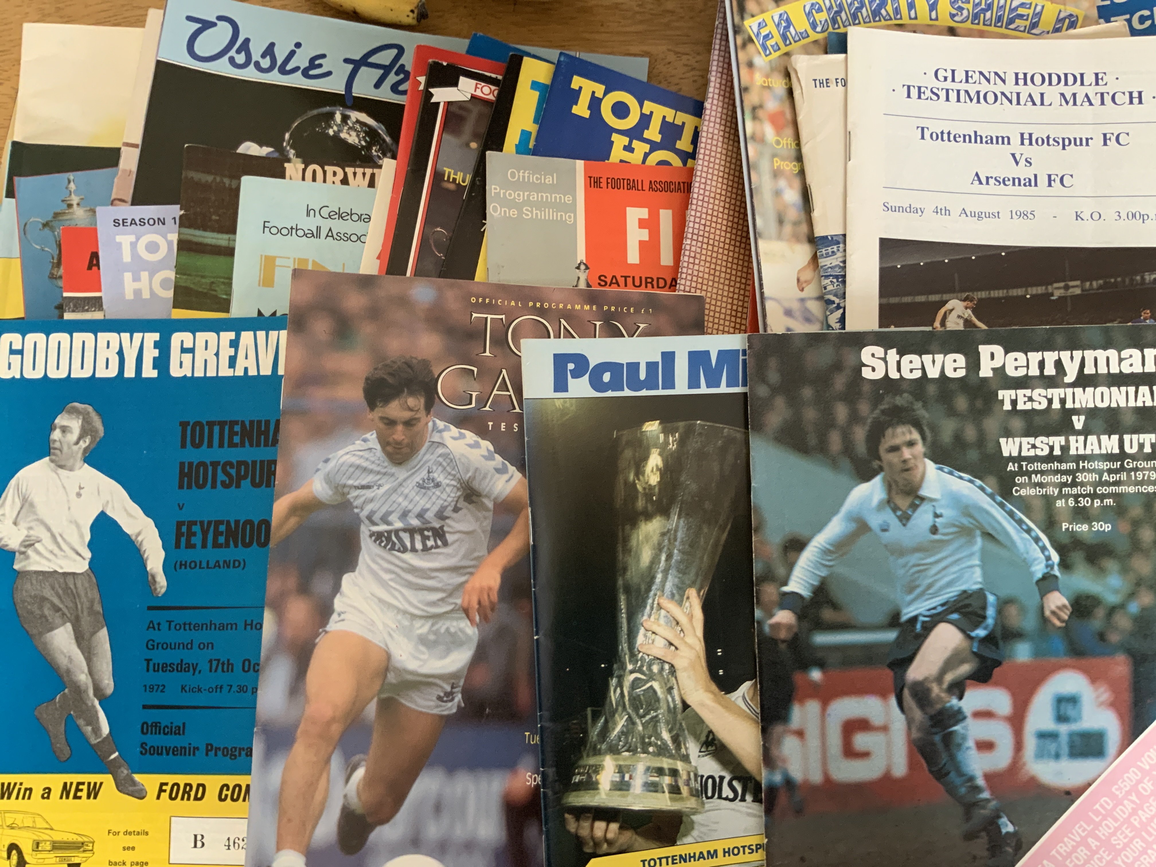 Tottenham Big Match + Testimonial Football Programmes: Includes FA Cup Finals, League Cup Finals, Charity Shields, Semi Finals, Testimonials of Nicholson Greaves Jennings Knowles and much more. (44) C/W 11 season tickets book covers.